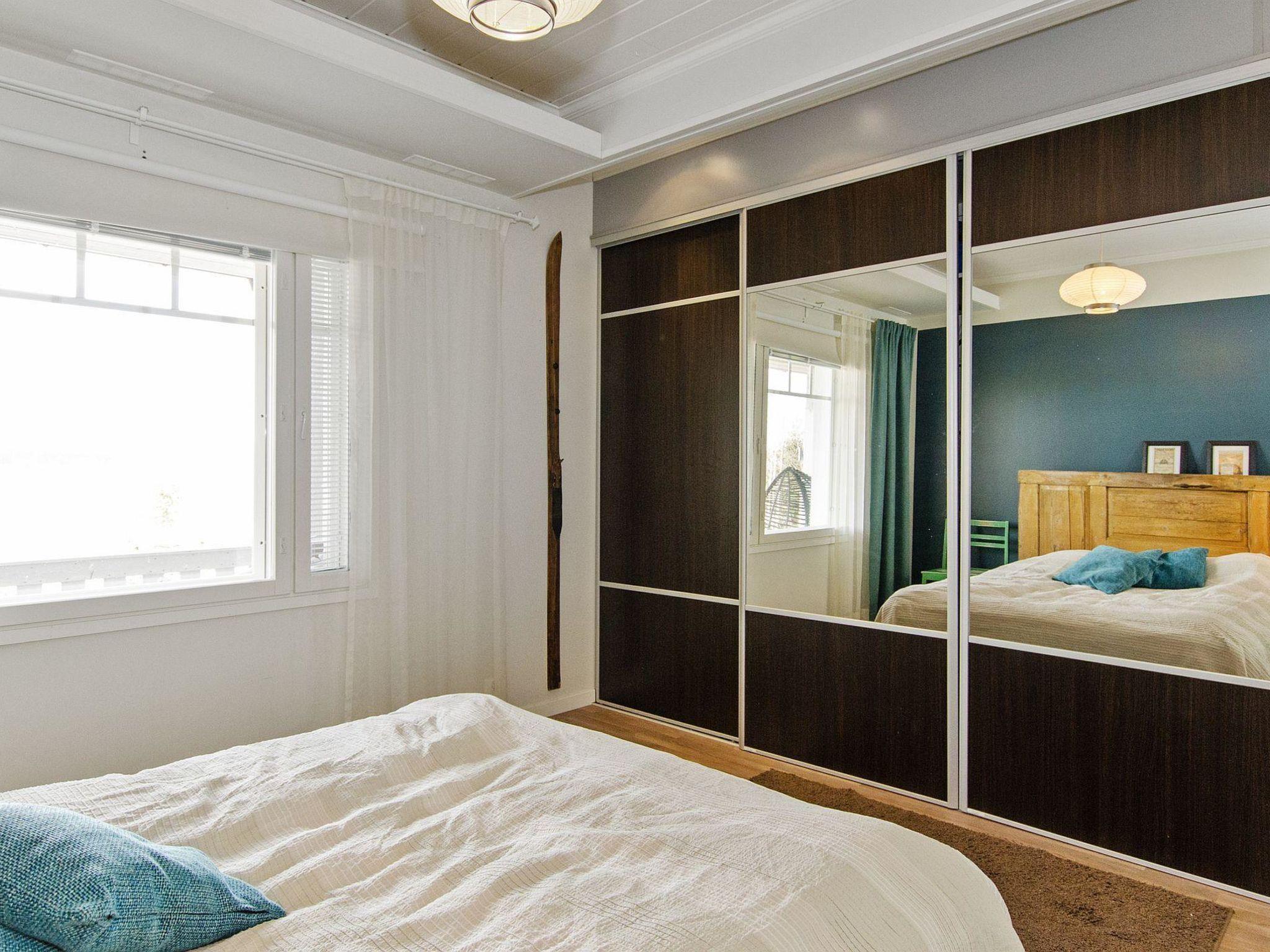 Holiday apartment built in 2011. On the ground floor, there is a living room/kitchen, which is equipped with all the necessary appliances. In addition to the fireplace on the living room side, there is a baking oven on the kitchen side. On the ground floor, there are also 2 spacious bedrooms, one with a double bed and the other with a bunk bed (lower bed width is 120 cm). On the ground floor, there is also a laundry room, electric sauna, washroom, dressing room, and 2 separate WCs.