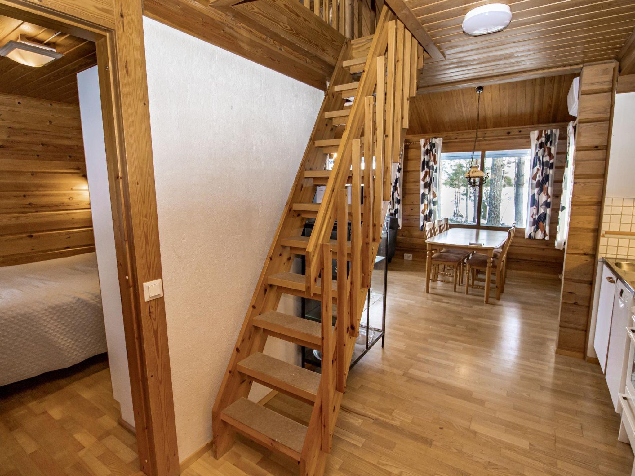 A cozy cabin (49 m²) by the sea. The cabin features a cozy living area and a well-equipped, recently renovated open kitchen. The living space is enhanced by a fireplace, creating a warm ambiance. On the ground floor, there is an additional bedroom with two beds, an attached WC/shower room, and an electric sauna. The loft upstairs accommodates four beds. There are two parking spaces in the yard.