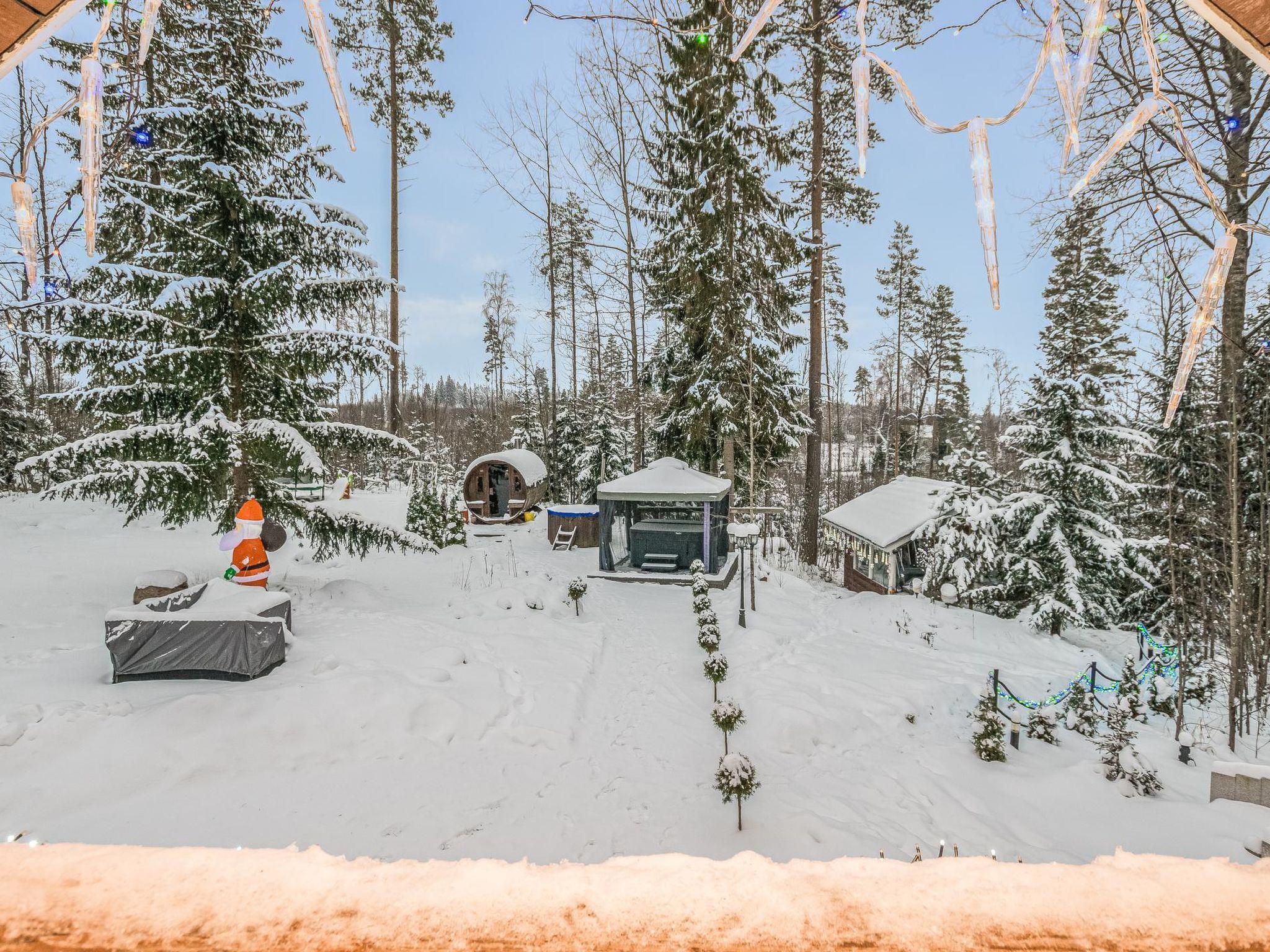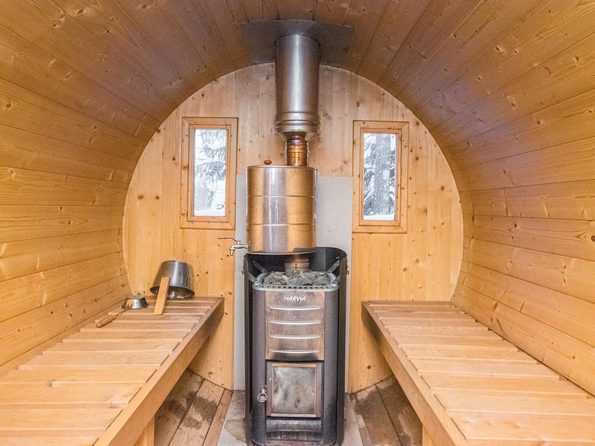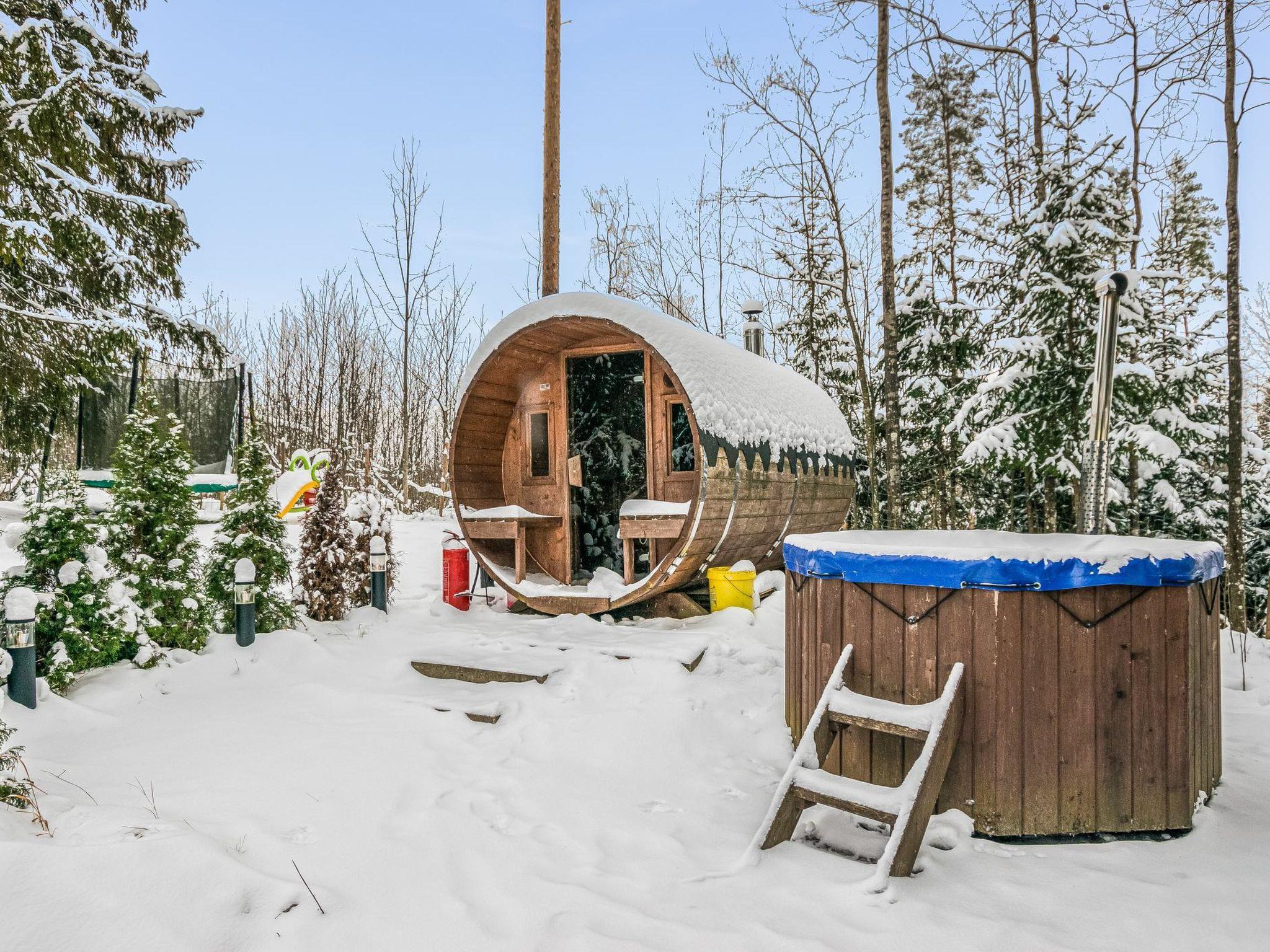 The hot tub is available year-round for an extra charge, with a freezing limit of -15 degrees Celsius.