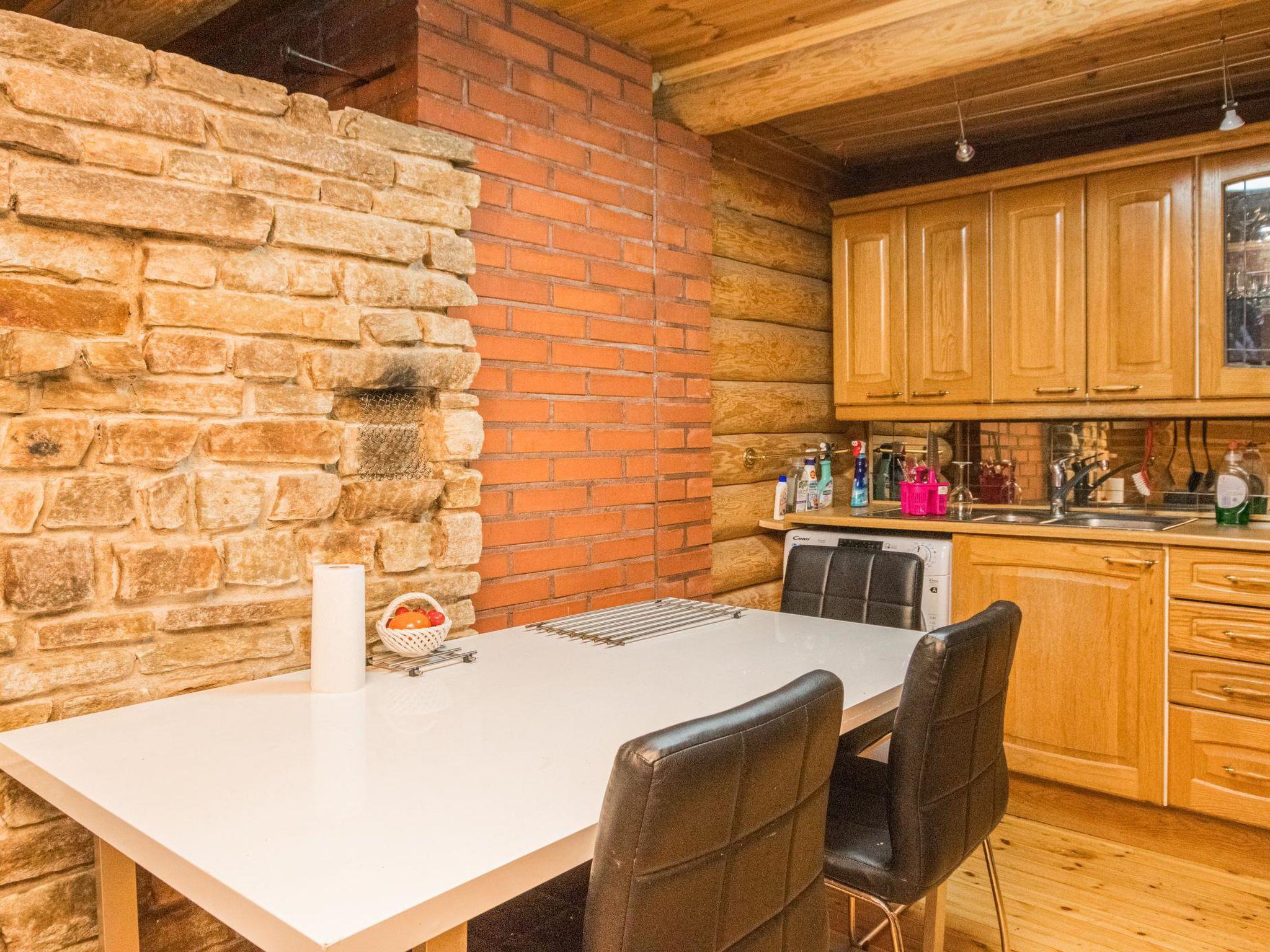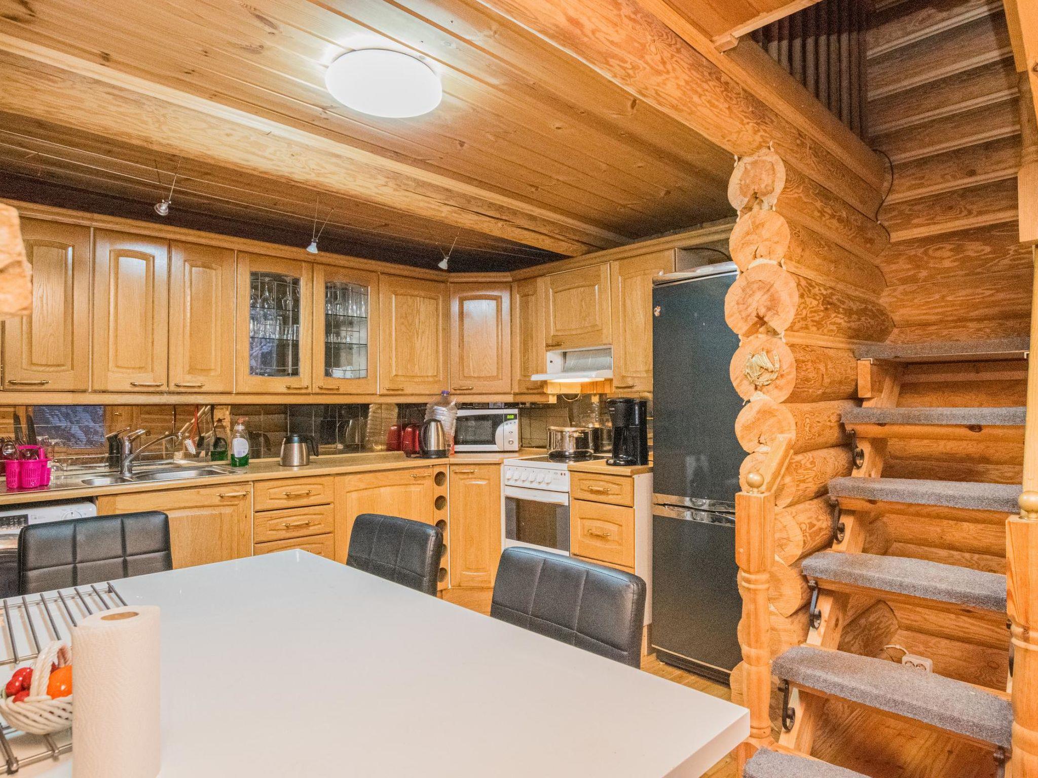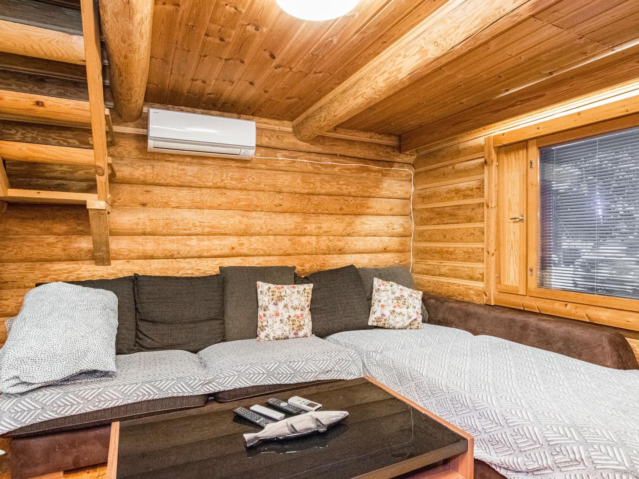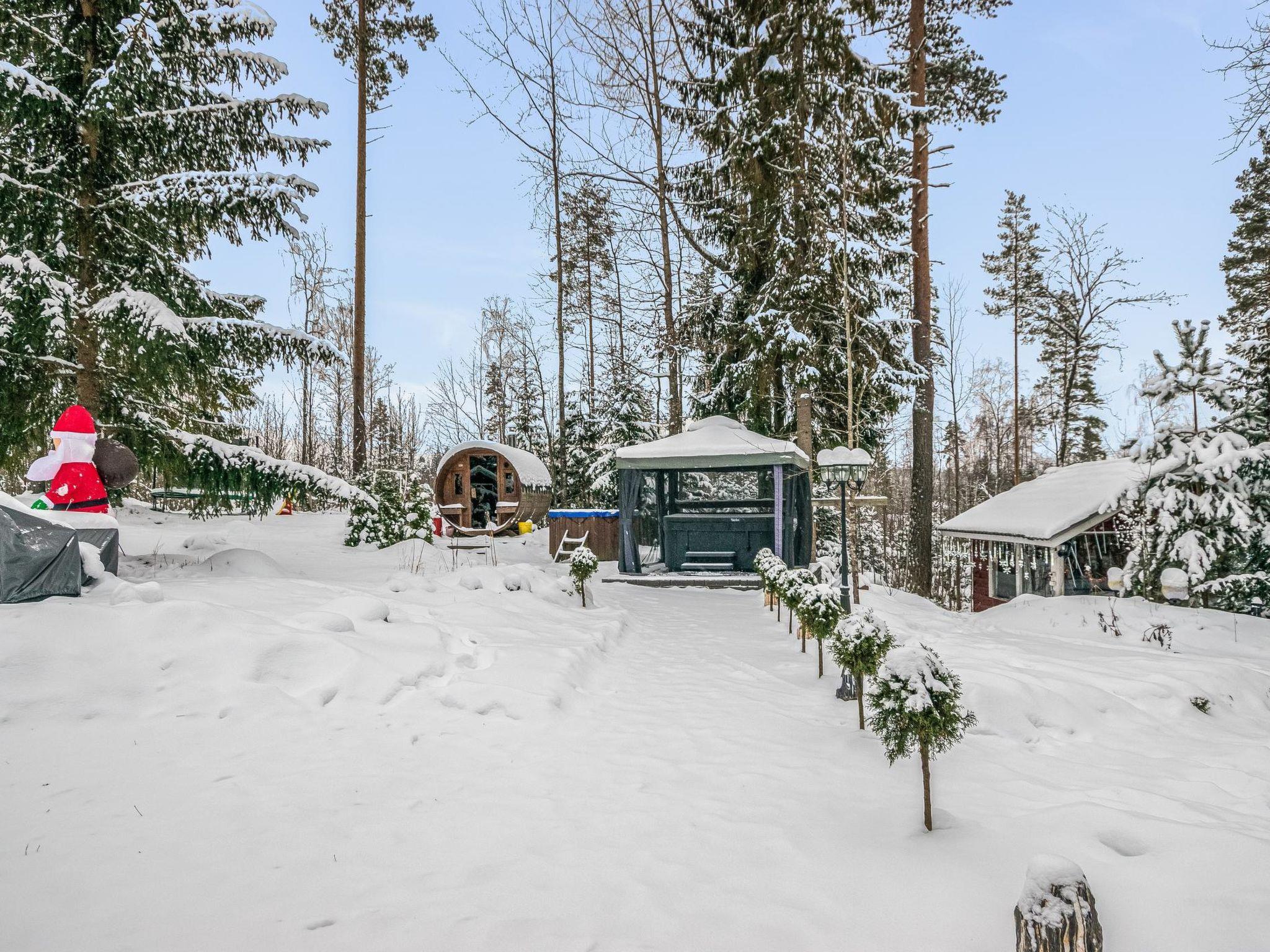 Round log cabin 1991, bathroom facilities renovated in 2014. The cabin features an open-plan kitchen-living room on the ground floor, a glazed terrace, a bathroom with a WC and a shower, hydro massage bath (freely available), as well as an electric sauna.
