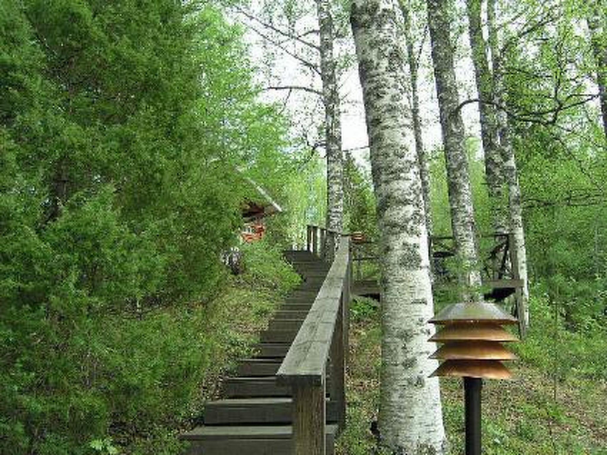 95 km nordöstlich von Tampere, See Elännejärvi 40 m, harter und leicht abfallender Sandstrand, Anlegestelle und Boot. Block-Ferienhaus auf drei Etagen, Baujahr 1995, im mittleren Stock: Wohnzimmer, Küche und Essbereich, Flur, Schlafzimmer mit Doppelbett, Hauswirtschaftsraum, überdachte Terrasse. Im Obergeschoss-Dachboden Schlafzimmer mit Doppelbett, Wohnbereich mit Bett und 2 Matratzen, Balkon. Im Erdgeschoss Eingangshalle, Wohnzimmer mit Kamin und 2 Schlafsofas, Duschbad, Sauna (Holzofen), Terrasse. Das Haus verfügt über Ölheizung und Fussbodenheizung, Luftwärmepumpe zur Kühlung, Lüftungsmaschine. Sauna am See. Das Wasser in die Sauna fliesst durch ein Rohr vom See, Holzofen, Waschraum mit Dusche (Seewasser), Wohnbereich mit Schlafsofa, Herd, Kühlschrank und Veranda. Im Winter wird die Dusche nicht benutzt, das Wasser wird im Heiztank erwärmt. Das Haus liegt an einem grasbewachsenen Hang, am Strand gibt es Laubbäume, 1 ha - Grundstück. Vom Haus gibt es Treppen zum Strand. Kinderfreundlicher Sandstrand, See (West). Gute Angelmöglichkeiten. Im Hof Schlafkabine (mit Garage verbunden), die nach gesonderter Vereinbarung/Gebühr gemietet werden kann. Die Schlafkabine verfügt über Schlafsofa, Dachboden mit 2 Matratzen, Strom, TV und elektrische Heizung. Kunststadt Mänttä-Vilppula und Gösta und Gustav-Museum 18 km, Reistall 12 km, Juupavaara Skigebiet 35 km, Himos 70 km, Helvetinjärvi Nationalpark 30 km, Hotel Keurusselkä 35 km, Dampfmaschinenpark in Haapamäki 36 km.
