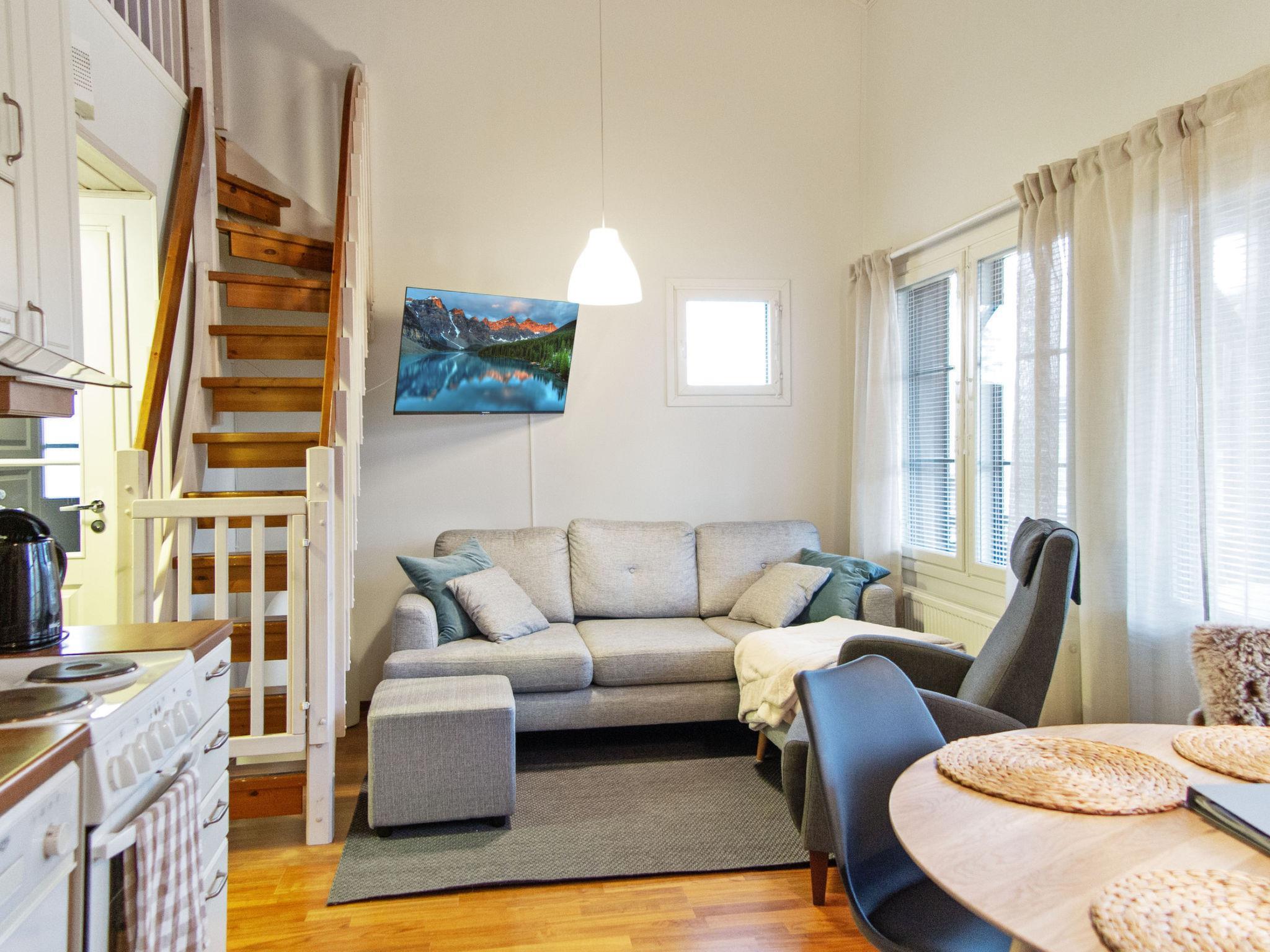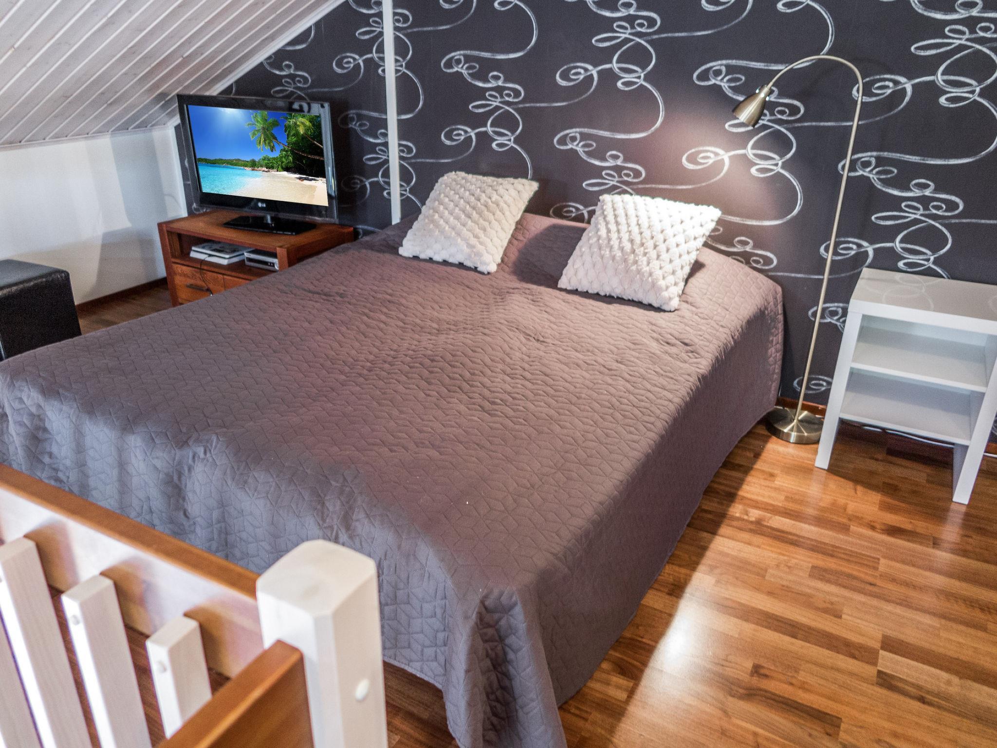 Downstairs there is a living room with kitchen, bedroom (bellows door) with a double bed, bathroom and electric sauna. The spacious loft has a double bed with a frame mattress and a single frame mattress bed, as well as high-quality mattresses as an extra bed for one guest. Upstairs there is a second TV with a Play Station 4 for gaming. Steep and narrow stairs to the loft, with a baby gate at the bottom and top of the stairs.