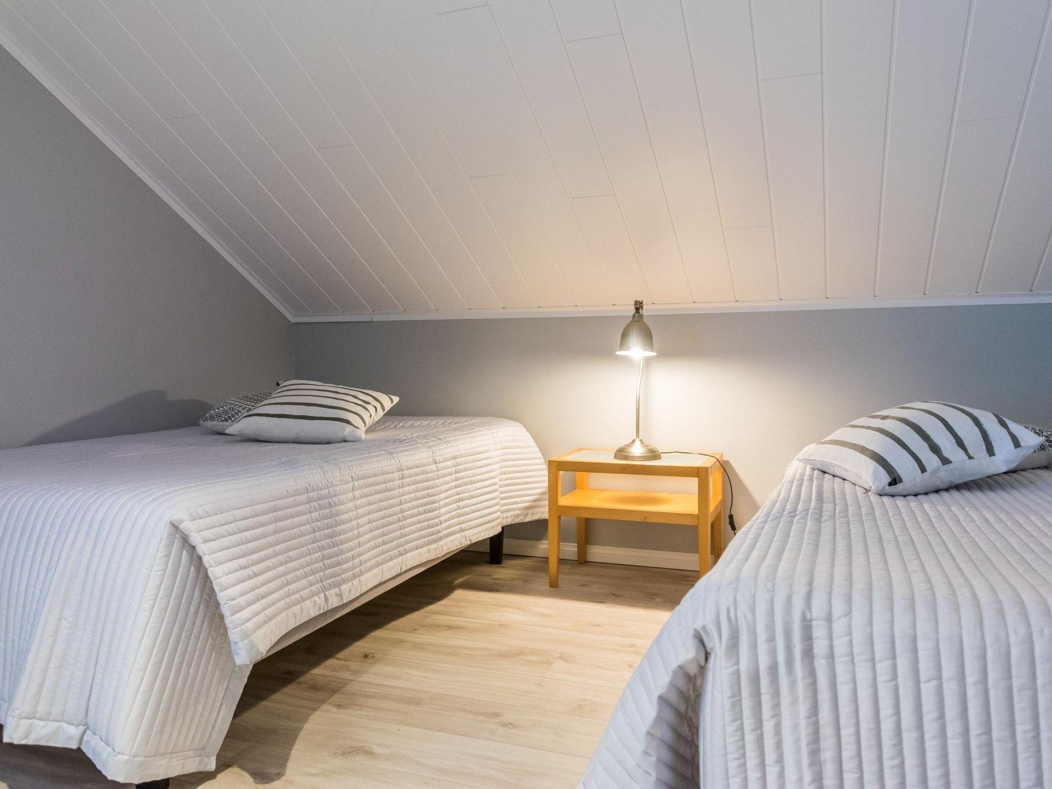 Upstairs 1 bedroom with one bed 120cm and another 90cm, toilet, shower, at the open loft 1 single sofa bed 90cm. Terrace with great view.