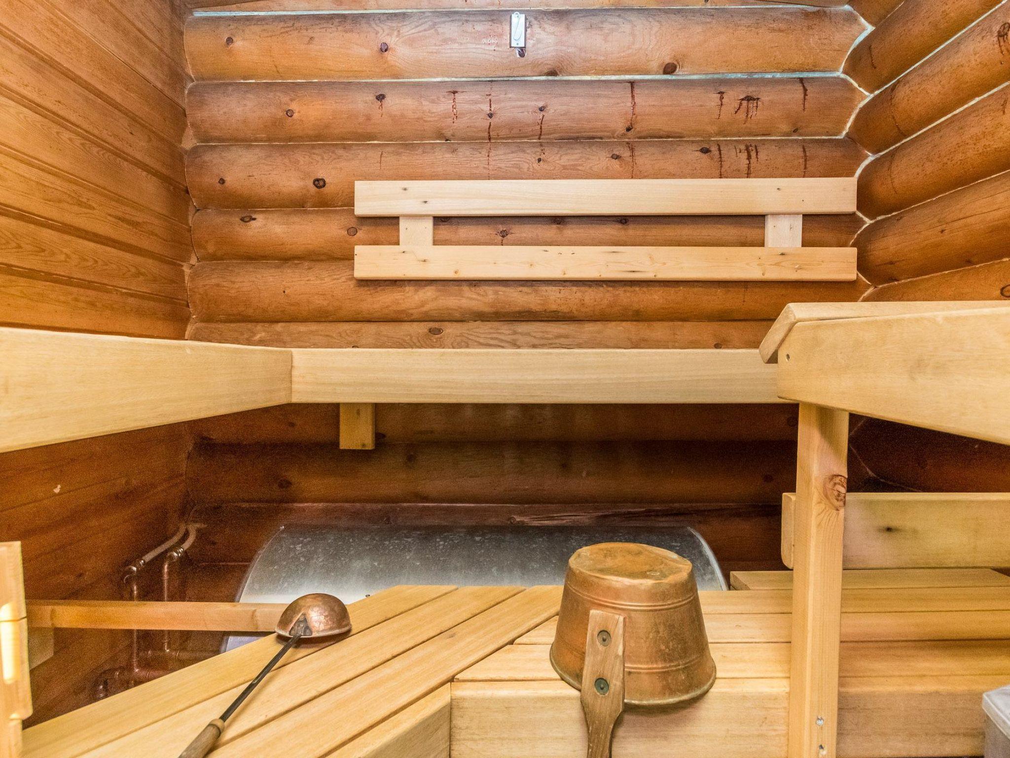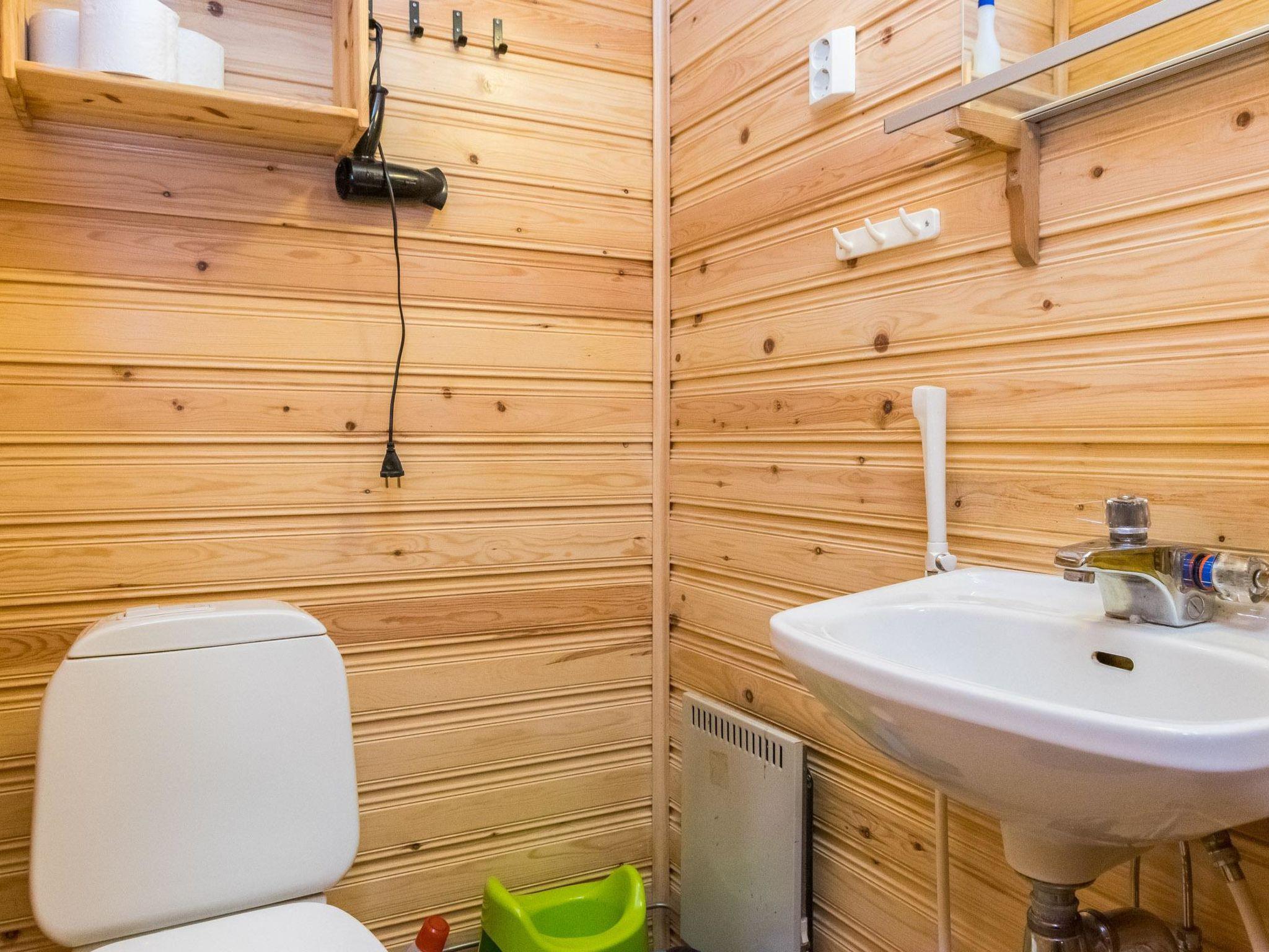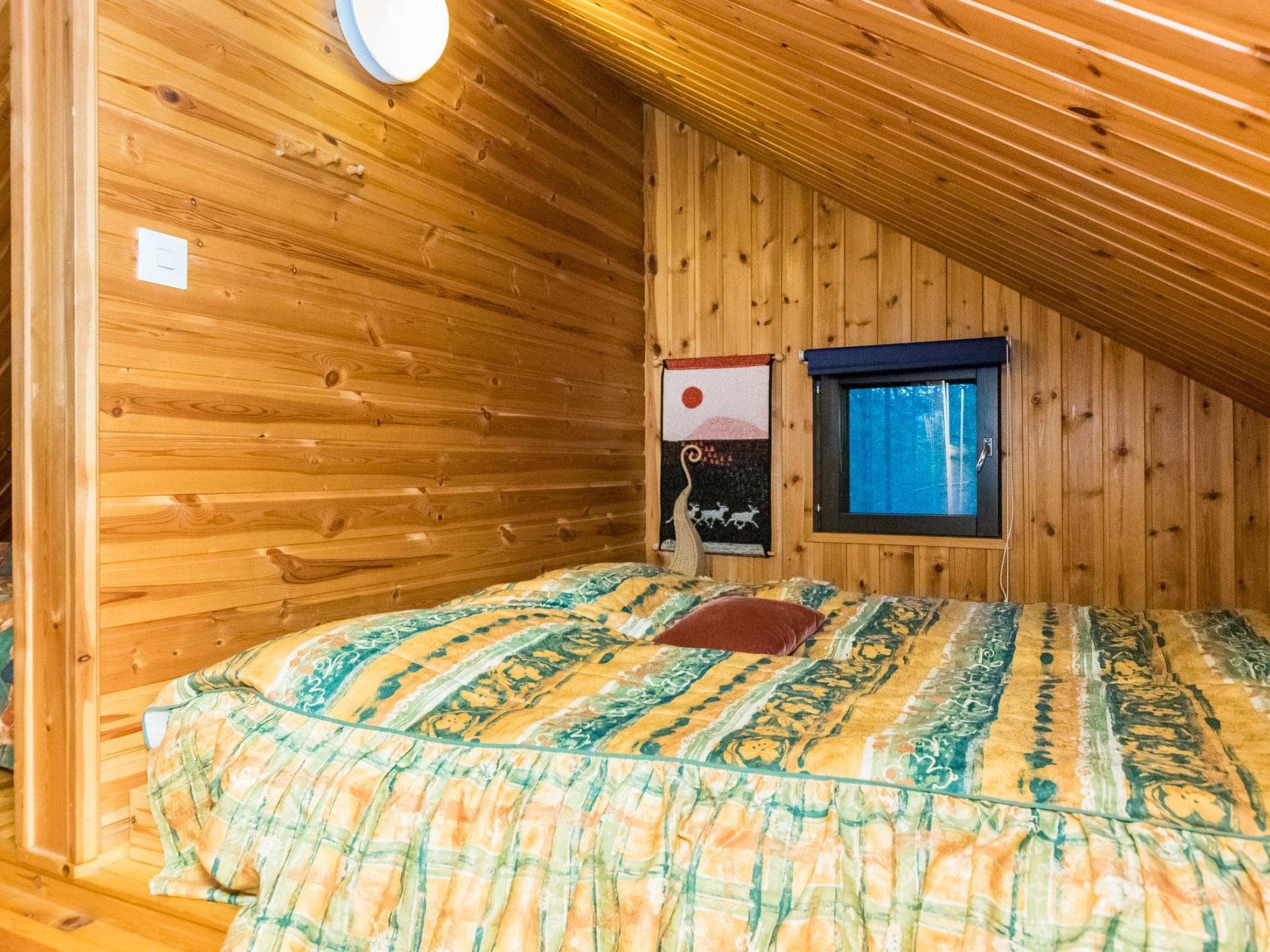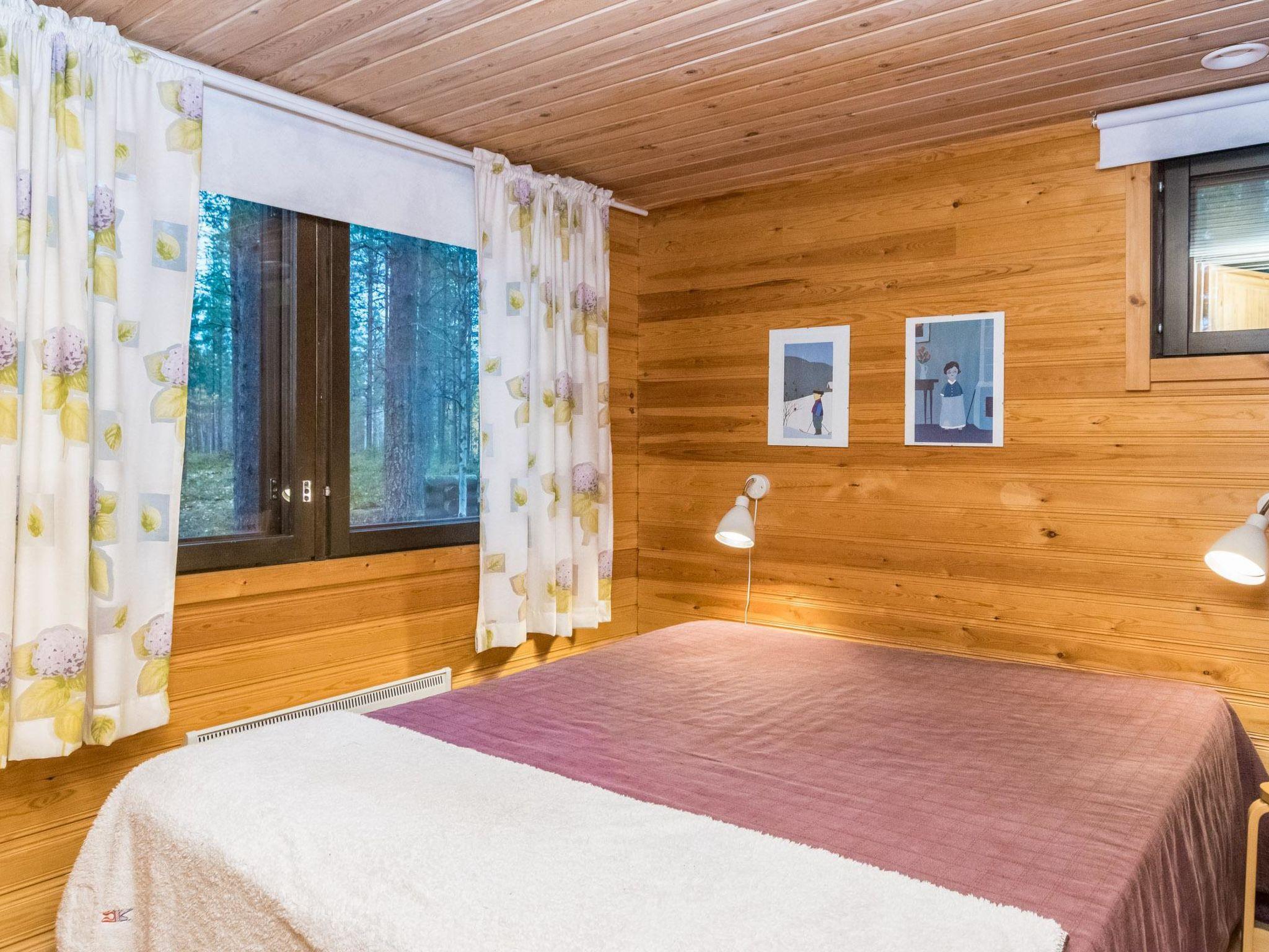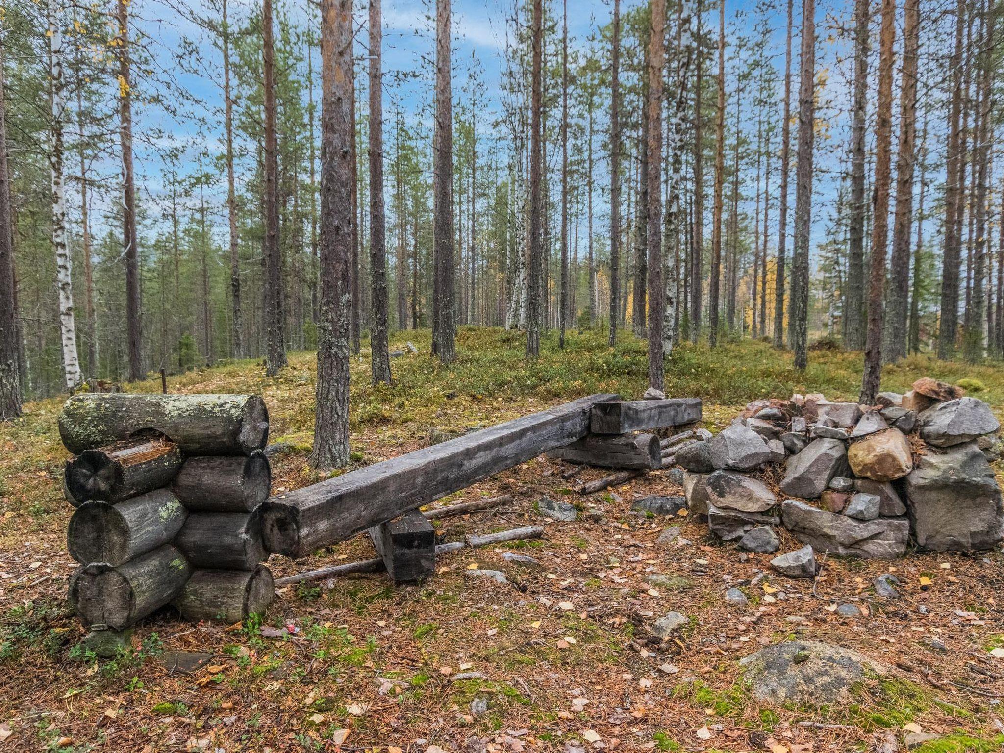 45 km north of Kemijärvi. Log cabin built in 1988. Kitchen alcove, living room, bedroom with double bed, low loft with two double beds, washroom, sauna (elec. stove), open porch.
