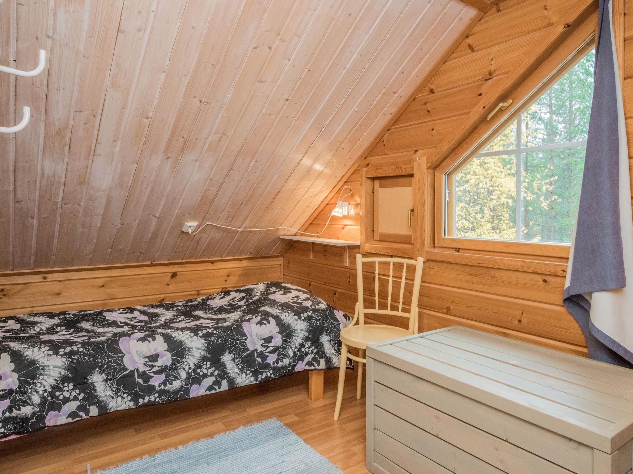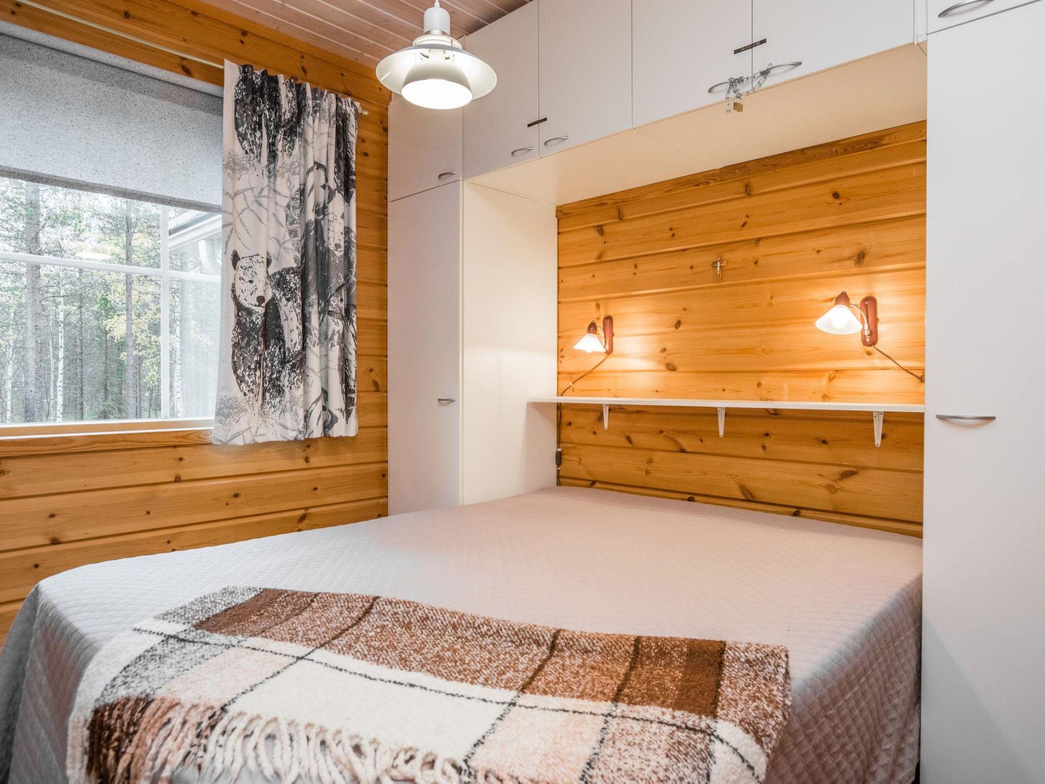 45 km north from Kemijärvi. Log cabin built in 2003. Downstairs living room/kitchen, bedroom with double bed, toilet, washroom and sauna (electric stove). Upstairs bedroom with two separate beds, in loft double bed and couch with two extra beds, balcony. Separate wood storage room and outdoor storage with ski waxing room.