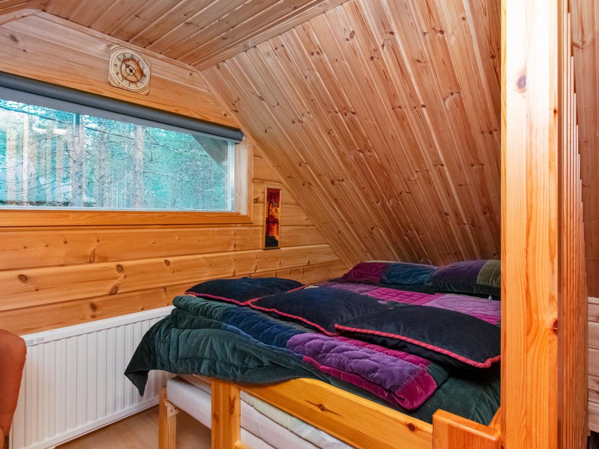 52 km north from Kemijärvi, log cabin built in 1983 and renovated 2001. Downstairs: kitchen, living room, alcove with one bed (80*200cm), sauna (electric stove), washroom/ toilet and utility room/ wardrobe. Upstairs: double bed (160*200cm), bed (110*200cm), bed (90*200cm).