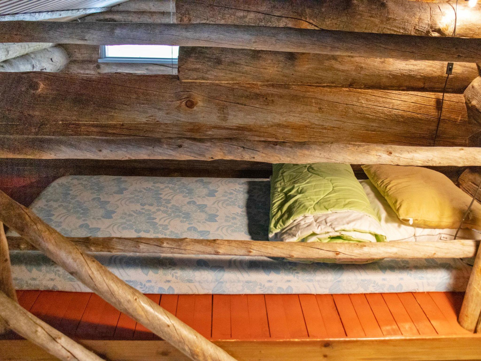 Silver log cabin built in 1989. There is a kitchenette, living room/kitchen, bedroom with 2 beds, low loft, above large oven there is 3 mattresses. Washroom, sauna and open porch. Roofed grill shared with neighbor cabins (no. 16004, 16019, 16020). Steep stairs for the loft.
