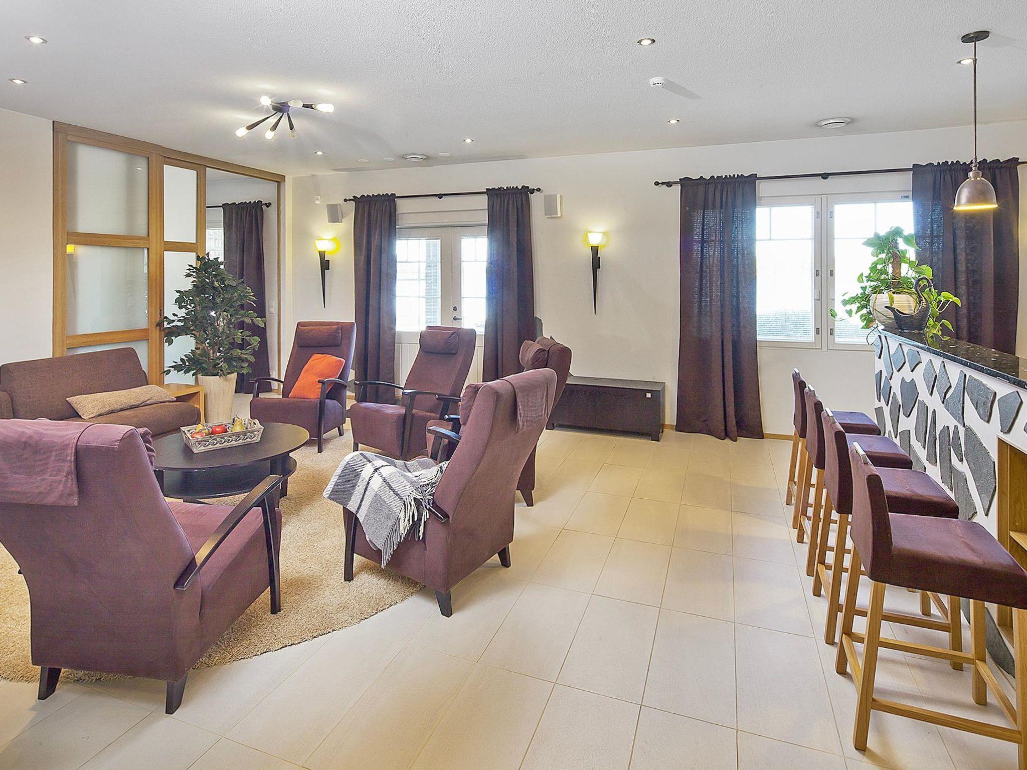 The 420 m² villa includes six hotel-standard bedrooms on three floors. Each bedroom has its own WC and shower, television, and private patio or balcony. There is a spacious living room with a fireplace and a well-equipped kitchen with dining space for 20 people. Fast 100 Mbps fiber-optic Internet and private power generator ensure smooth Internet connections and electrical capacity, even in stormy weather. Electric car charging is included in the price, 2 charging stations are available. Child equipment includes 2 high chairs and 2 travel cots.