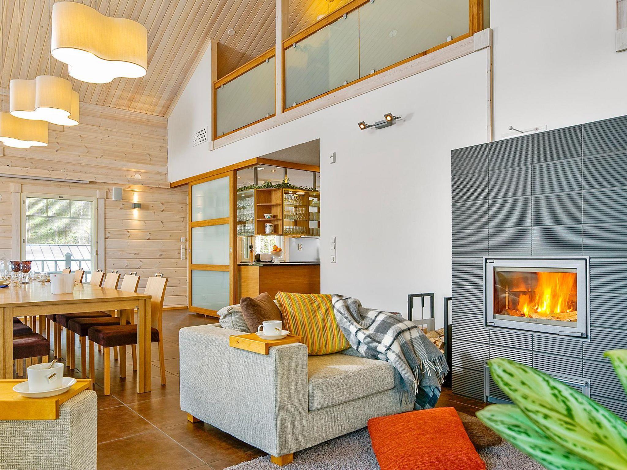 On the extensive garden area, you can spend time together playing games, barbecuying, taking sauna sessions, admiring the view from the hot tub, and swimming on your private beach. The private spa and 4 different saunas offers a great way to relax. There are 2 rowing boats, and an electric outboard motor is included in the price. Additionally, petrol outboard motor can be rented from the owner.