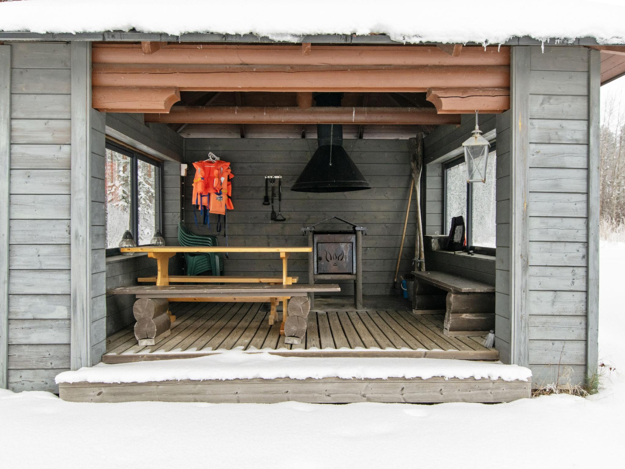 There are two bedrooms, each with a comfortable double bed, and the sofa bed in the living room provides additional space for two. The kitchen is fully equipped, and the wood-heated sauna invites you to relax at the end of the day. On the covered terrace, you can enjoy peaceful moments while admiring the lake view. An air source heat pump keeps the cabin's temperature pleasant year-round.