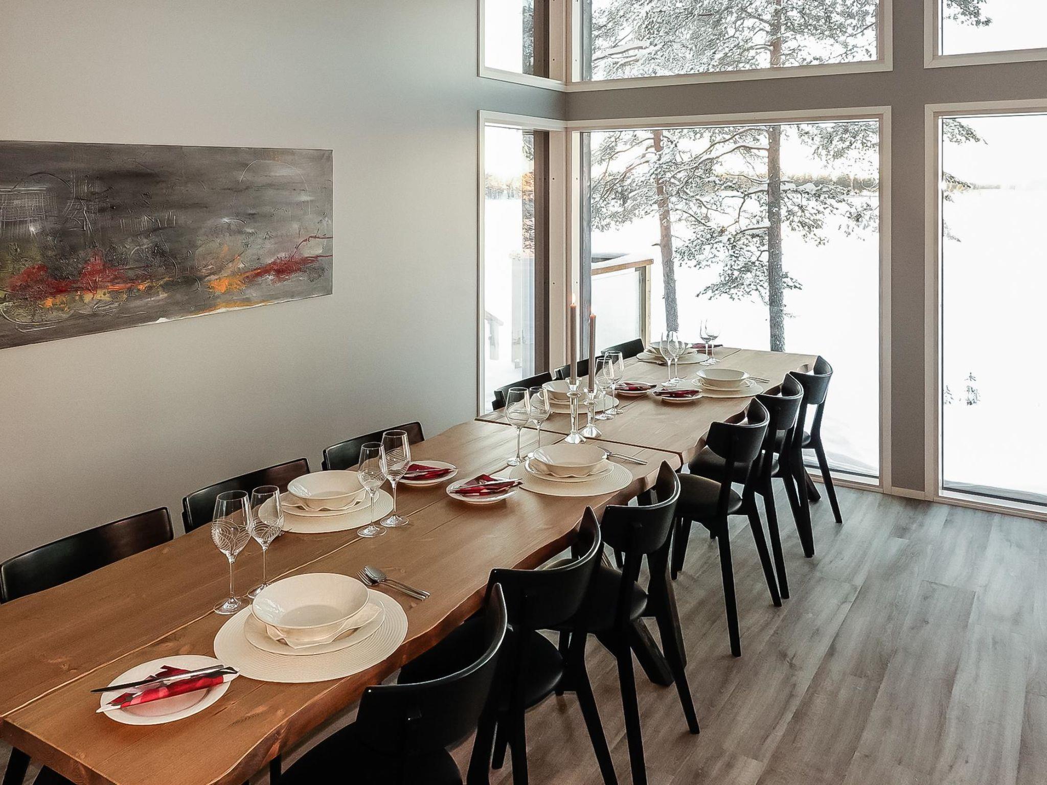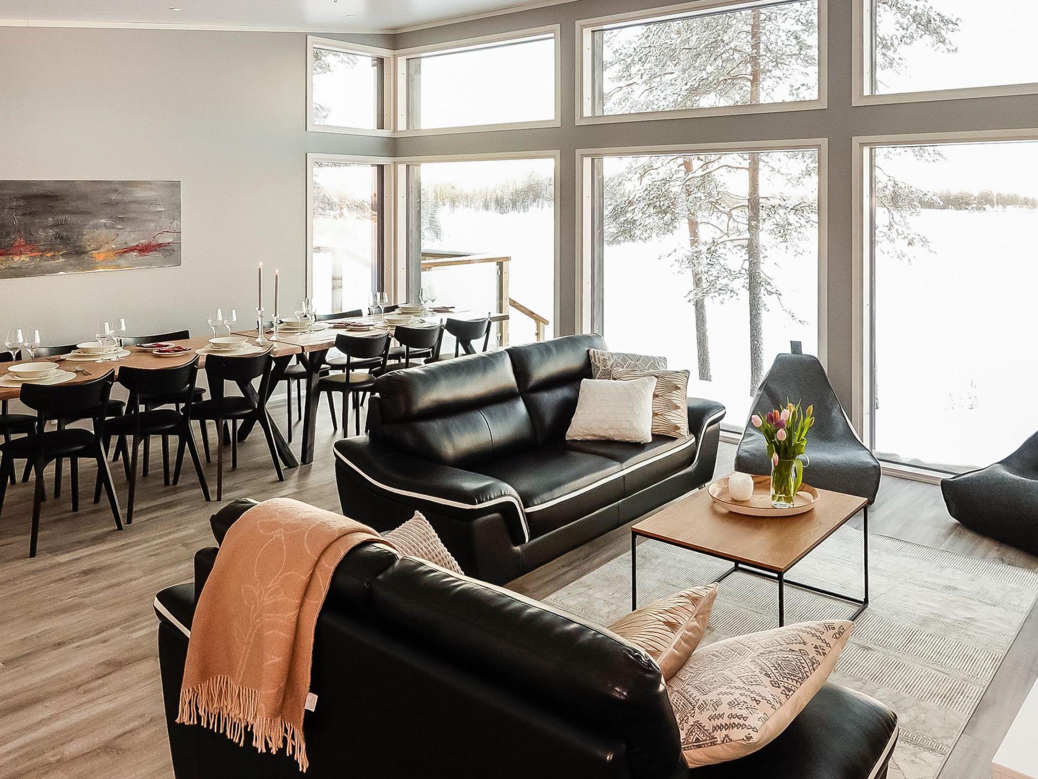 Maximal 1 Haustier/Hund erlaubt. 70 km nordwestlich von Kuusamo, 14 km nördlich vom Gemeindezentrum Posio, See Yli-Suolijärvi 25 m (Länge 17 km), ziemlich flacher Strand mit Sandboden, eigenes Ruderboot. Holzvilla, Baujahr 2021. Wohnküche, 4 Schlafzimmer - 1 mit Doppelbett und 3 mit je zwei Einzelbetten, Sauna, Waschraum/WC, Wohnbereich mit Schlafsofa. Es gibt auch Duschbad und separates WC in der Nähe der Schlafzimmer. Sommerküche zwischen dem Saunabereich und anderen Einrichtungen (keine Heizung). Grosse offene Terrasse mit Whirlpool im Freien. Auto-Unterstand für zwei Autos, Lagerraum. Die Villa Kallas ist eine geräumige und moderne Villa, auf der Klippe am See und bietet atemberaubenden Seeblick über den See Yli-Suolijärvi. Im Haus befindet sich Fussbodenheizung mit Luft-Wasser-Wärmepumpe. WLAN (4G) und zwei Fernseher, einer im Wohnbereich. Der Whirlpool im Freien ist sofort einsatzbereit (elektrische Heizung). Sie können diesen Whirlpool nutzen, in dem Sie diese Leistung im Bereich der Zusatzleistungen buchen. Die Gebühr für den Whirlpool ist einmalige Gebühr, die Ihre gesamte Urlaubszeit abdeckt. 4 Paar Schneeschuhe, Bob, Schlitten und Schnee-Schieber stehen den Gästen zur Verfügung. Der Felsen am See ist ideal zum Rodeln. Nationalpark Riisitunturi befindet sich in einer Entfernung von 13 km (über Forststrassen) am nächsten. Der eigentliche Ausgangspunkt für den Park ist ca. 45 km entfernt. Das Korouma-Schluchttal liegt 50 km entfernt. Skigebiet Kirintövaara 20 km, Suomu 60 m und Ruka 70 km. Hundeschlittenfahrten sind im Umkreis von 12 km möglich. Kulturzentrum Pentik und Fabrikladen 13 km, Dienstleistungen des Gemeindezentrums Posio 14 km. Angeln: Der Yli-Suolijärvi-See ist fischig. Das Angeln ist gegen eine Fischereimanagement-Gebühr gestattet. Es darf eine Angelrute verwendet werden. Das Fischen in fliessenden Gewässern ist jedoch nicht gestattet (www.eraluvat.fi). Jagd: Das nächste Wildjagdgebiet 2620 Posio befindet sich in einer Entfernung von etwa fünf Kilometern (www.eraluvat.fi). Die Betten sind bereits mit Bettwäsche bezogen.