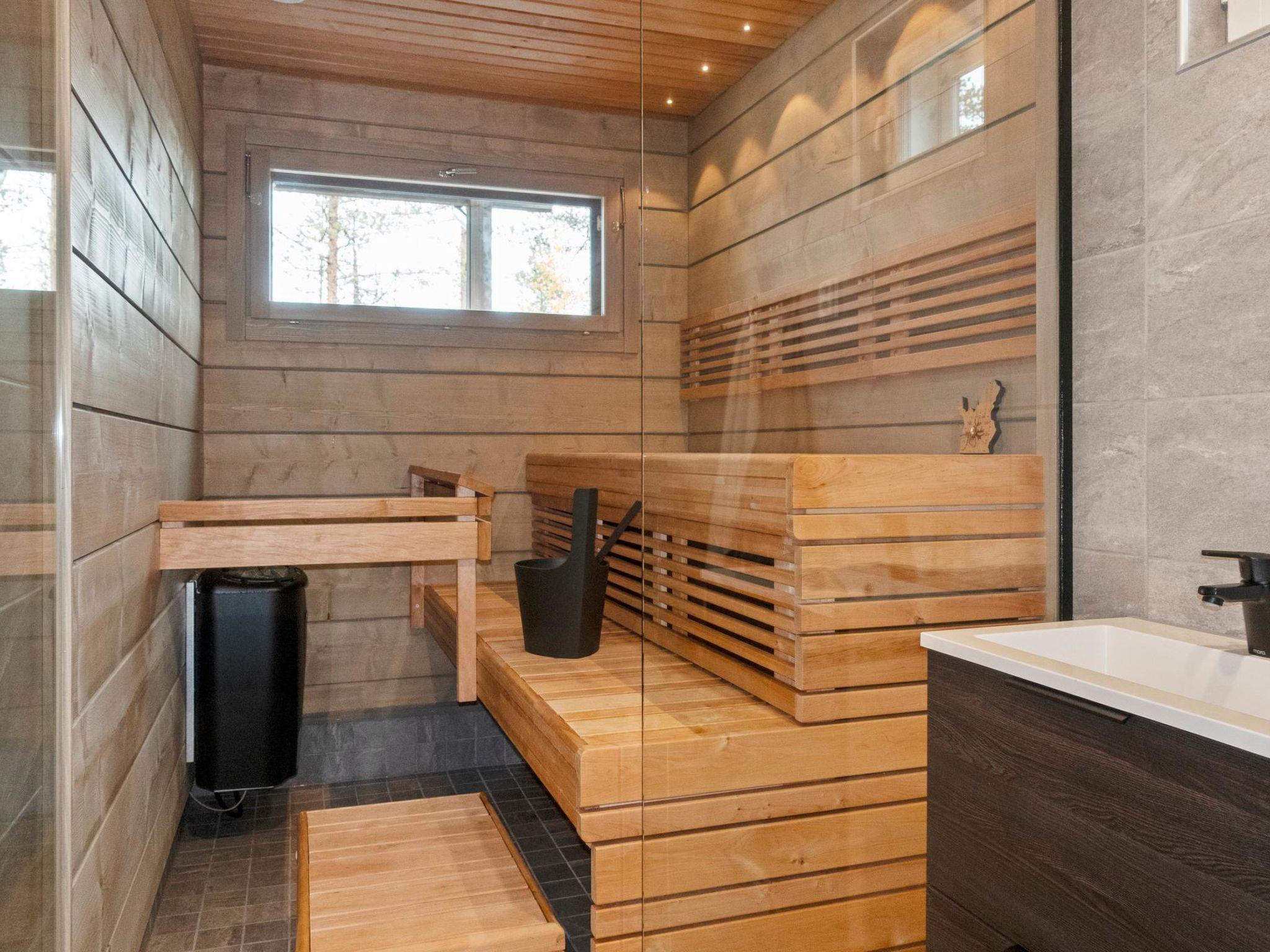 Log villa, completed in 2022. Living room/kitchen, bedroom with double bed, another bedroom with 2 single beds, sauna, washroom/WC, utility room and also a separate WC. Two cube mattresses as extra beds. Large covered terrace with an always warm hydro massage bath. The hydro massage bath can be rented for an extra fee, payment per reservation.