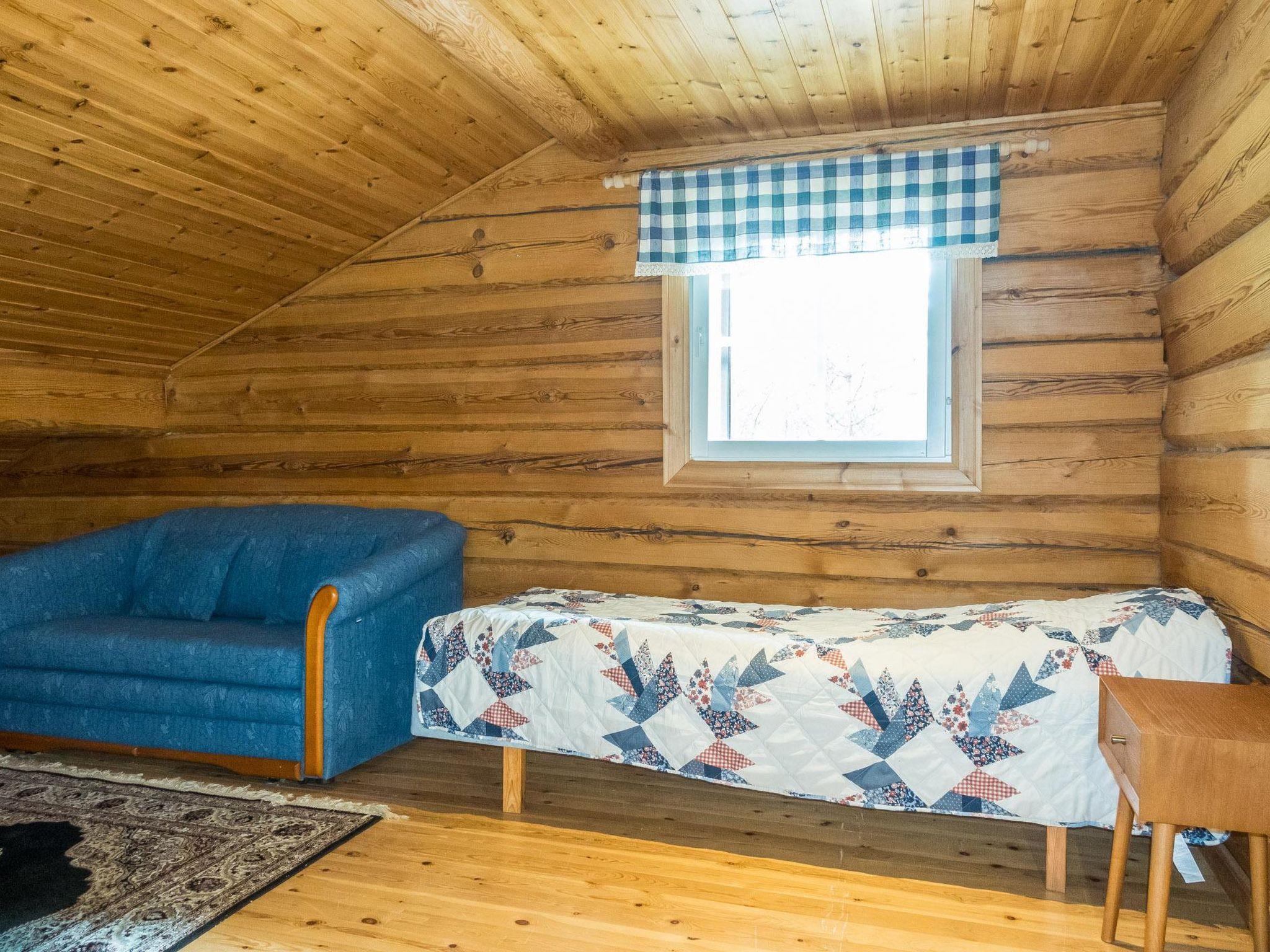 Living room, kitchenette, double bed (width 140 cm) in the bedroom, 2 beds and a convertible sofa for 2 in the loft, sauna, washroom/WC and storage room.