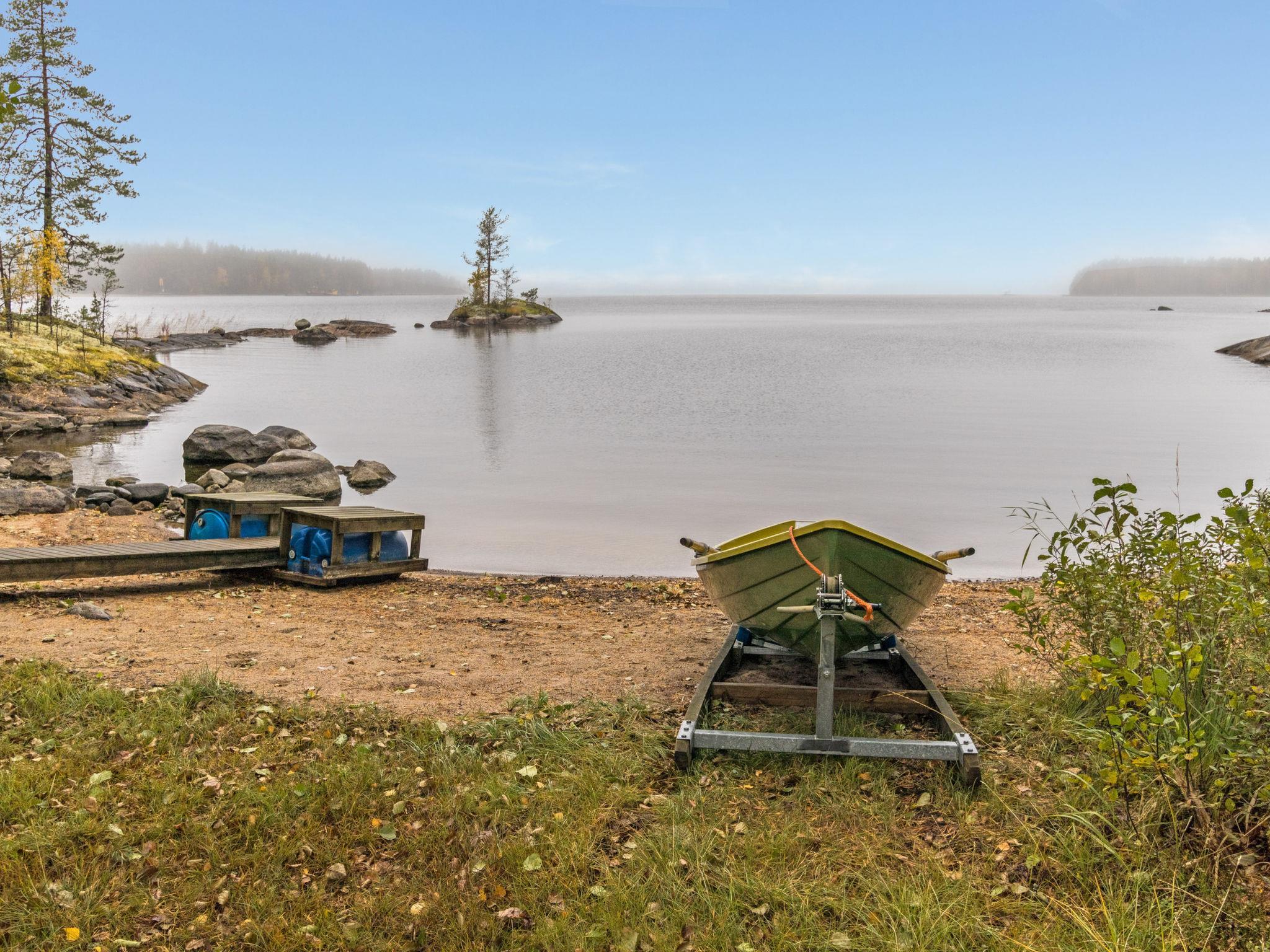 Next to the cabin, there is a fixed masonry barbecue area, and by the shore, a wood-heated sauna with a separate dressing room. Water for washing can be heated in the water tank attached to the sauna stove. The beach is gently sloping with a sandy bottom. The cabin comes with its own rowing boat.