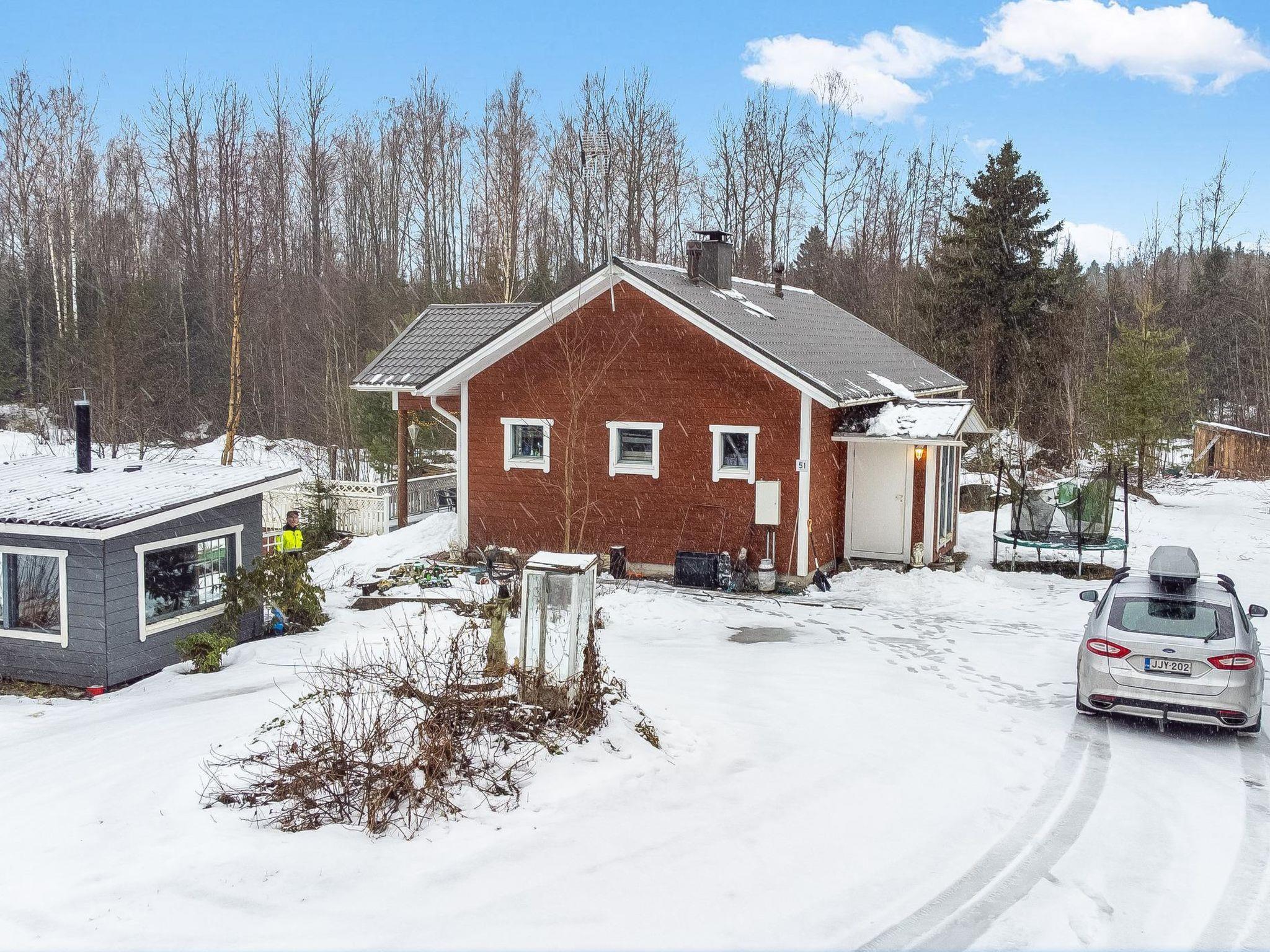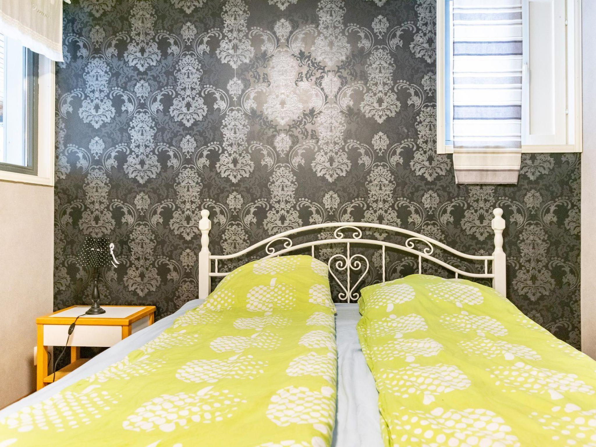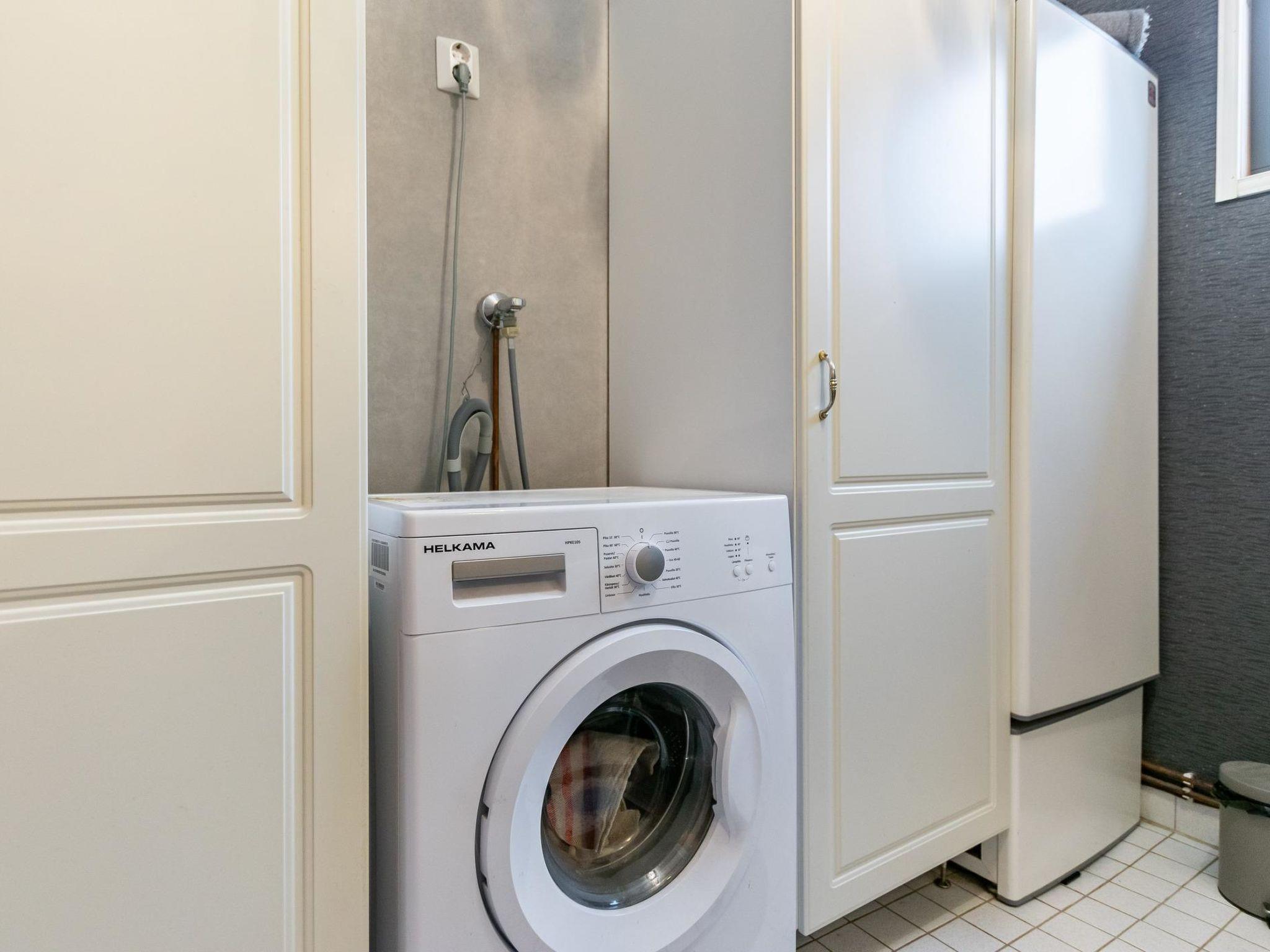Washroom with a shower and access to the terrace. The sauna features a wood-heated sauna stove. Separate WC/utility room with a washing machine. The glazed porch has a sofa and chairs, as well as an additional 120x200 cm bed. This bed serves as an optional sleeping place and is not counted in the official accommodation capacity.