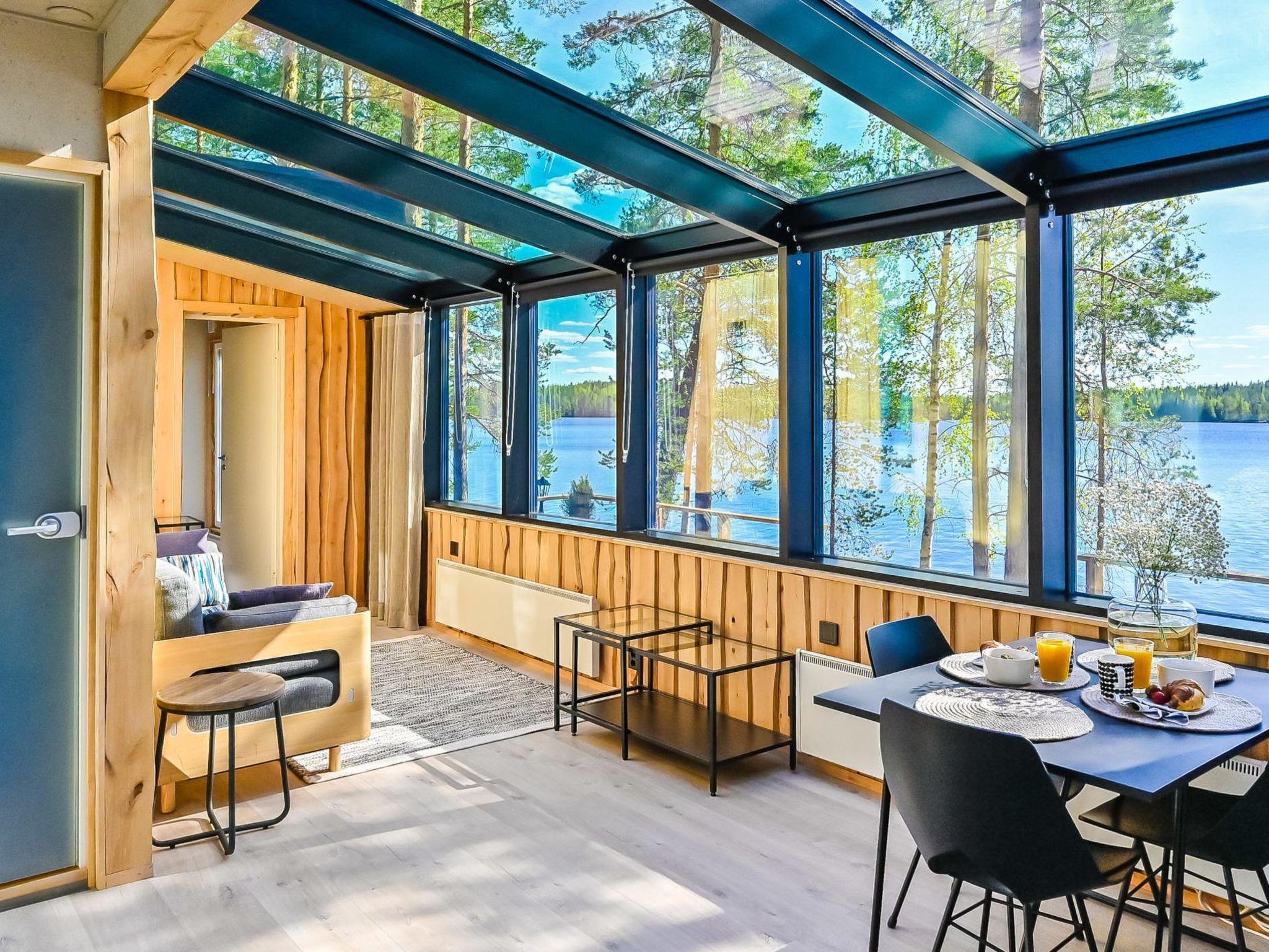 110 km nördlich von Jyväskylä, See Muuruejärvi 15 m (Länge 10 km, Breite 3 km), sanfte Vertiefung, harter boden, eigenes Boot und Anlegestelle. Holzhütte mit teilweise überdachtem Glasdach, 2018, Terrasse 14 m², einheitlicher Schlafbereich (2 motorisierte Betten), Wohnzimmer (hochwertige Schlafcouch mit zwei getrennten Betten), Wohnzimmer/Küche. Sauna, Waschraum/WC. Luftwärmepumpe in der Kabine. Im Hof befindet sich Sauna am See. Kontaktieren Sie den Eigentümer für weitere Informationen. Derzeit können die Gäste die Sauna am See, ohne Gebühr, nutzen. Anfangs 2019 wurden zwei neue Panoramakabinen gebaut. Die Baugeräte können auf dem Hof in der Nähe der neuen Kabinen gelagert werden. Stilvolle Panoramakabine am See. Die Glasdecke der Kabine und die grossen Fenster ermöglichen es Ihnen, die Natur von innen zu beobachten. Das Grundstück fällt sanft bis zum Strand runter. Hohe Anlegestelle am flachen Strand. Spielplatz im Hof für die Spiele im Freien. Im Hof gibt es Kochhütte. Gute Angelmöglichkeiten. Sie können elektrischen Aussenborder beim Eigentümer mieten. Darüber hinaus gibt es in der Nähe vier Orte für Personen, die an Stromschnellen angeln möchten: Huopanankoski, Keihärinkoski, Kärnänkoski und Kymönkoski. Natur-, Sport- und Jugendtourismuszentrum von Piispala 27 km, Viitasaari 22 km.