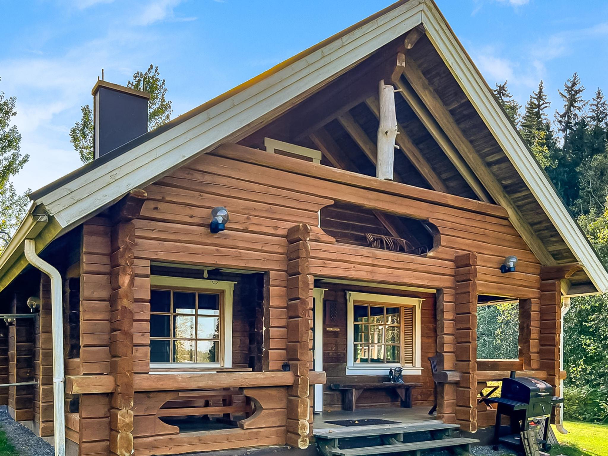 A log cabin, built in 1999, features a living room/kitchen (kitchen renovated in 2008). The bedroom has two beds joined together; the owner can separate them upon request. The loft has three box spring beds.