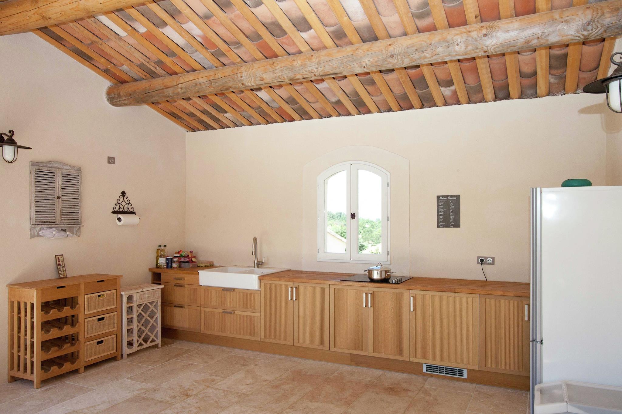 Ruhe und Privatsphäre in der Natur Diese wunderschön eingerichtete Villa liegt auf einem 8.800 m² großen Privatgrundstück, geschützt vor dem Mistral. Eingebettet zwischen den charmanten provenzalischen Dörfern Apt und Lourmarin bietet sie den perfekten Rahmen für einen erholsamen Urlaub mit Freunden oder der Familie. Genießen Sie malerische Spaziergänge, Ruhe und Privatsphäre in dieser ruhigen Lage. Luxuriöses Wohnen im Freien Entspannen Sie am großen Infinity-Salzwasserpool (geöffnet von März bis Oktober) mit LED-Beleuchtung und optionaler Heizung (Juni bis September). Der üppige Garten verfügt über einen Rosenbusch, einen Pétanque-Platz und Lautsprecher für Musik im Freien. Eine voll ausgestattete Außenküche und eine überdachte Terrasse laden zum Essen im Freien ein, während die Kinder in der Nähe spielen. Komfort und Bequemlichkeit Jedes Schlafzimmer verfügt über ein eigenes Bad mit ebenerdiger Dusche, und die gesamte Villa ist klimatisiert. Es gibt eine Garage für ein Auto und Parkplätze für bis zu acht weitere Autos sowie einen Abstellraum für Fahrräder. Diese Villa vereint Stil, Platz und Komfort für einen unvergesslichen provenzalischen Kurzurlaub.
