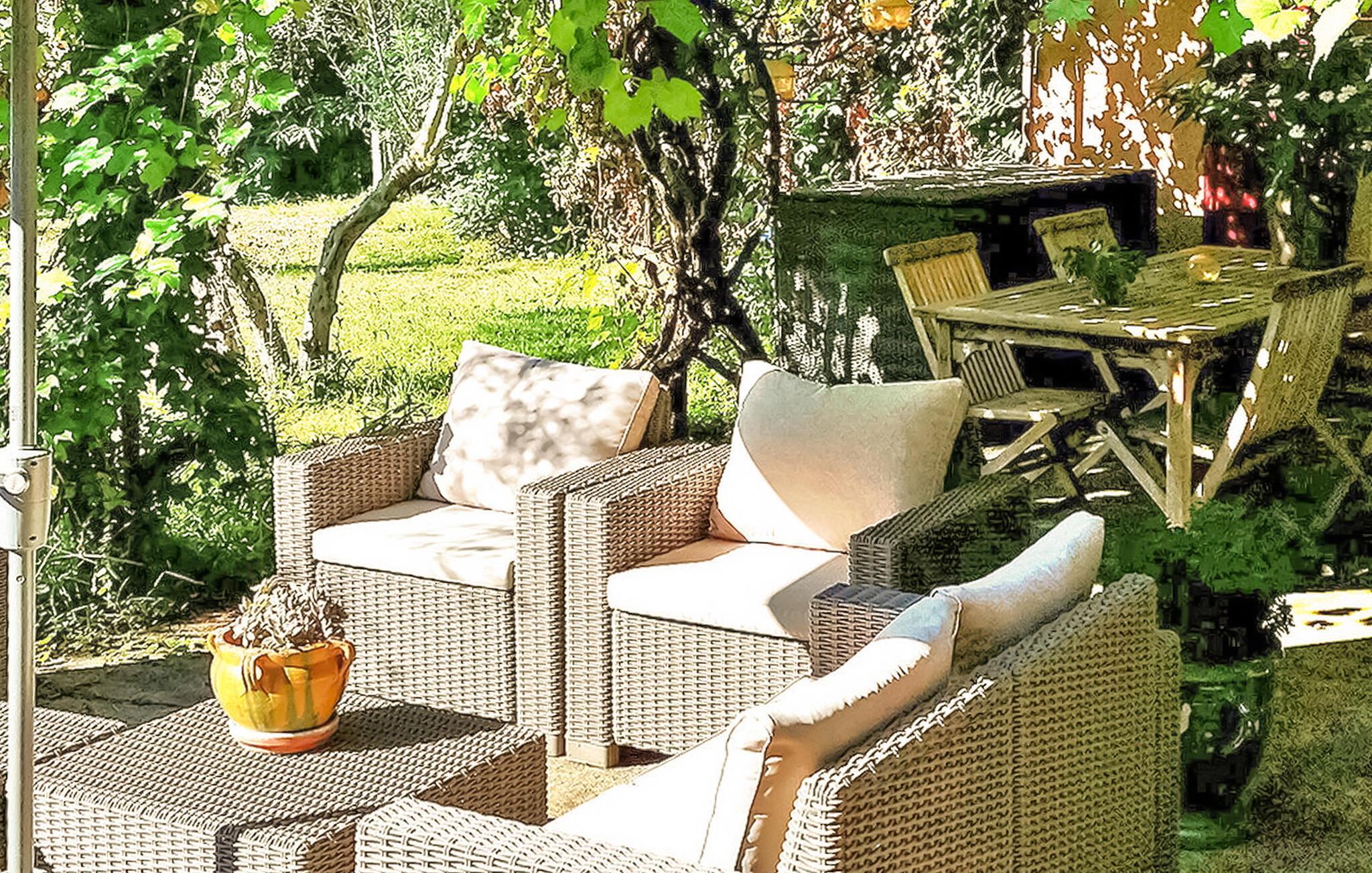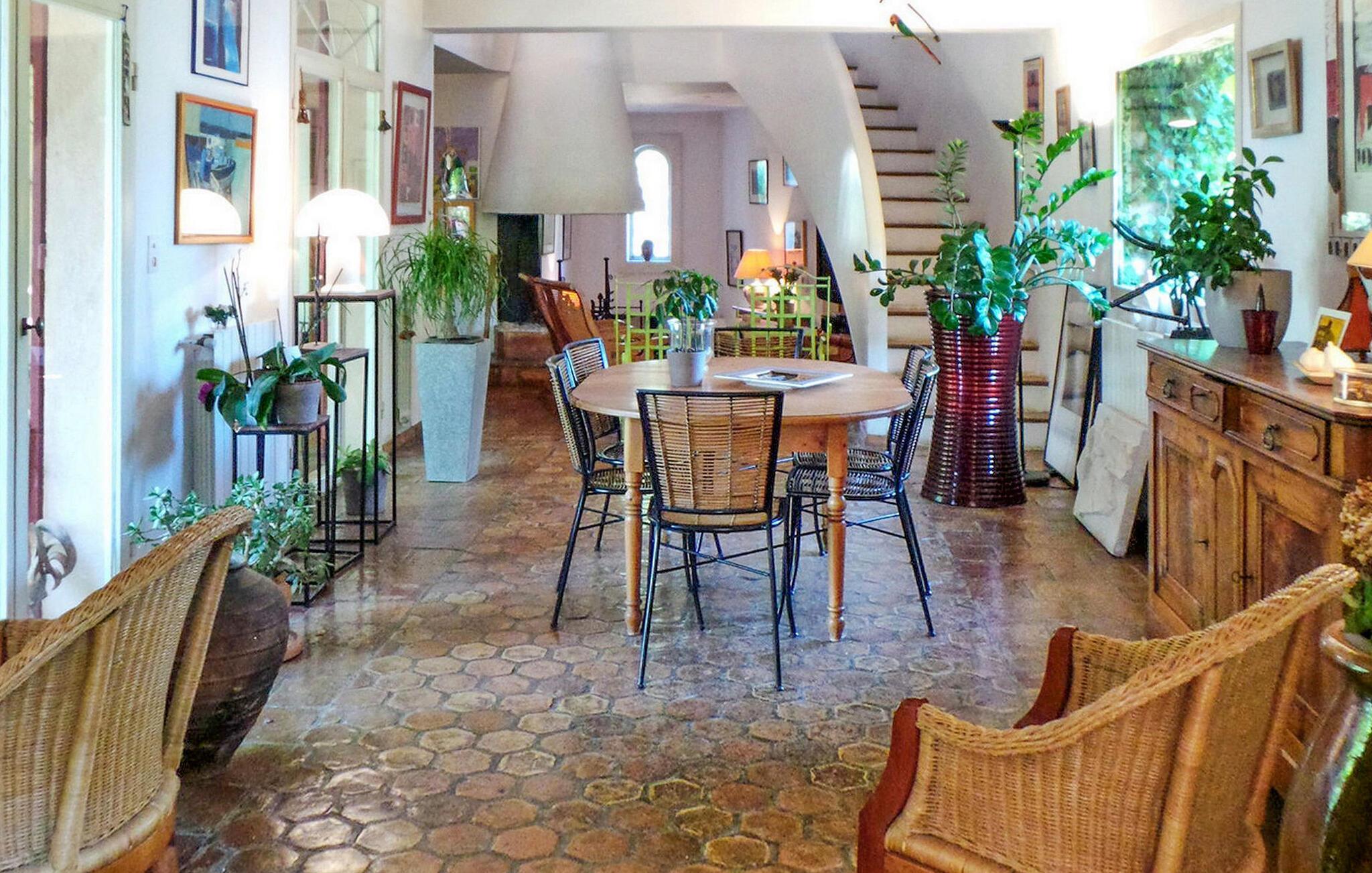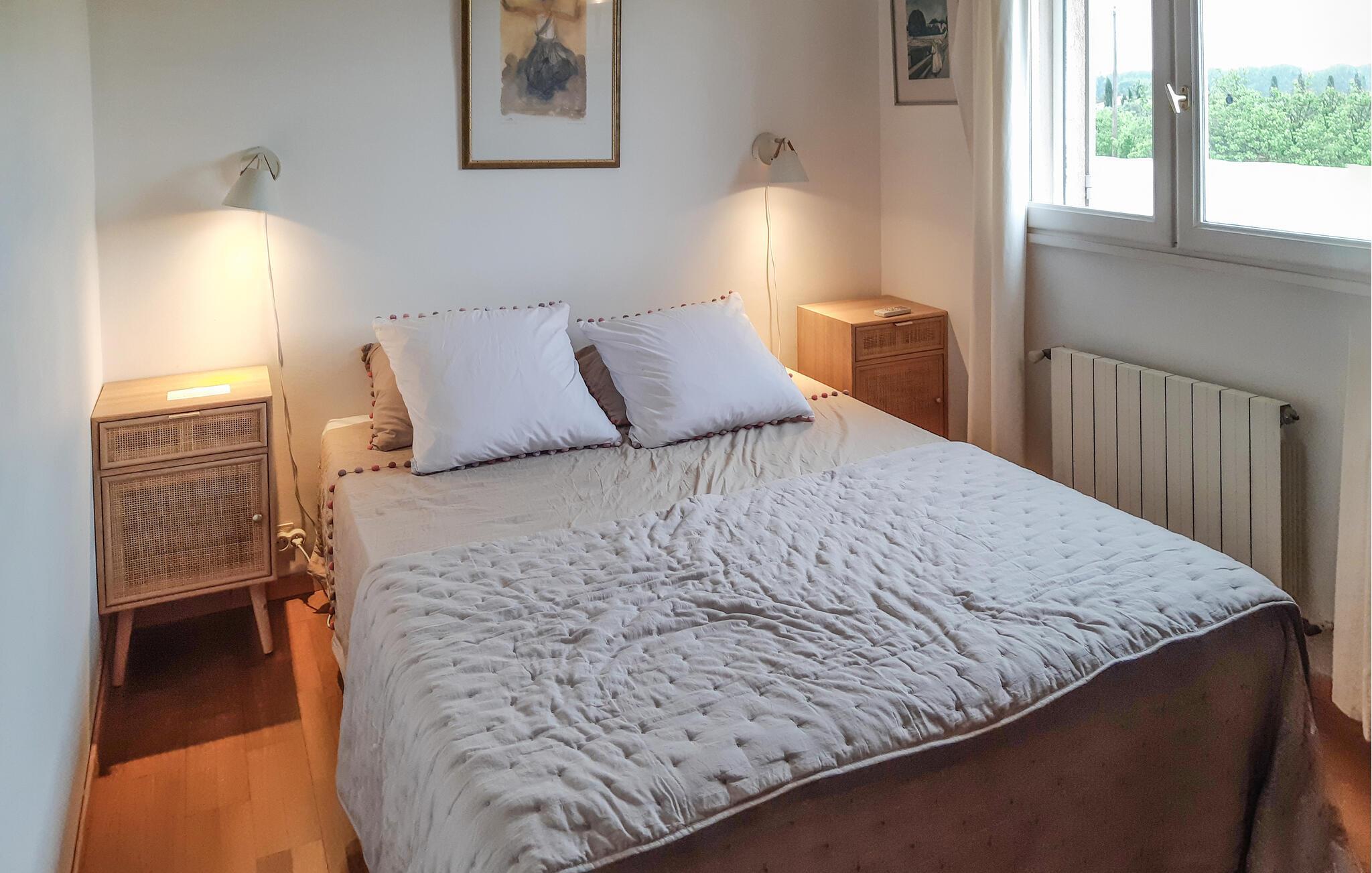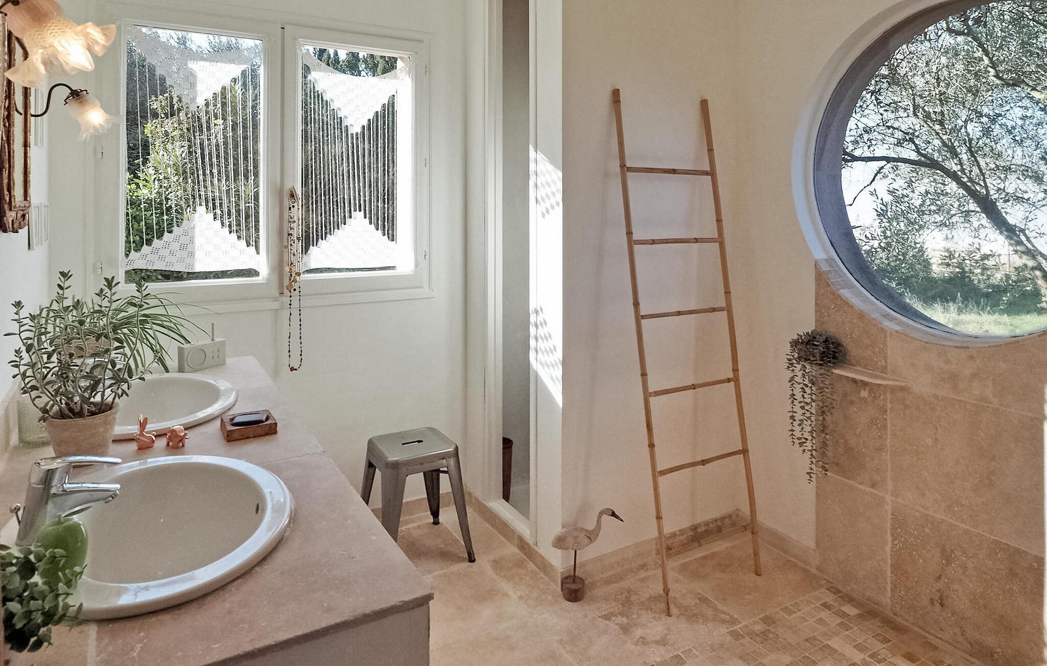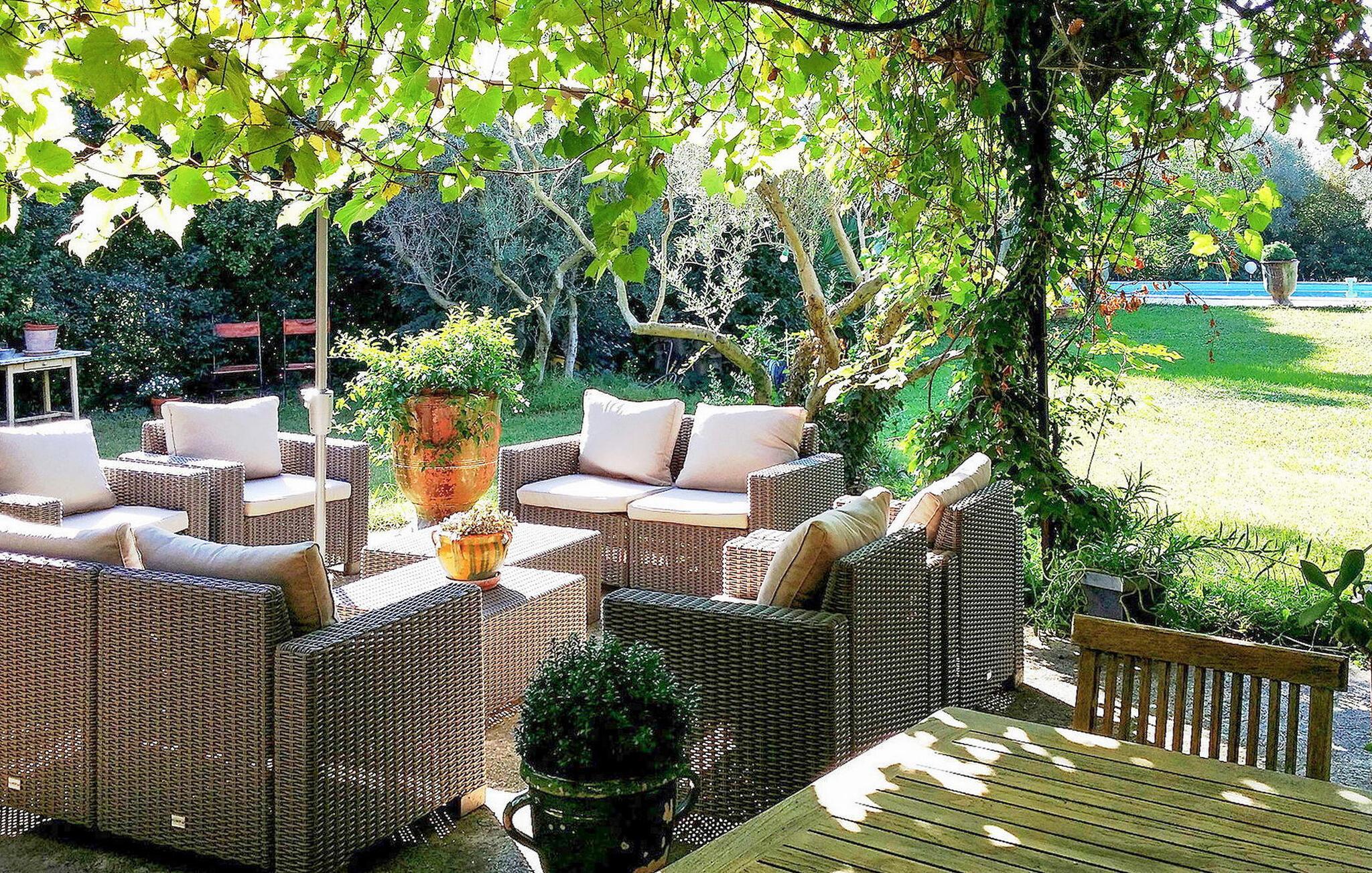 Diese Ferienvilla in Arles bietet einen ruhigen Rückzugsort etwas außerhalb der Stadt und verfügt über einen privaten Pool und eine schattige Terrasse. Im Erdgeschoss befinden sich ein kombinierter Wohn- und Essbereich sowie eine gemütliche Sitzecke mit TV. Die Küche ist mit modernen Annehmlichkeiten ausgestattet. Im Erdgeschoss befinden sich zwei Schlafzimmer und ein Duschbad. Die erste Etage verfügt über drei Schlafzimmer, in diesen Zimmern ist eine Klimaanlage verfügbar. Zu den Außenanlagen gehören Grundstücke, die von verschiedenen alten Bäumen umgeben sind und Privatsphäre gewährleisten. Entspannen Sie auf der schattigen Terrasse und spielen Sie eine Partie Tischtennis. Das Anwesen verfügt über einen gesicherten privaten Pool mit den Maßen 10 x 5 m, der sich ideal zum Entspannen und Erholen eignet. Die Villa liegt in einer ländlichen Gegend außerhalb von Arles. Alle Lebensmittelgeschäfte befinden sich 4 km entfernt in Pont de Crau. Ein Auto ist hier unbedingt erforderlich.