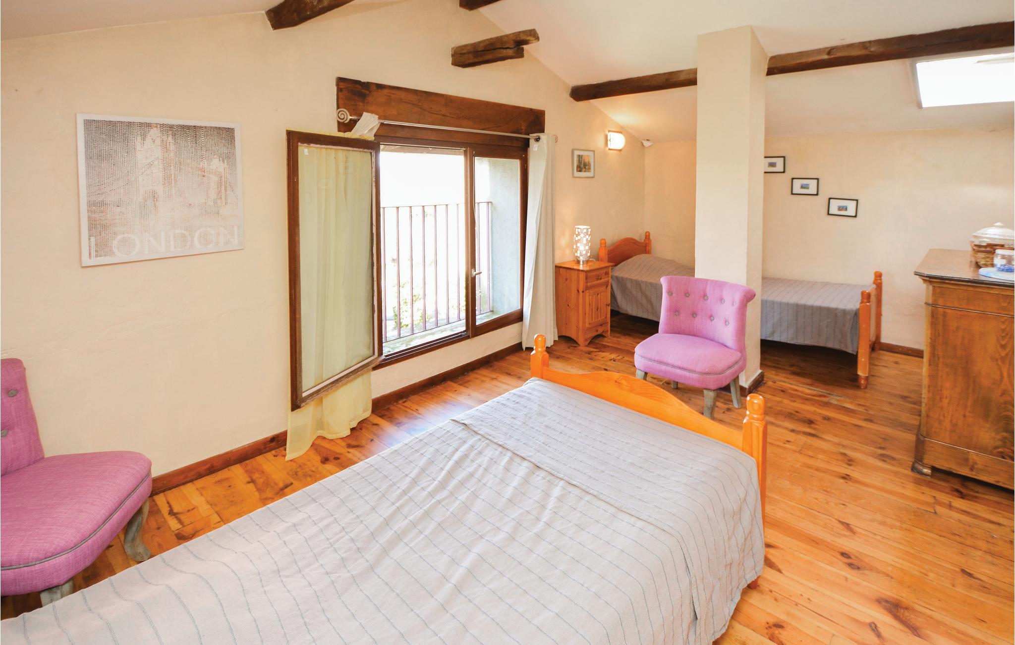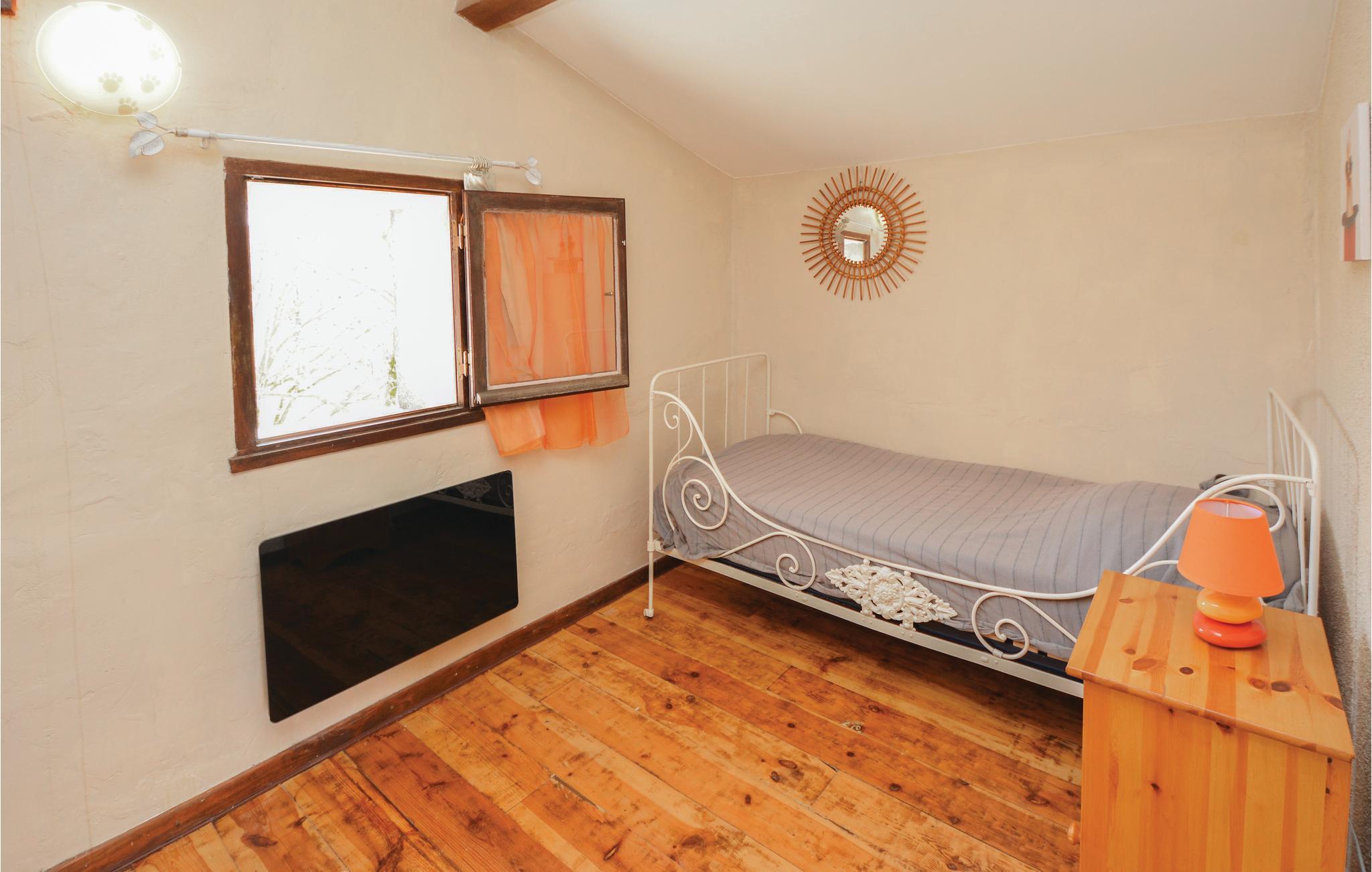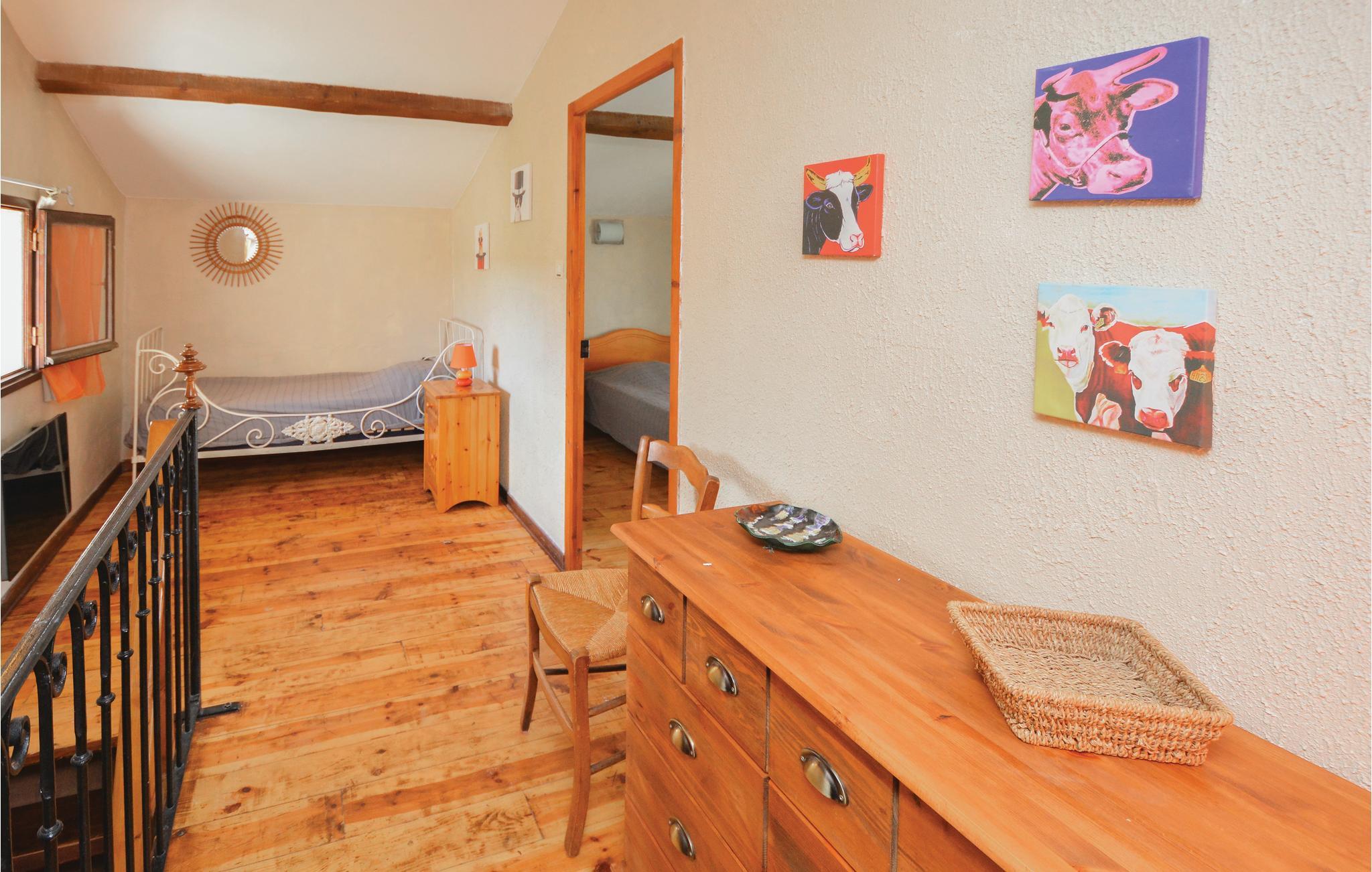 Lust auf Erholung und Abwechslung in einem schönen Dorf in Südfrankreich? Dann ist dieses herrliche Ferienhaus mit Privatpool in Barjac genau das richtige für Sie! In einem hübschen Weiler im Gard, zwischen den Schluchten von Cèze und der Ardèche und an den Toren der Cevennen, bietet es alles, was man für einen gelungenen Urlaub braucht. Die Lage 1 km vom Zentrum von Barjac entfernt ist sehr ruhig. Holzböden, Holzbalken und viel Stein unterstreichen den Charakter dieser komfortablen Unterkunft. Von der Terrasse aus hat man einen tollen Blick auf Dorf und Wiesen, und der Pool ist von mediterraner Vegetation umgeben. Hier am Rande des Departements Ardèche erreichen Sie innerhalb kurzer Zeit viele tolle Sehenswürdigkeiten, wie zum Beispiel Vallon-Pont d'Arc (13 km), das um seinen 60 m hohen Natursteinbogen bzw. den Pont d'Arc die zentrale Ortschaft für den Kanu- und Outdoortourismus in der Region ist. Hier liegt auch die nicht für die Öffentlichkeit zugängliche Chauvet-Höhle, in der die ältesten weltweit bekannten Höhlenmalereien und Höhlenzeichnungen gefunden wurden. Die Rekonstruktion der Höhle bzw. die Caverne du Pont d'Arc wurde jedoch für touristische Zwecke nachgebaut und ist besuchbar. Schauen Sie sich in dem entzückenden Dorf Ruoms (22 km) um, und auch die beiden Dörfer La Roque-sur-Cèze und Goudargues sind einen Besuch wert und wie auch die einzigartigen Kaskaden von Sautadet in weniger als einer halben Autostunde zu erreichen. Barjac mit seinen Gassen, alten Fassaden und angenehm schattigen Plätzen ist ein schönes Dorf zum Kennenlernen. Zu Ostern wird im Dorf gefeiert. Ende Juli findet hier auch das Festival Chansons et Paroles (Lieder und Worte) statt, und durch die Nähe zur Camargue Anfang August Feste rund um den Stier. Es gibt in dieser Gegend eine Reihe toller Wanderwege, unter anderem auch im Ronze-Wald mit seinen vielen Dolmen und weiteren Überresten der Jungsteinzeit. Diese Region wird Badenixen, Flussfischer, Wanderer, Radfahrer, Höhlenfans und überhaupt Freizeitsportler und Erholungsbedürftige gleichermaßen begeistern. Im Juli und August werden Führungen durch die Altstadt von Barjac angeboten. Jeden Mittwoch ab 18 Uhr sind Besuche im Stadtarchiv möglich. Wenige Minuten vom Dorf entfernt verläuft ein Trimm-dich-Pfad. Das mit zwei Einzelbetten ausgestattete Schlafzimmer 2 ist über eine offene Schlafgalerie mit einem Einzelbett erreichbar.