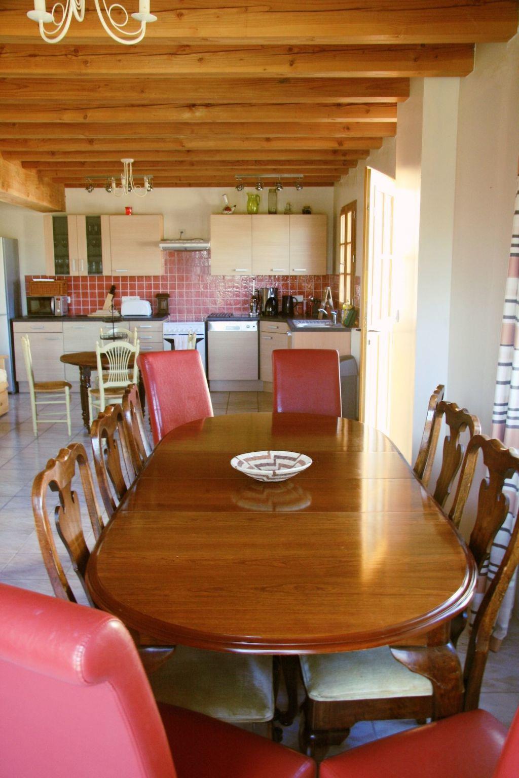 Das Anwesen besteht aus zwei umgebauten Scheunen, die aneinander grenzen und in Gärten mit Blick auf das Schwimmbad liegen. Die große Scheune hat zwei Etagen und besteht aus den folgenden Räumen: Im Erdgeschoss befindet sich ein offenes Wohnzimmer mit vielen Sofas, einem Flachbildfernseher mit eingebautem DVD-Player. Hinter der Sitzecke befindet sich ein großer Esstisch für 10 bis 12 Personen, der in die Küche führt, die komplett mit Backofen, Geschirrspüler, Kühlschrank mit Gefrierfach und Mikrowelle ausgestattet ist, sowie mit Kochutensilien, Kaffeemaschine, Wasserkocher und Entsafter. In der Küche gibt es auch einen kleinen Tisch mit Stuhl. Es gibt auch einen Hauswirtschaftsraum mit Toilette, Waschmaschine, Trockner, Wäschetrockner und Hochstuhl. Im Obergeschoss befindet sich ein Kingsize-Badezimmer mit Dusche, Toilette und Waschbecken sowie ein Kinderbett. Das zweite Schlafzimmer ist ein Kingsize-Zimmer, ein drittes Schlafzimmer ist ein Familienzimmer mit einem Doppelbett und zwei Einzelbetten, und das vierte Schlafzimmer ist ein Zweibettzimmer mit zwei Einzelbetten. Auf dieser Etage befindet sich ein Familienbadezimmer mit Badewanne, Dusche über der Badewanne, Toilette und Waschbecken. Wir stellen keine Bettwäsche für die Kinderbetten zur Verfügung. Die Schlafzimmer sind alle mit Klimaanlage und Heizung ausgestattet. Die zweite Scheune stammt aus dem 11. Jahrhundert und verfügt über hohe Gewölbedecken, sie befindet sich im Erdgeschoss und hat breite Türen und einen Korridor. Diese Scheune hat einen offenen Küchen-, Wohn- und Essbereich. Die Küche hat einen Backofen, eine Mikrowelle, einen Kühlschrank mit Gefrierfach, einen Waschtrockner, eine voll ausgestattete Küche, eine Kaffeemaschine, einen Toaster und einen Wasserkocher. Der Hauswirtschaftsraum verfügt über eine Wäschemangel, ein Bügeleisen, ein Bügelbrett und einen Hochstuhl. Der Esstisch bietet Platz für 4 Personen. Das Wohnzimmer verfügt über einen Fernseher, einen DVD-Player, ein großes Sofa und einen Sessel sowie ein Schlafsofa für 2 Personen. Die Schlafzimmer bestehen aus einem großen, hohen Kingsize-Zimmer mit einem Babybett und einem Zweibettzimmer. Alle Schlafzimmer verfügen über hochwertige Bettwäsche und Handtücher, einen Haartrockner, einen Schminktisch, eine Kommode und einen Kleiderschrank. Für die kühleren Abende stellen wir auch Poolhandtücher und Badetücher zur Verfügung. In jeder Scheune gibt es einen Blauzahn-Lautsprecher, den Sie sowohl drinnen als auch draußen benutzen können.