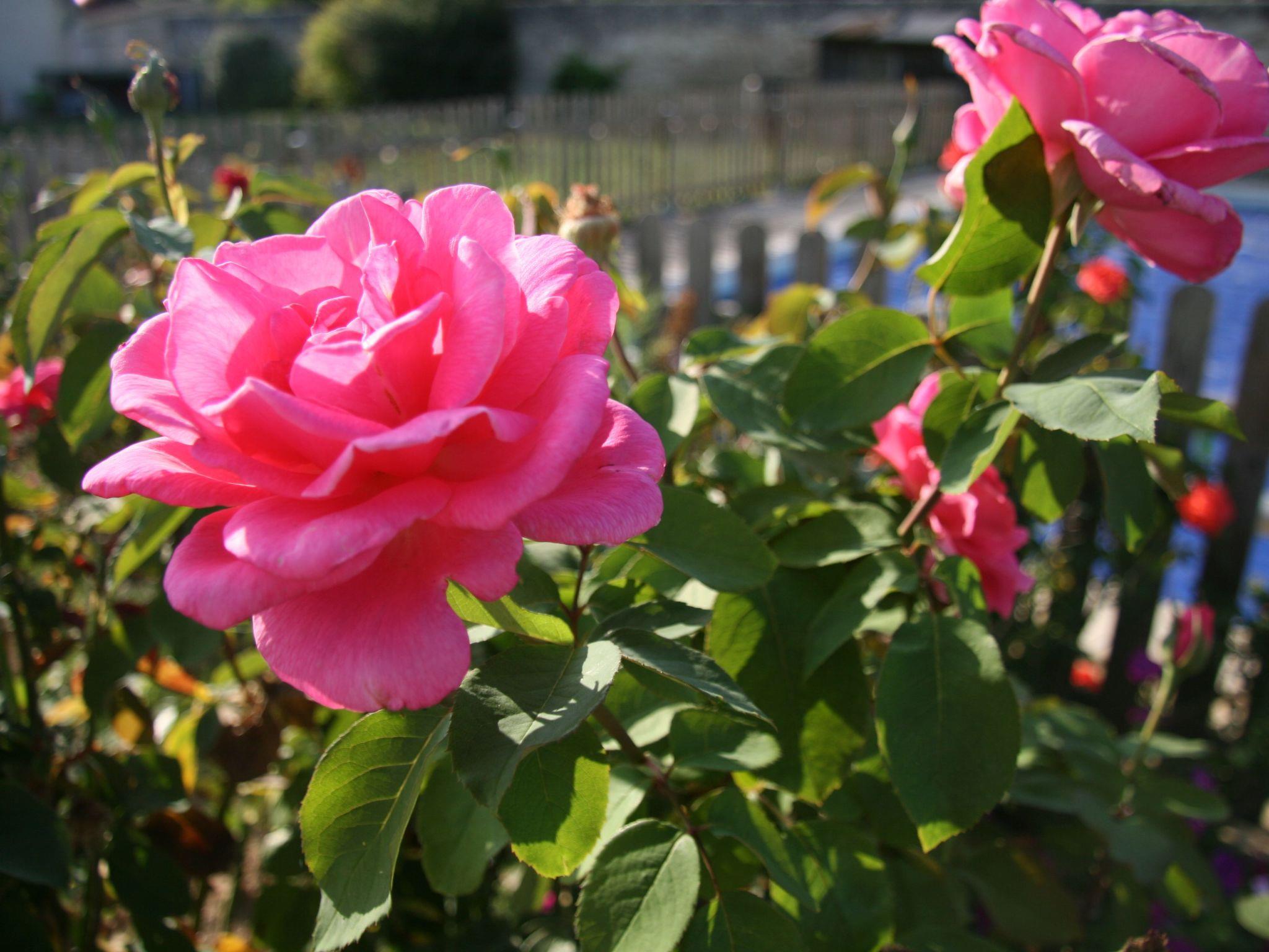 Die Scheunen befinden sich in einem Innenhof mit Blick auf die Gärten. Beide Scheunen verfügen über eine Terrasse mit Gartenmöbeln, Sonnenschirm und Grill. Die Sitzplätze vor der großen Scheune bieten Platz für 16 Personen. Das Schwimmbad ist eingezäunt und verschlossen, um zu verhindern, dass Kinder es ohne Erwachsene betreten. Der Pool ist von Mai bis September geöffnet und wird auf mindestens 25 Grad beheizt. Es gibt genügend Sitzgelegenheiten am Pool und Sonnenschirme, die Schatten spenden. Es gibt einen großen Parkplatz, der Platz für 8 Autos bietet Wir können ein Planschbecken für Kleinkinder zur Verfügung stellen. Wir haben Fahrräder für Erwachsene und Kinder kostenlos zu verwenden.