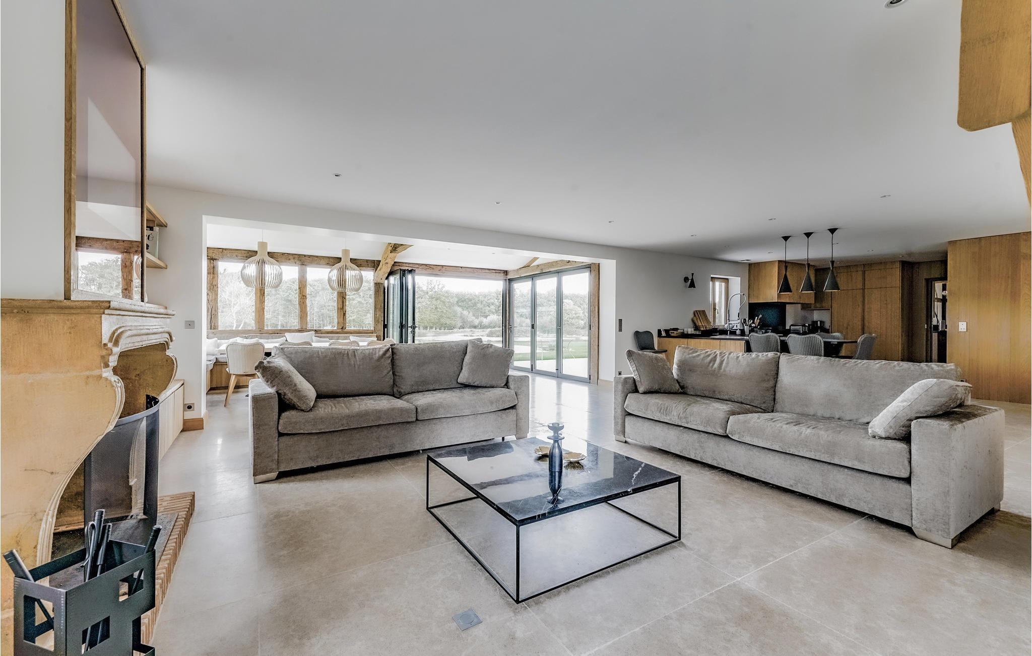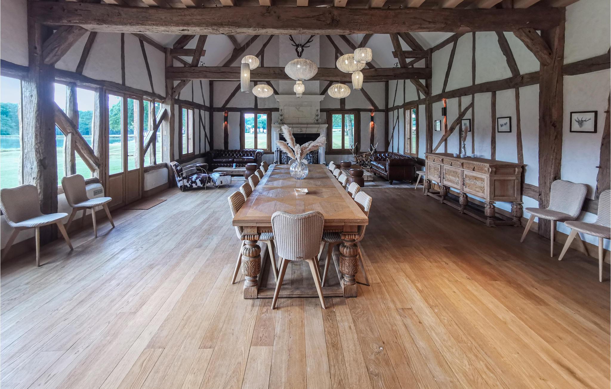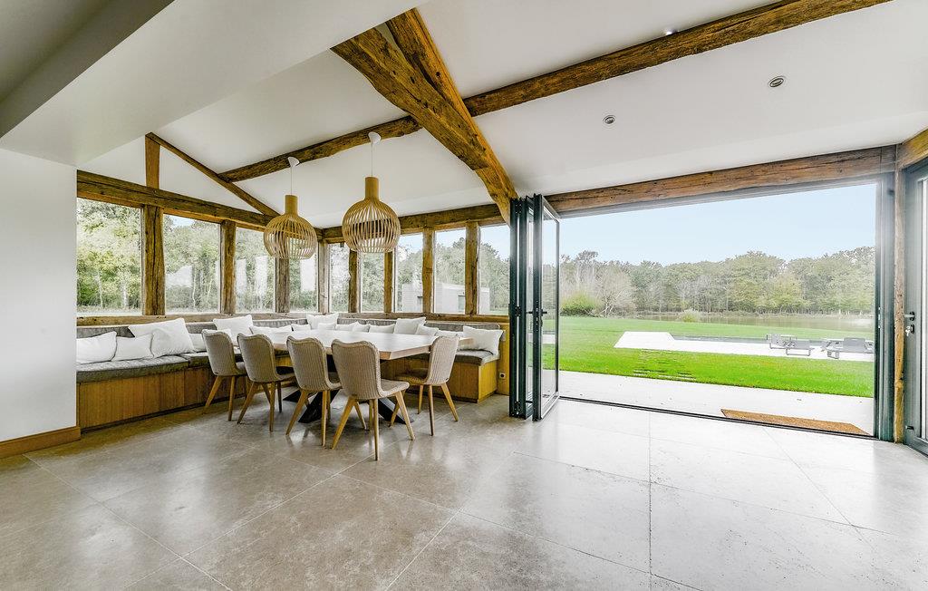 Willkommen in diesem wunderschönen Ferienhaus, das keine Ihrer Wünsche offenlässt. Die absolut exquisite und moderne Einrichtung, kombiniert mit dem Charme des Hauses, verspricht Ihnen eine fantastische Wohlfühlatmosphäre. Im geräumigen und großzügigen Haus können Sie sich einfach nur mit Ihrer Großfamilie wohlfühlen. Das Wohnzimmer mit Kamin und das Esszimmer mit Panoramablick auf den Infinity-Pool, den Teich und den Wald, in dem Sie mit etwas Glück Hirsche beobachten können, werden Sie begeistern.