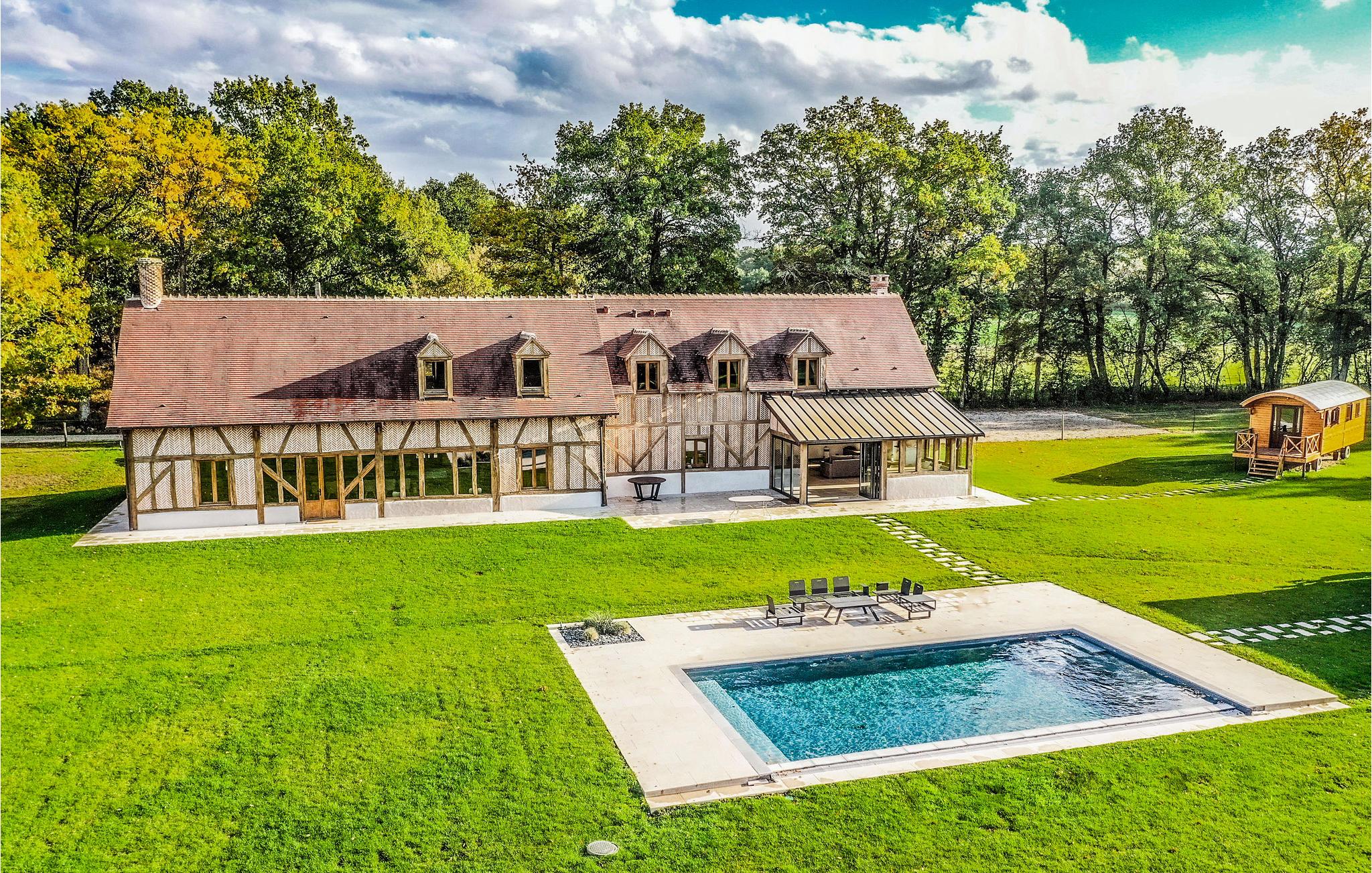 Für einen noch originelleren Aufenthalt können 2 Erwachsene und 2 Kinder den Zirkuswohnwagen auf dem Gelände nutzen, der nur wenige Meter vom modernen, voll ausgestatteten Haus entfernt ist.