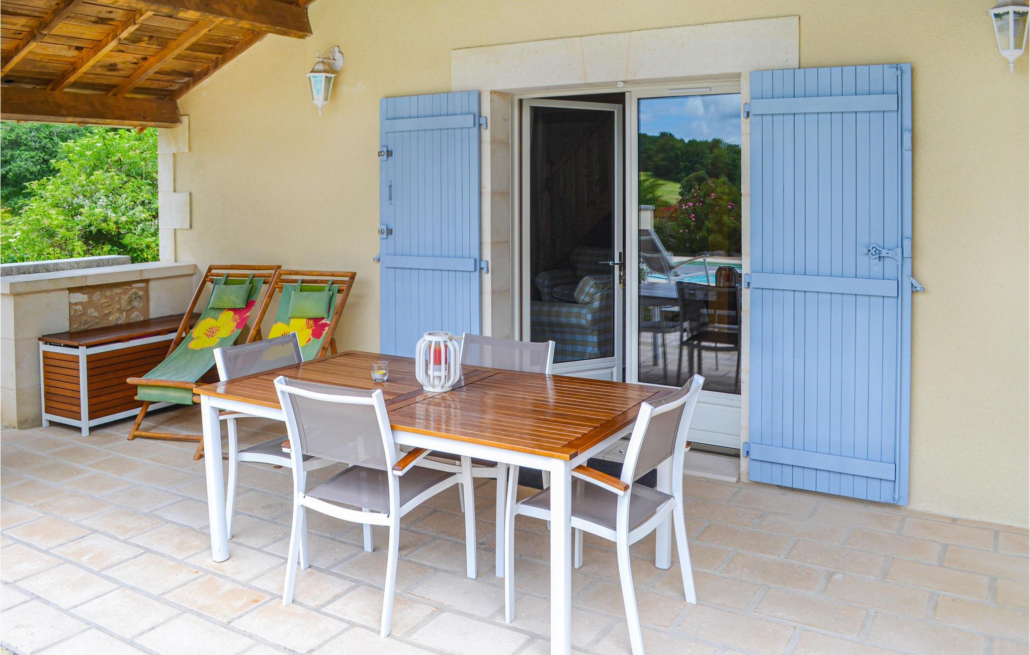 Dieses luxuriöse Ferienhaus verfügt über einen eigenen Swimmingpool und verwöhnt Sie mit einer herrlichen Aussicht. Es steht am Rande von Brantôme, einem vielbesuchten, mittelalterlichen Städtchen am Fluss Dronne, 20 km nördlich von Périgueux. Dieser ruhige Fluss ist ideal geeignet für Kanu- oder Kajaktouren durch das Périgord. Zum 3 Hektar großen Grundstück gehören ein ca. 4.000 m² großer und gepflegter Garten sowie eine erhöhte Terrasse. Trotz der beiden anderen Häuser auf dem Grundstück wohnen Sie komplett unabhängig. Siehe auch die FAD270. Das dritte Badezimmer hat keine Dusche oder Wanne.