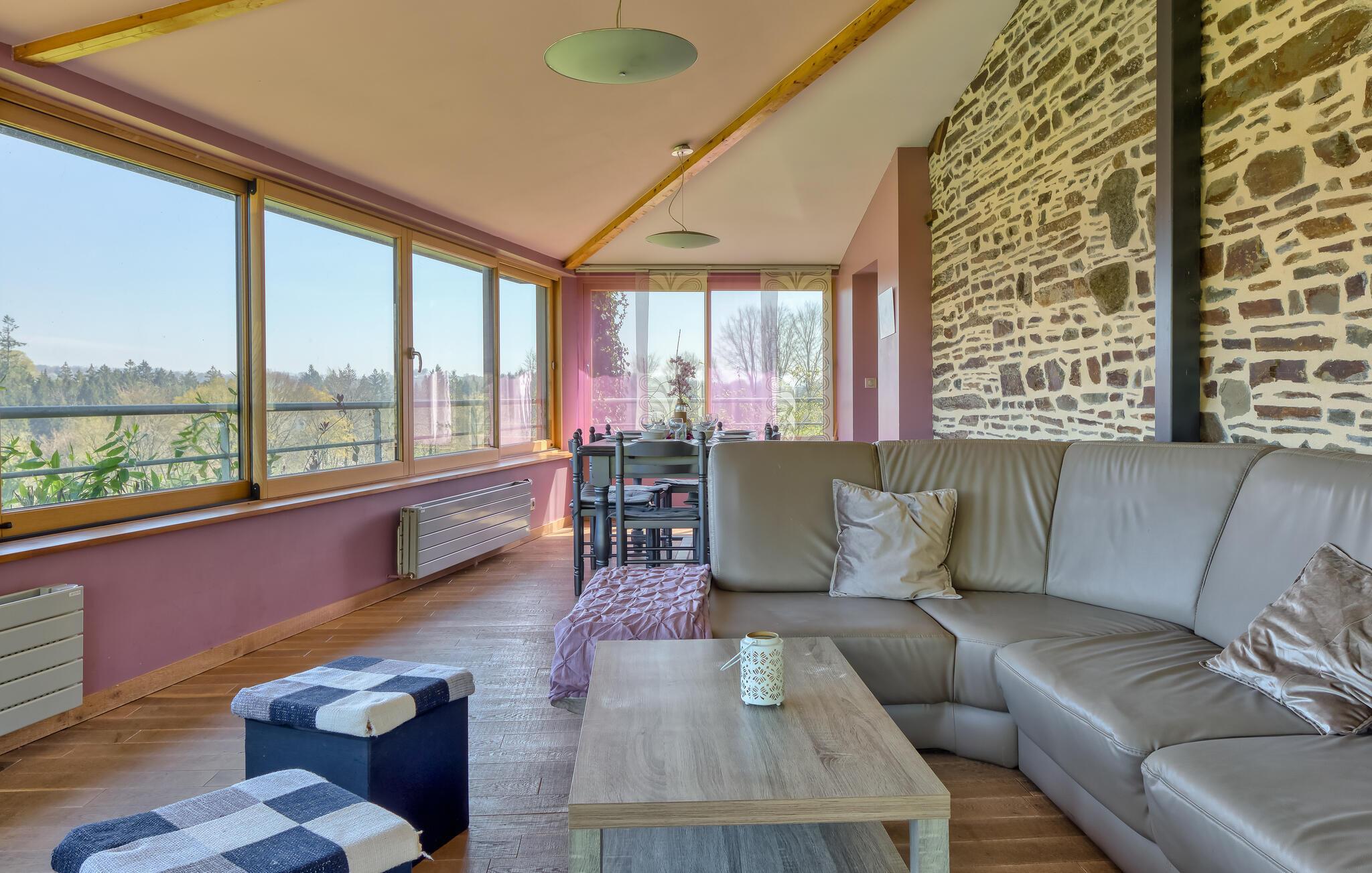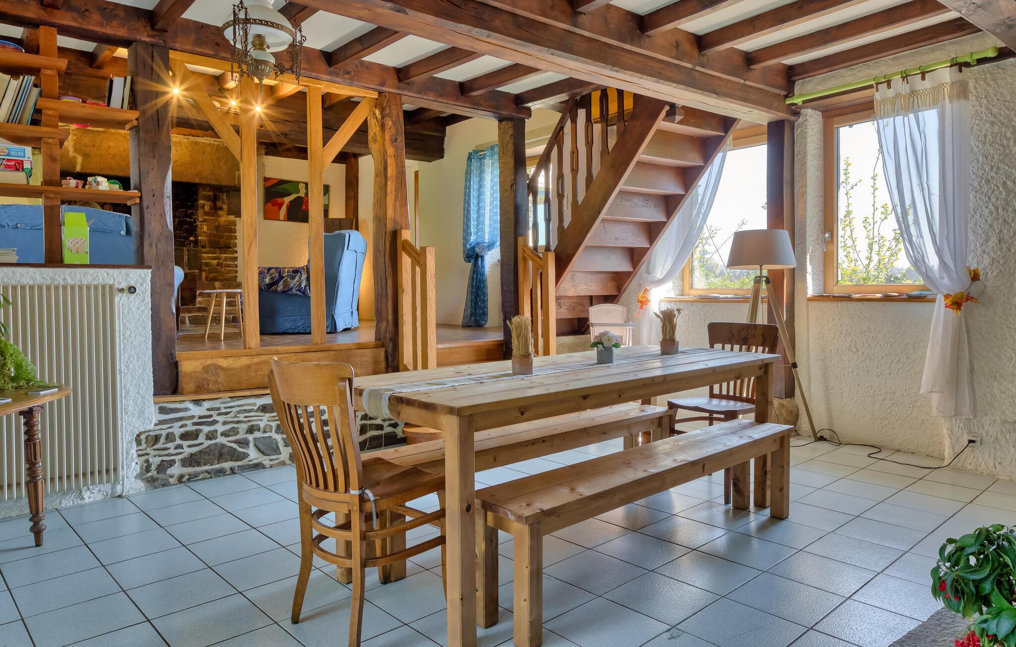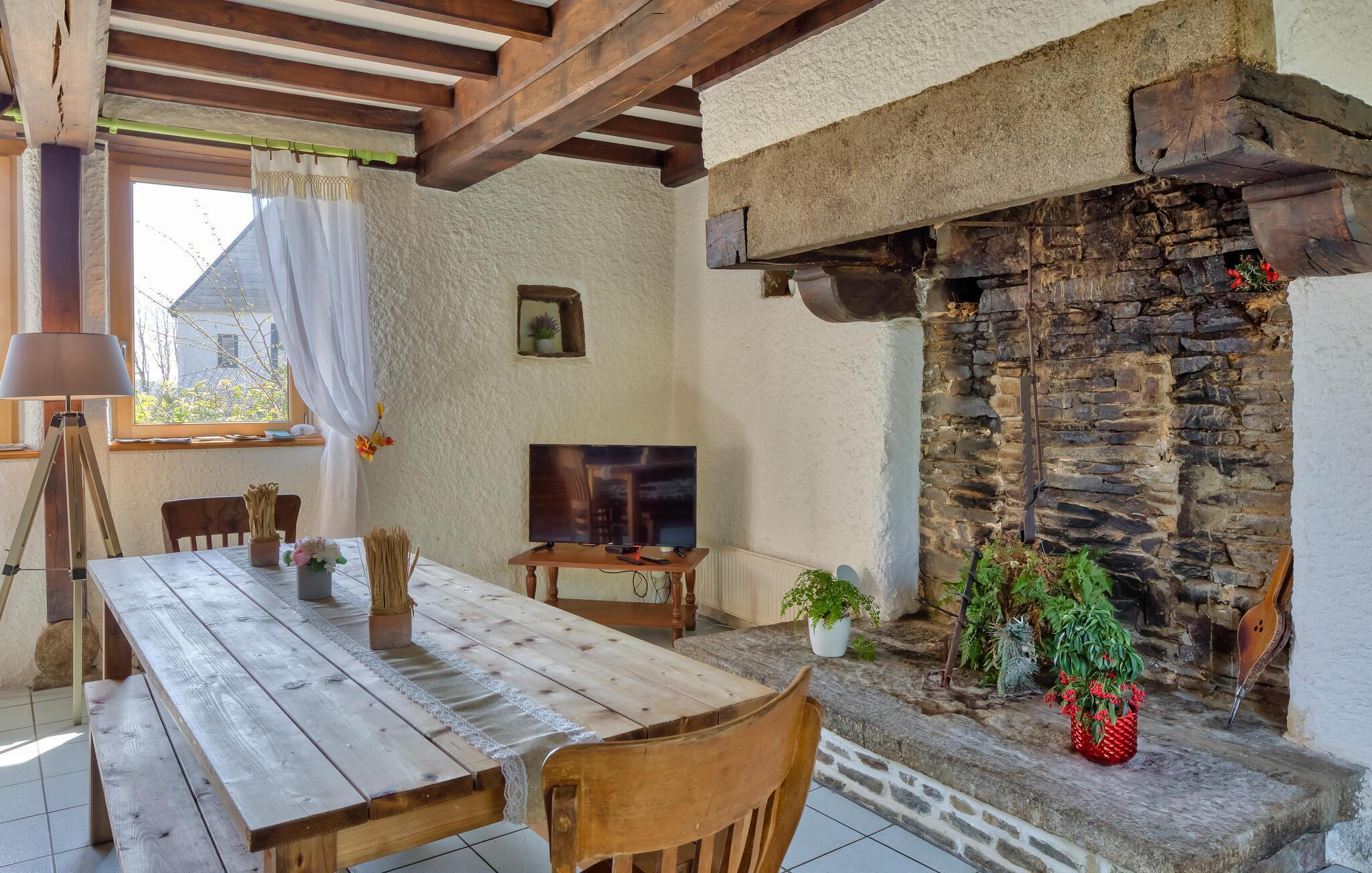 Das Innere des Hauses verbindet Authentizität mit Komfort durch freiliegende Holzbalken und eine gemütliche Atmosphäre. Freuen Sie sich auch auf einen ganz besonderen Raum, der Ihnen hier ebenfalls zur Verfügung steht. Die zum Spielzimmer umgestaltete Garage, ausgestattet mit einer Tischtennisplatte, bietet gesellige Stunden mit der Familie und Freunden. Genießen Sie von der Unterkunft aus den atemberaubenden Blick auf das Tal, in dem die Natur ihre Schönheit im Rhythmus der Jahreszeiten entfaltet. Jeder Sonnenaufgang taucht hier die friedliche und zauberhafte Landschaft in ein faszinierendes Licht und sorgt für einen erholsamen Aufenthalt.