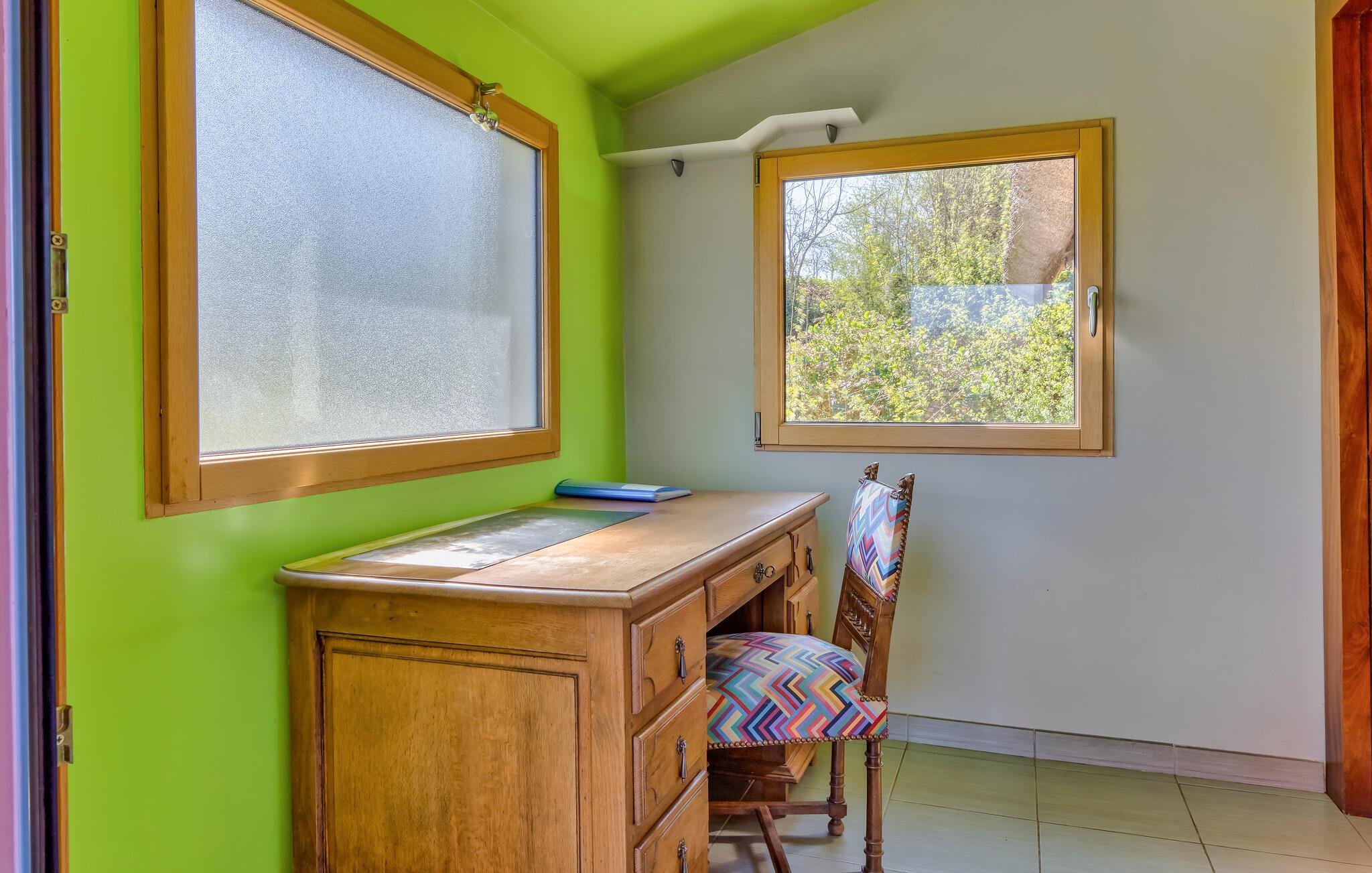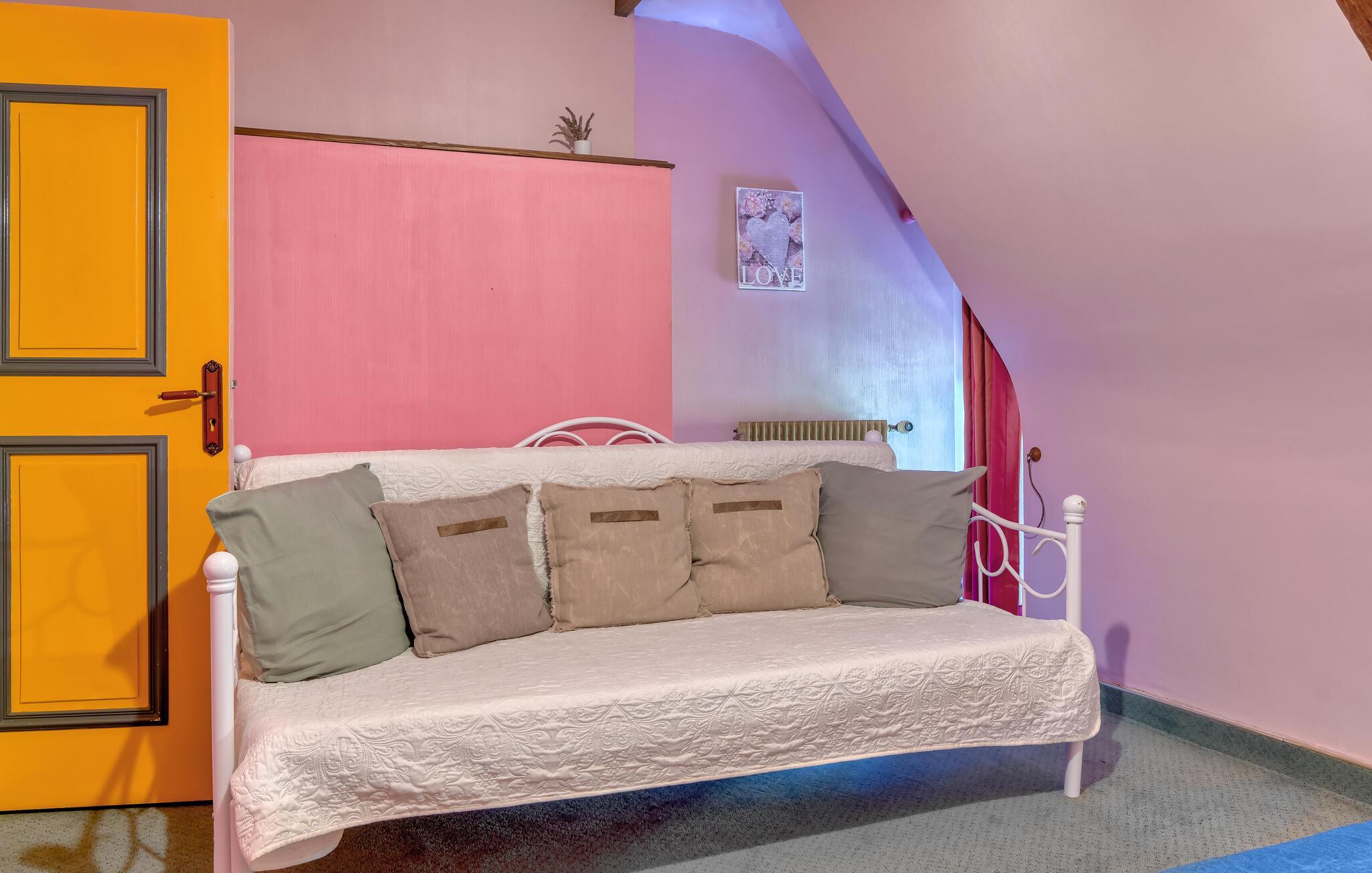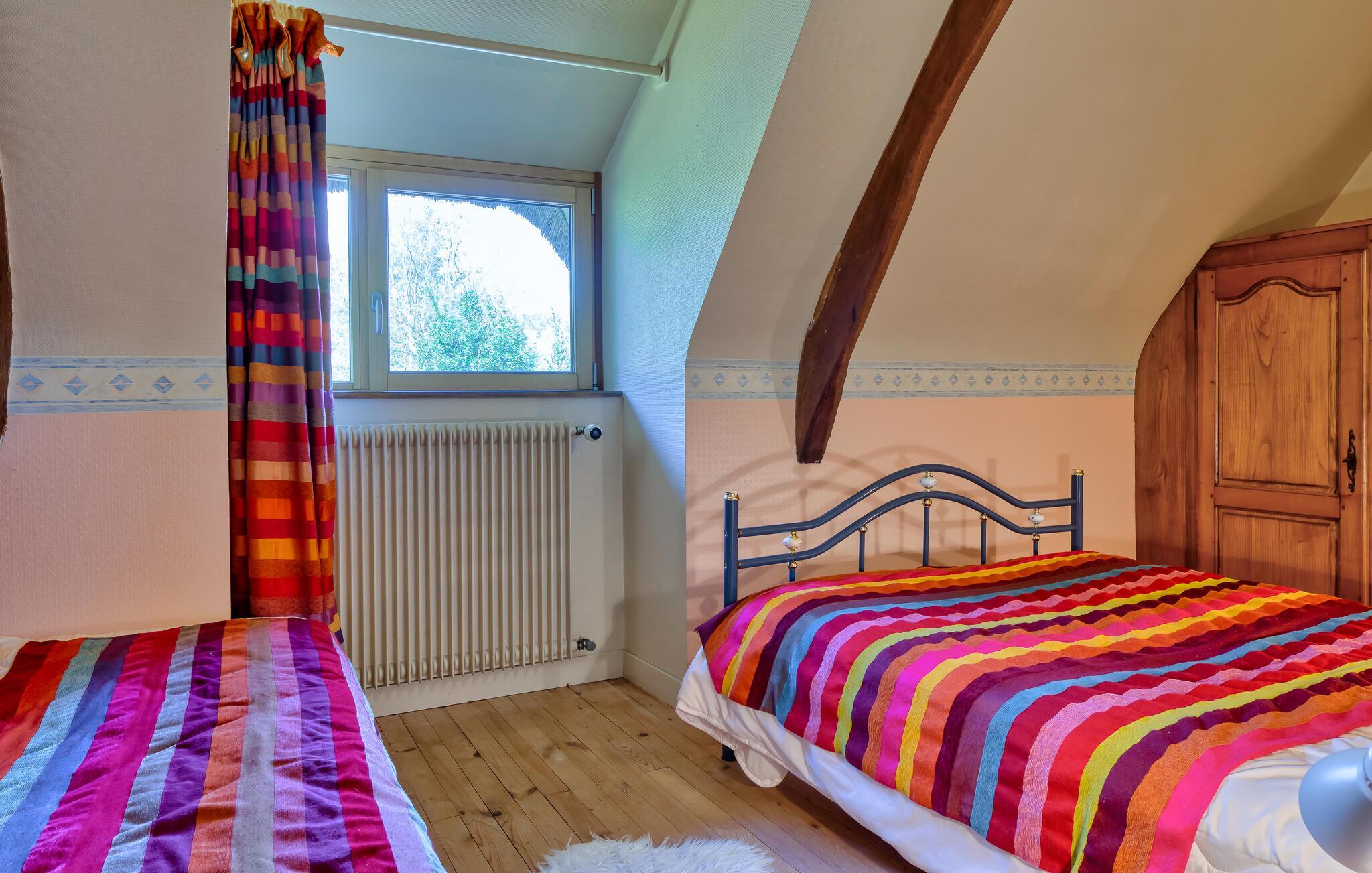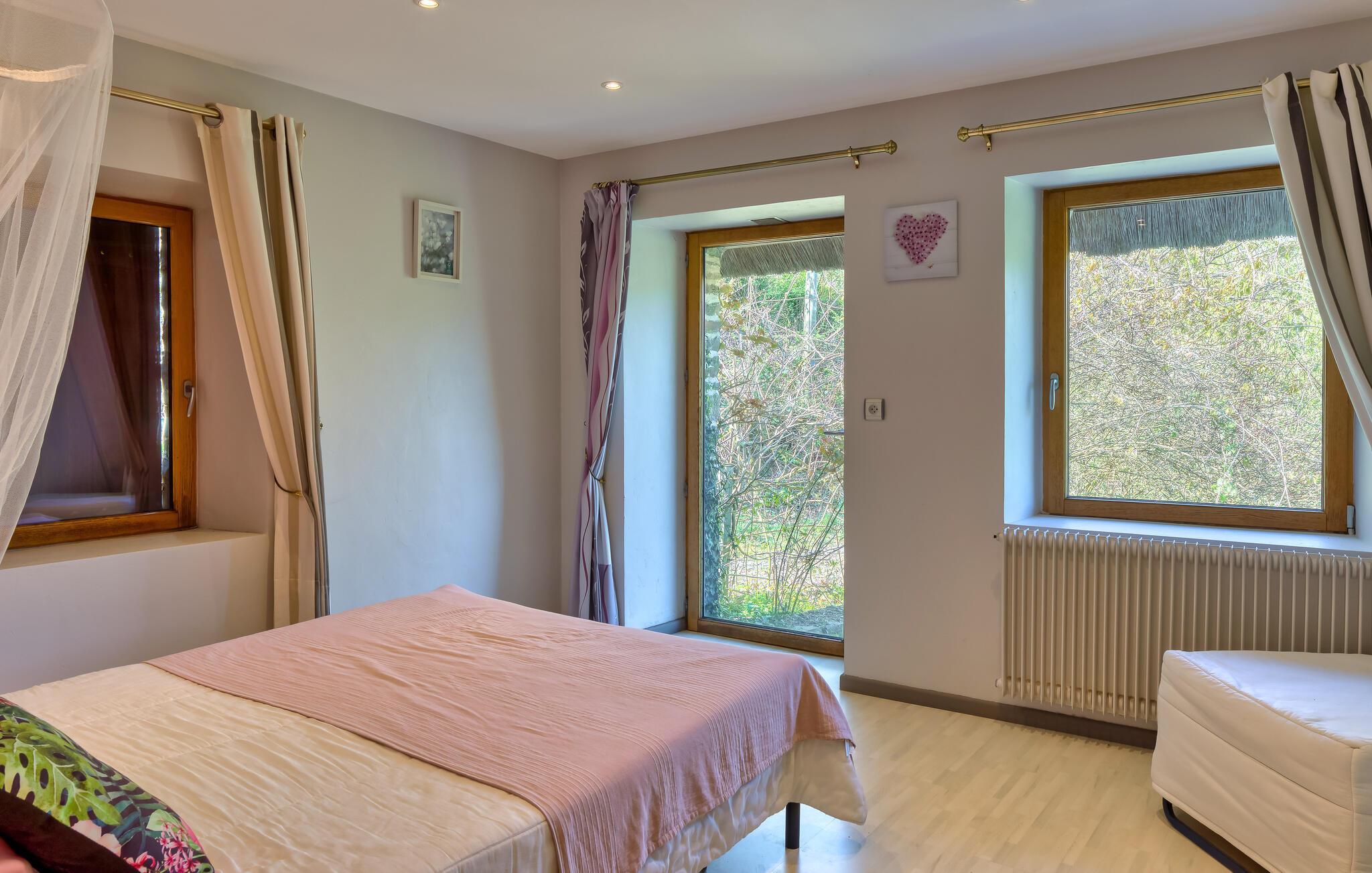 Das Innere des Hauses verbindet Authentizität mit Komfort durch freiliegende Holzbalken und eine gemütliche Atmosphäre. Freuen Sie sich auch auf einen ganz besonderen Raum, der Ihnen hier ebenfalls zur Verfügung steht. Die zum Spielzimmer umgestaltete Garage, ausgestattet mit einer Tischtennisplatte, bietet gesellige Stunden mit der Familie und Freunden. Genießen Sie von der Unterkunft aus den atemberaubenden Blick auf das Tal, in dem die Natur ihre Schönheit im Rhythmus der Jahreszeiten entfaltet. Jeder Sonnenaufgang taucht hier die friedliche und zauberhafte Landschaft in ein faszinierendes Licht und sorgt für einen erholsamen Aufenthalt.