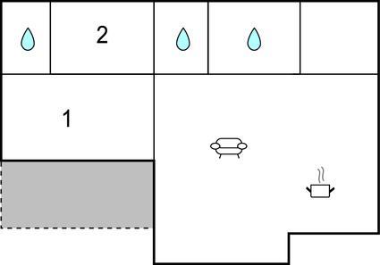 Badezimmer 5m2 (nr. 1) - WC. Warmes und kaltes Wasser. Dusche