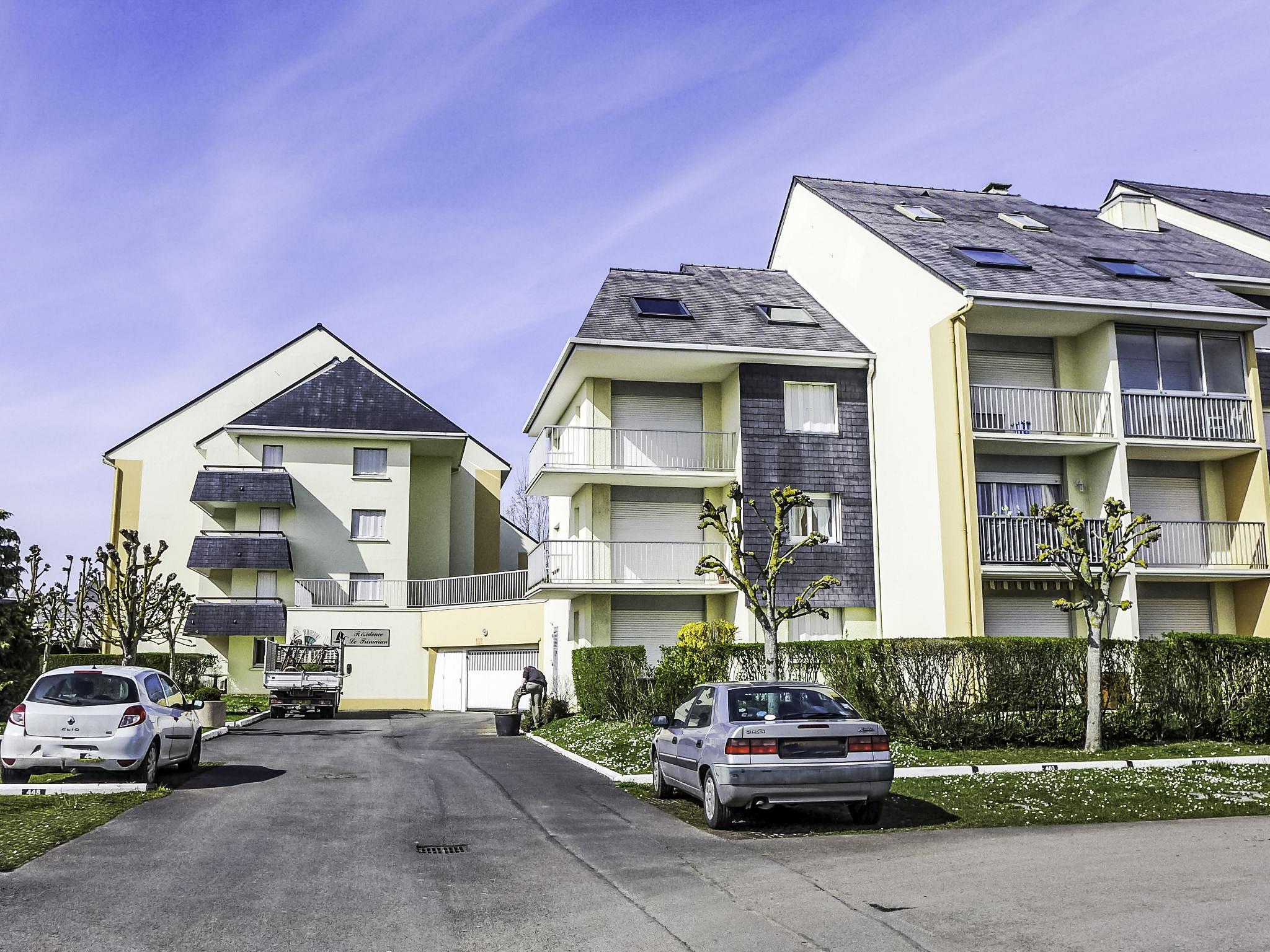 Residenz "Le Trimaran", auf 4 Stockwerken. Im Ort, 900 m vom Zentrum von Cabourg, 750 m vom Meer, 750 m vom Strand. Im Hause: Fahrstuhl, Einstellraum für Fahrräder. Einkaufsgeschäft 900 m, Supermarkt 1.4 km, Restaurant 900 m, Bäckerei 750 m, Fahrradverleih 350 m, Bushaltestelle "Cabourg - Plage" 400 m, Sandstrand 750 m, Thermalbad "Thalazur Cabourg" 1.1 km. Sporthafen 2.2 km, Golfplatz (9 Loch) 1.6 km, Tennis 200 m, Minigolf 1.4 km, Reitstall 250 m. Nahe gelegene Sehenswürdigkeiten: Deauville 23 km, Trouville 26 km, Honfleur 48 km, Caen 24 km.