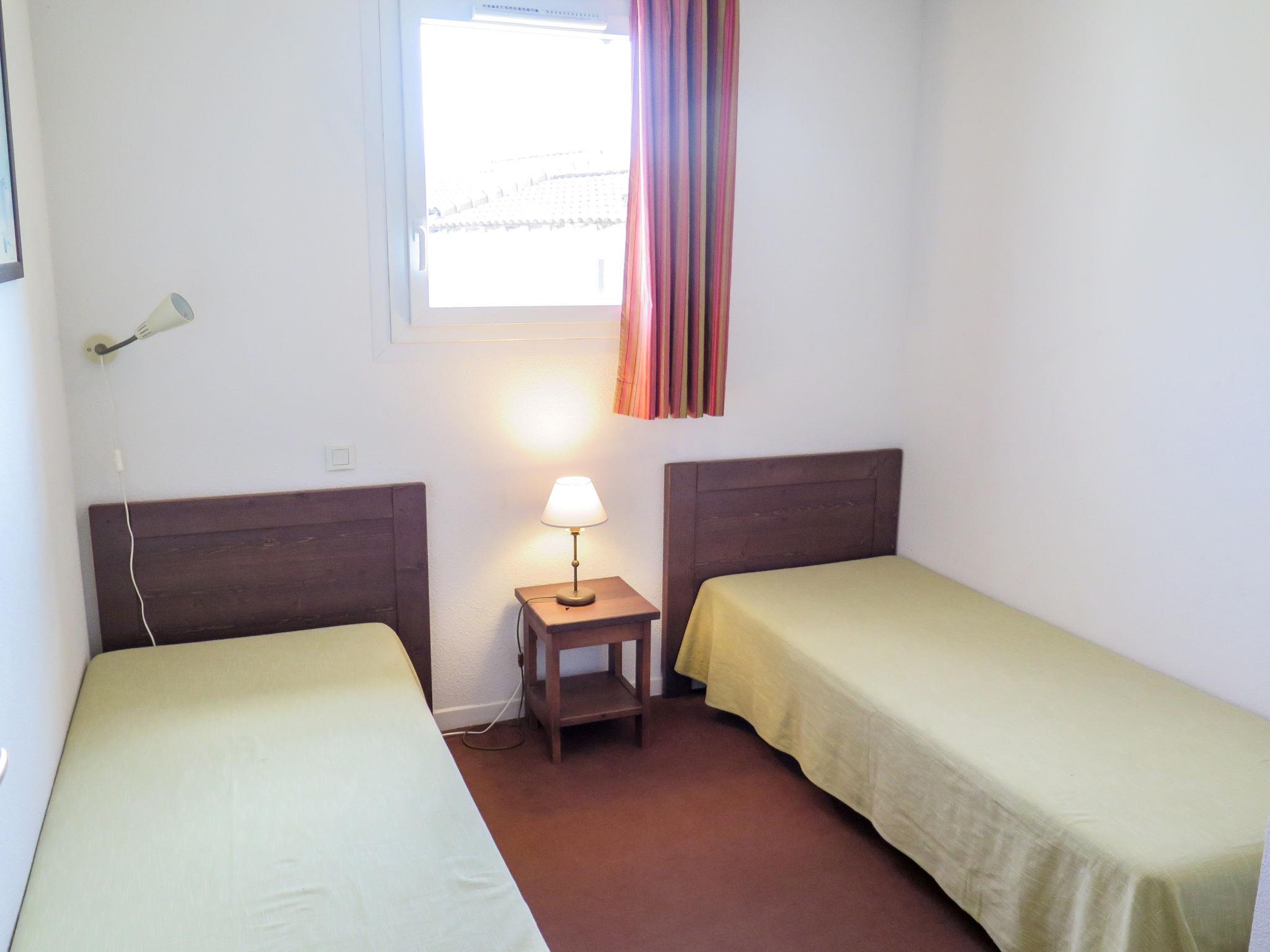 "Domaine des Cazelles", 3-Zimmer-Reihenhaus 45 m2 auf 2 Stockwerken. Zweckmässig eingerichtet: Wohn-/Schlafzimmer mit 1 Ausziehbett (2 Pers. 2 x 90 cm), Esstisch und TV. Ausgang zur Terrasse. Kochnische (4 Kochplatten, Geschirrspüler, Toaster, Wasserkocher, elektrische Kaffeemaschine, Kombinationsmikrowelle). Sep. WC. Obergeschoss: 1 Zimmer mit 1 franz. Bett (Länge 190 cm). 1 Zimmer mit 2 Betten (80 cm, Länge 190 cm). Bad/WC. E-Heizung. Terrasse. Terrassenmöbel. Zur Verfügung: Internet (Wireless LAN, extra). Maximal 2 Haustiere/Hunde erlaubt.