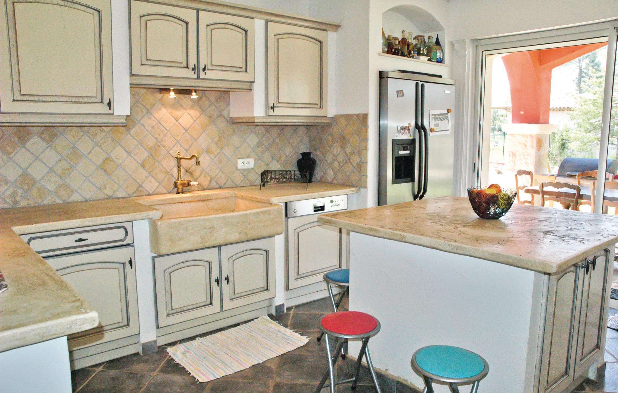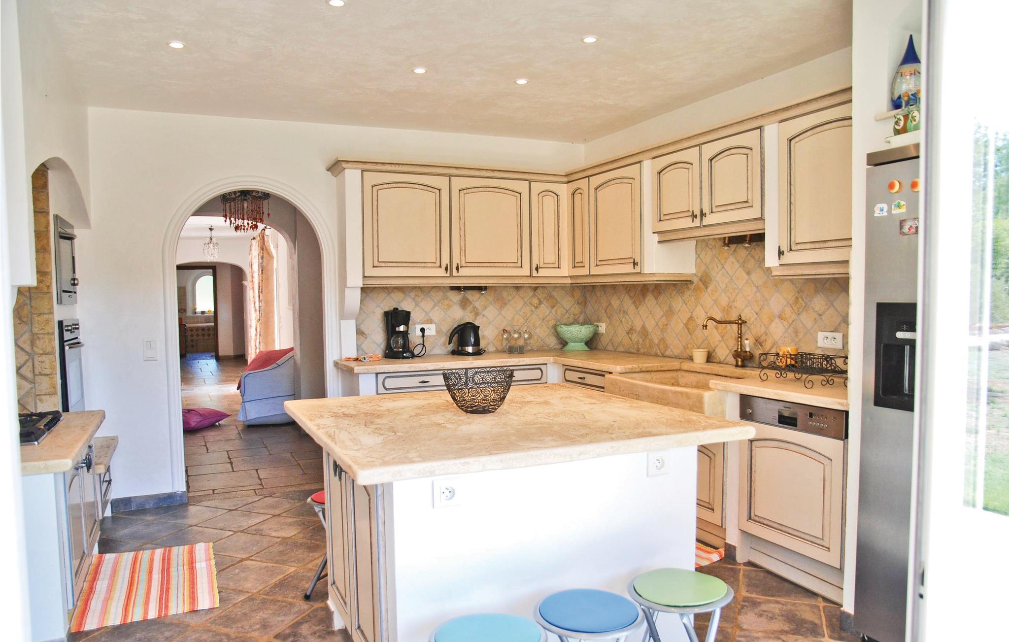 Diese mediterrane Villa in einem warmen Rot und mit vielen Rundbögen, die ihre originale Bauweise unterstreichen, öffnet Ihnen ihre Türen auf einem immensen Grundstück kurz außerhalb eines charmanten Dorfes. Ein imposanter Kamin in einem 80 m² großen Salon sowie eine offene und komplett ausgestattete Küche lassen gemeinsam mit einer teilweise überdachten Terrasse im Stil eines Bodengangs und einem fast überdimensionierten, umzäunten Pool dieses Objekt zu einem Ihrer schönsten Urlaubsziele überhaupt werden. Großflächige Räume mit einer genau ausgesuchten Einrichtung verteilen sich um die römische Treppe, über die Sie in ein kleines Obergeschoss gelangen. Schöne Fliesen schmücken den überwiegenden Teil das Haus, im restlichen Teil wurde ein geschmackvolles Parkett verlegt. Callian liegt nur wenige Kilometer von Fayence entfernt und unweit von Cannes und dem Litoral. Geschützt durch ein eletronisches Tor liegt das Haus in ländlicher Umgebung gut 2 km außerhalb des Dorfes.