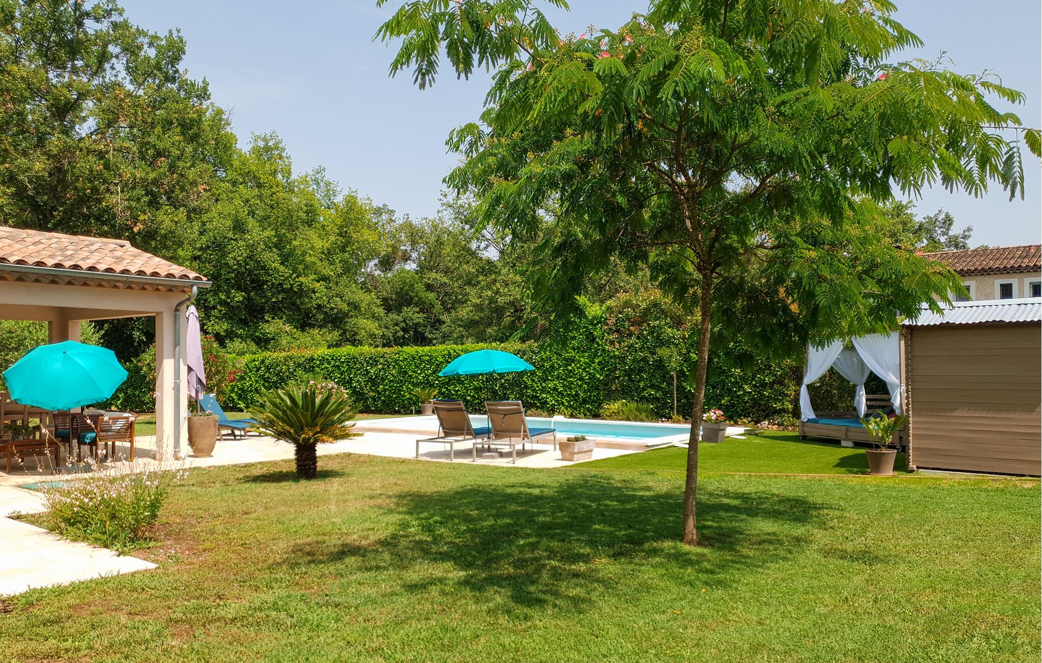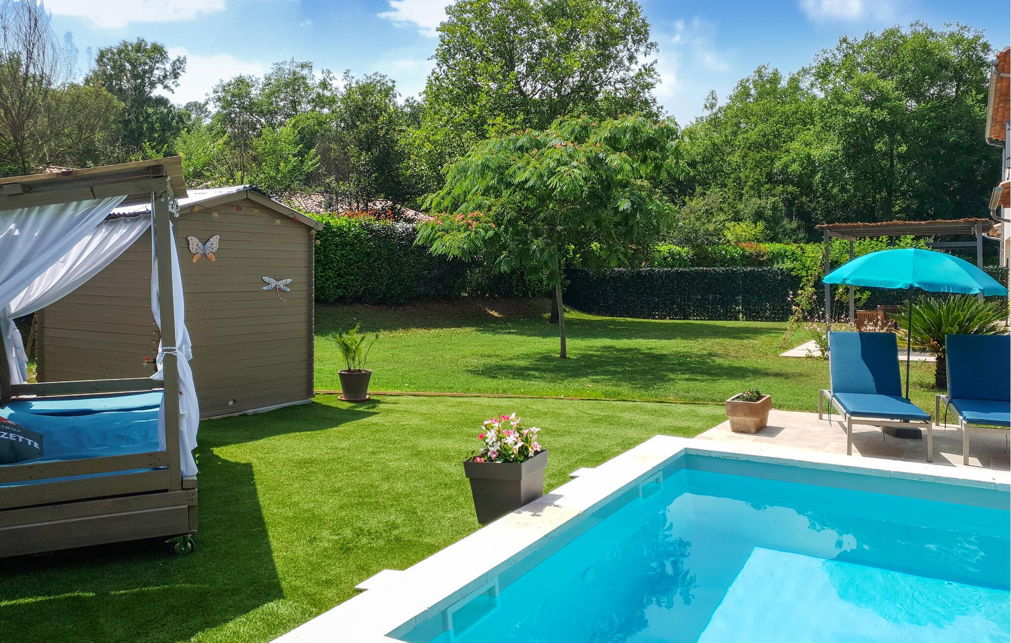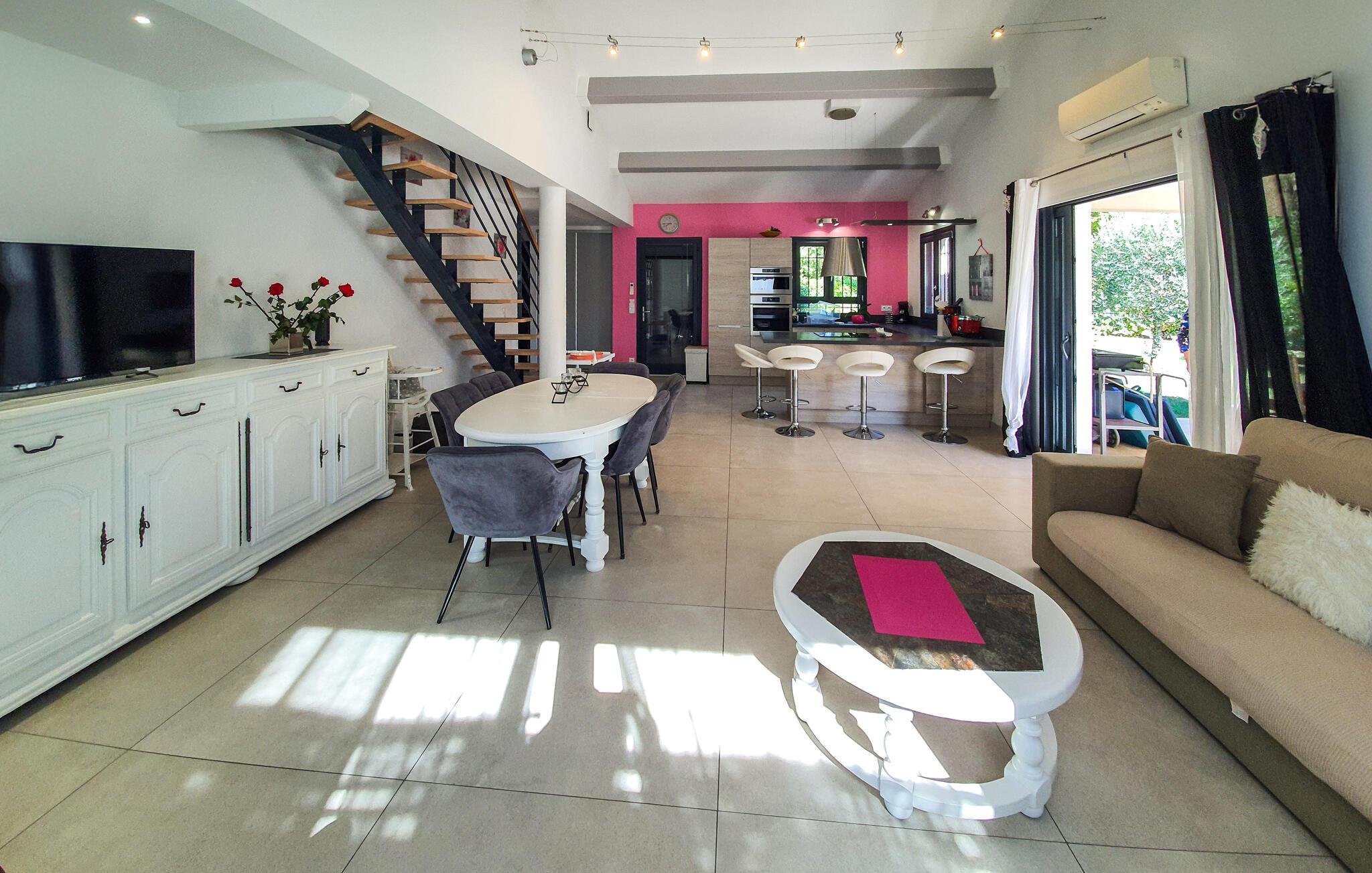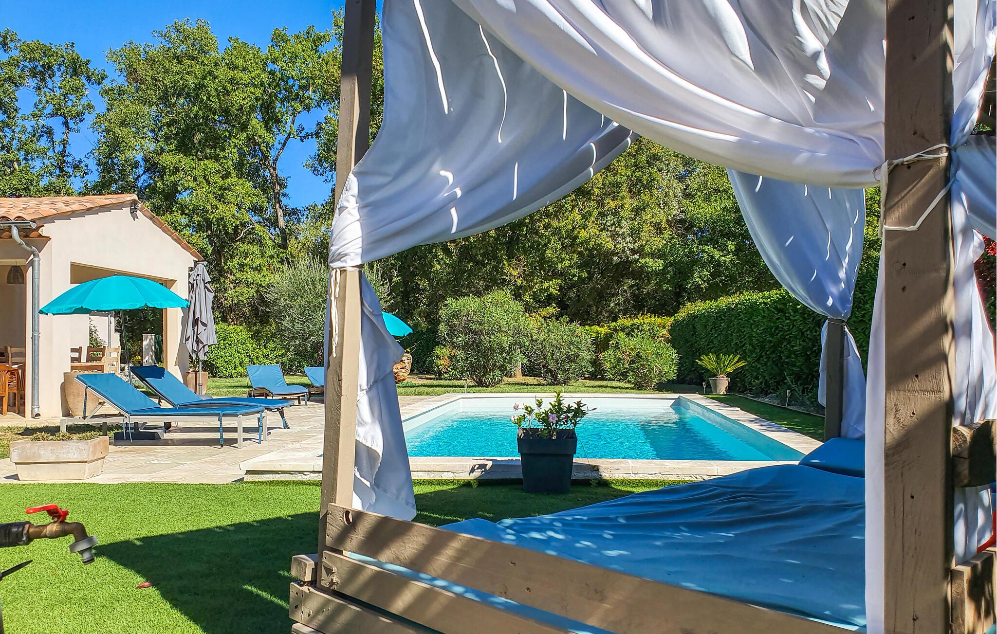 Wunderschönes Ferienhaus mit Privatpool. Das Haus befindet sich in Callian und somit nur 33 km von Cannes und seinen paradiesischen Stränden. Es ist modern und durch den sehr großzügigen Schnitt bestens geeignet für die mehrköpfige Familie oder den Urlaub mit mehreren Freunden. Wer einen ruhigen Ausgangspunkt für den Urlaub sucht, ist hier genau richtig. Kühlen Sie sich im Pool ab und relaxen Sie im Garten oder auf der Terrasse. Ihnen steht natürlich ein Grill zur Verfügung, und Ihr Vierbeiner wird sich in dem weitläufigen Außenbereich sicherlich wohlfühlen. Callian mit seinen sonnenverwöhnten Gassen ist ein schönes Ausflugsziel in der näheren Umgebung. Erleben Sie die Schluchten der Haute Siagne und besuchen Sie Fayence mit seinem sarazenischen Tor und einem herrlichen Talpanorama. Am Lac de Saint-Cassien erwartet Sie ein tolles Angebot an Wassersportaktivitäten, und der See ist gleichzeitig ein schöner Ort zum Picknicken. Neben seinen Stränden lockt Cannes auch mit dem renommierten Boulevard de la Croisette und einem alten Stadtkern, Le Suquet. Auch Saint-Raphaël wartet mit wunderschönen Sandstränden auf und ist zu jeder Jahreszeit ein lebhaftes Ausflugsziel. Buchen Sie schnell dieses herrliche Ferienobjekt mit Privatpool und freuen Sie sich auf einen unvergesslichen Urlaub im Var.