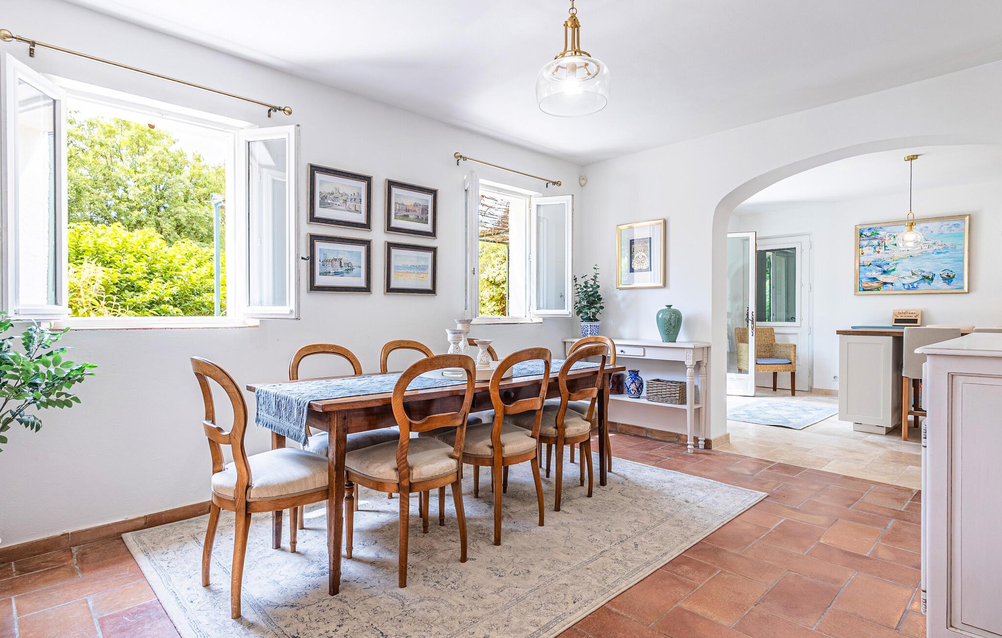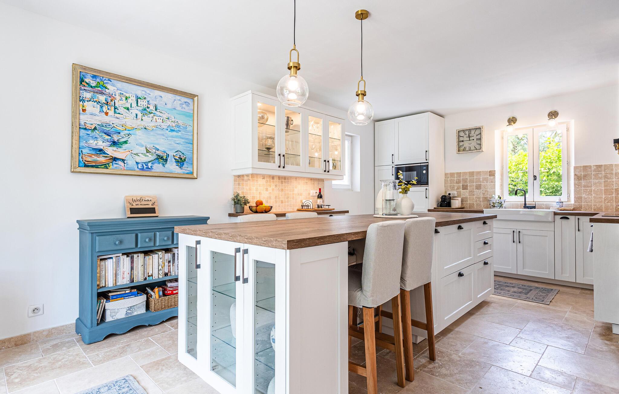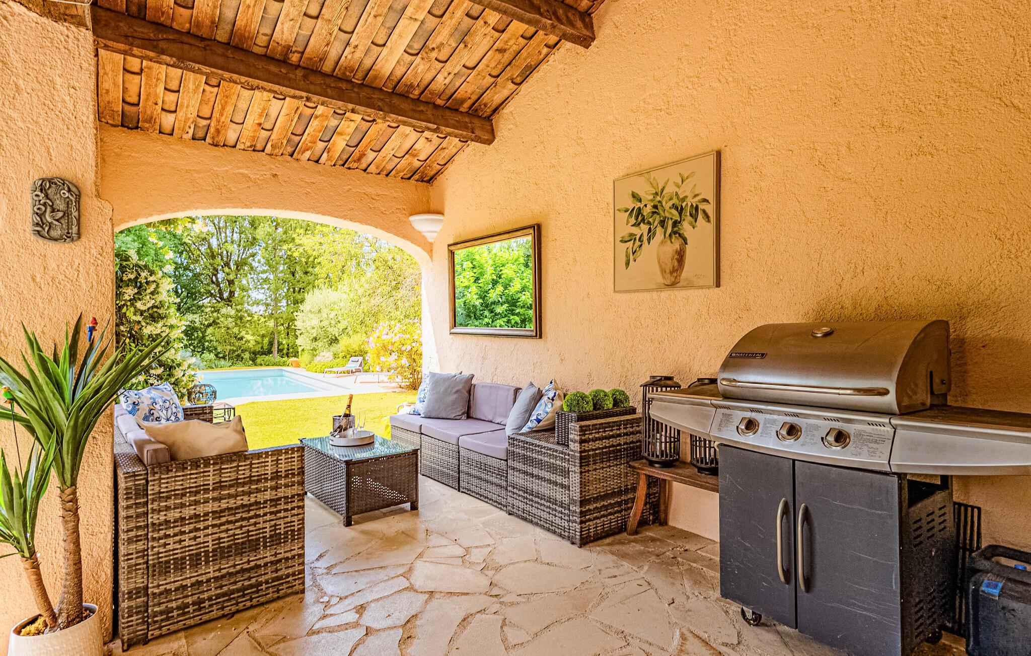 Verbringen Sie einen Urlaub in schöner Umgebung in diesem einladenden Ferienhaus mit Pool.