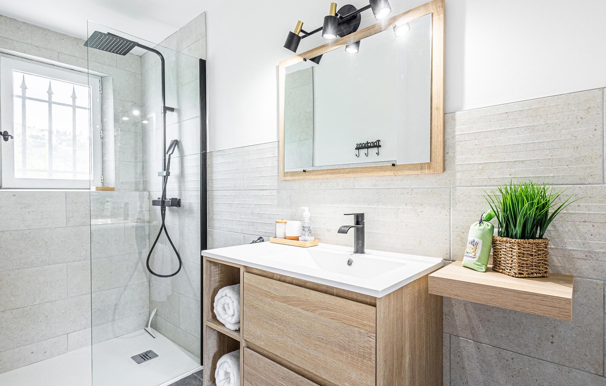 - WC mit warmem und kaltem Wasser, Dusche und Badewanne