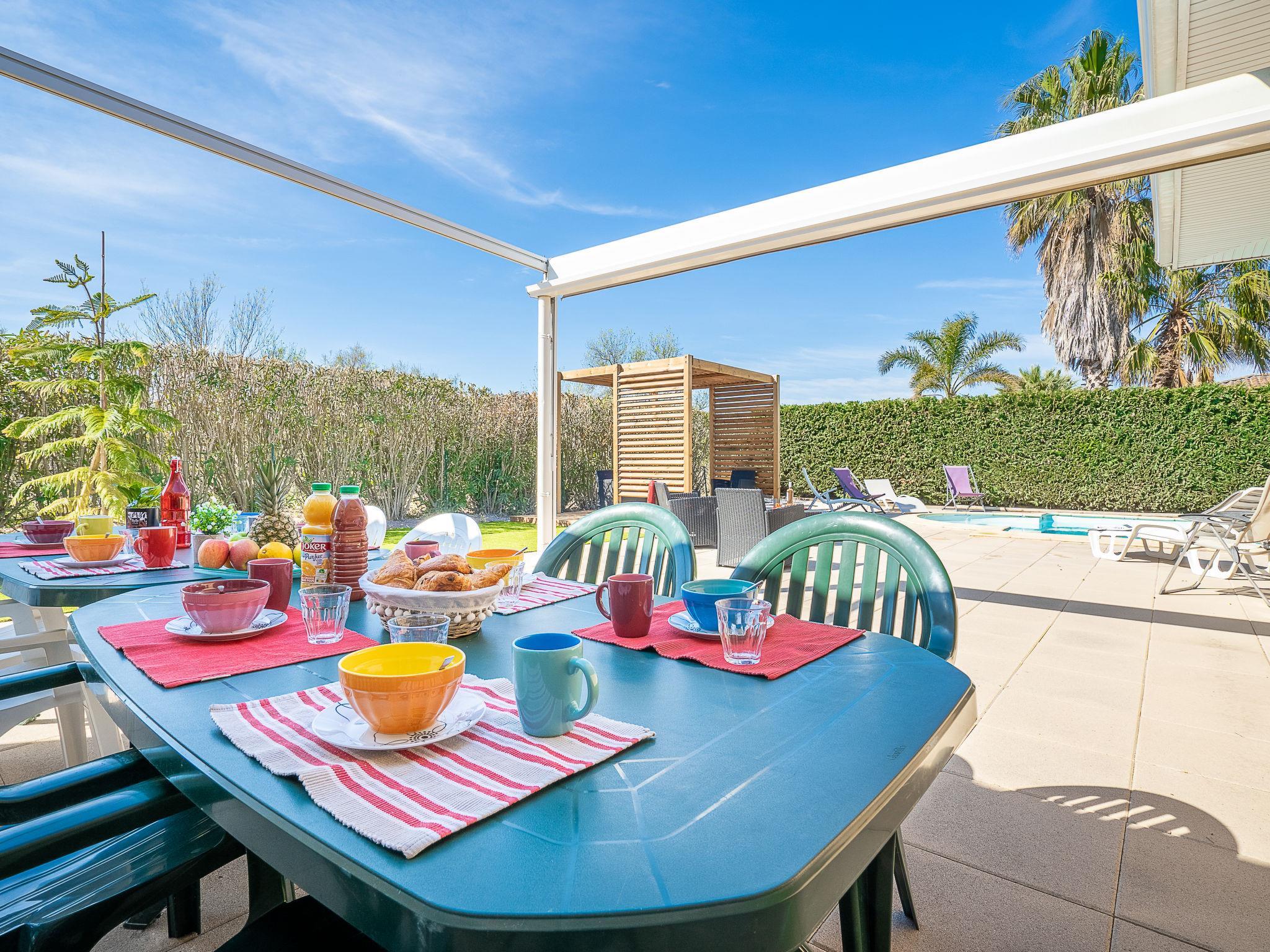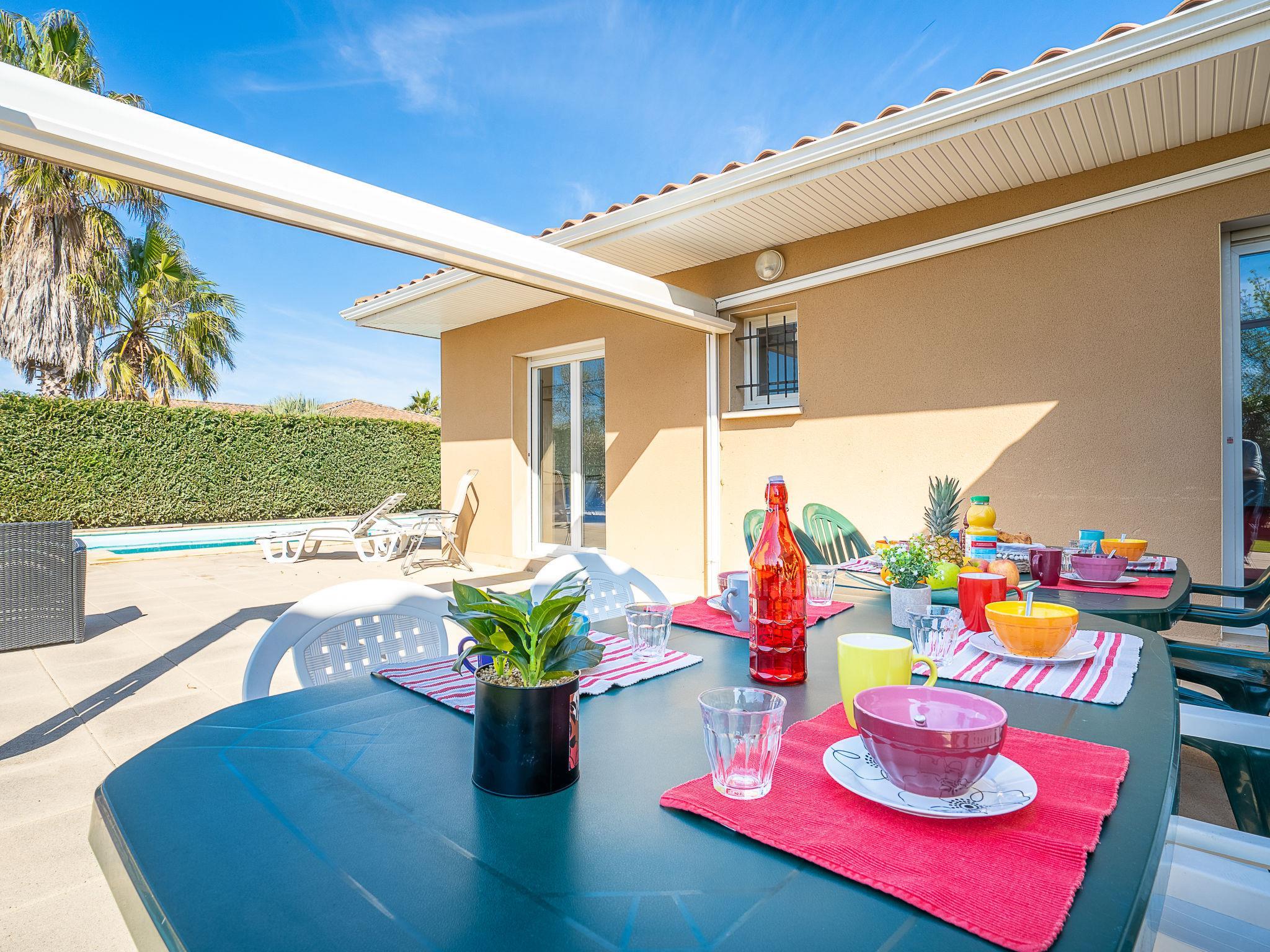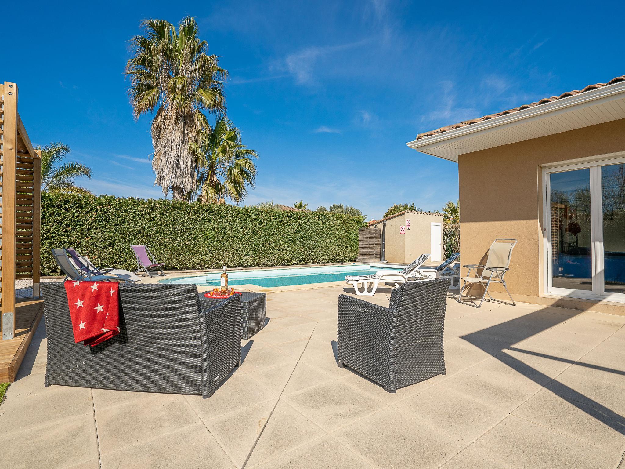 Canet en Roussillon: Schöne Villa "Les Villas de l'Etang", Baujahr 2006. Im Ortsteil les Hauts de Canet, am Ortsrand, 4 km vom Meer, 4 km vom Strand, in einer Sackgasse. Zur Alleinbenutzung: Garten 500 m2 (eingezäunt) Pflanzen, Schwimmbad eckig, beheizt, nicht einsehbar (9 x 4 m, 160 cm tief, saisonale Verfügbarkeit: 01.Jun. - 30.Sep.) mit Innentreppe und Rollladenabdeckung. Aussendusche. Im Hause: Klimaanlage, Alarmanlage. Einkaufsgeschäft, Lebensmittelgeschäft 850 m, Supermarkt 2 km, Einkaufszentrum 6 km, Restaurant, Bäckerei 850 m, Bushaltestelle 150 m, Bahnstation "Perpignan" 12 km, Sandstrand 4 km, Park "Aqualand St Cyprien" 10 km, Tauchzentrum 18 km, Freibad 1 km, Hallenbad 1 km, See Etang de Canet 2 km. Sporthafen 3 km, Golfplatz (18 Loch) 8 km, Segelschule 3 km, Minigolf 5 km. Nahe gelegene Sehenswürdigkeiten: Perpignan 12 km, Collioure 25 km, Banyuls 37 km, Espagne 35 km, Andorre 180 km, Barcelone 200 km. Bekannte Seen in der Umgebung sind gut erreichbar: Lac de Villeneuve de la Raho 19 km, lac de St Jean Pla de Corts 39 km, Gorges du Gouleyrous 42 km. Wandergebiete: Abbaye de St Martin du Canigou 70 km, Pic du Canigou 77 km, Lac des Bouillouses 105 km.