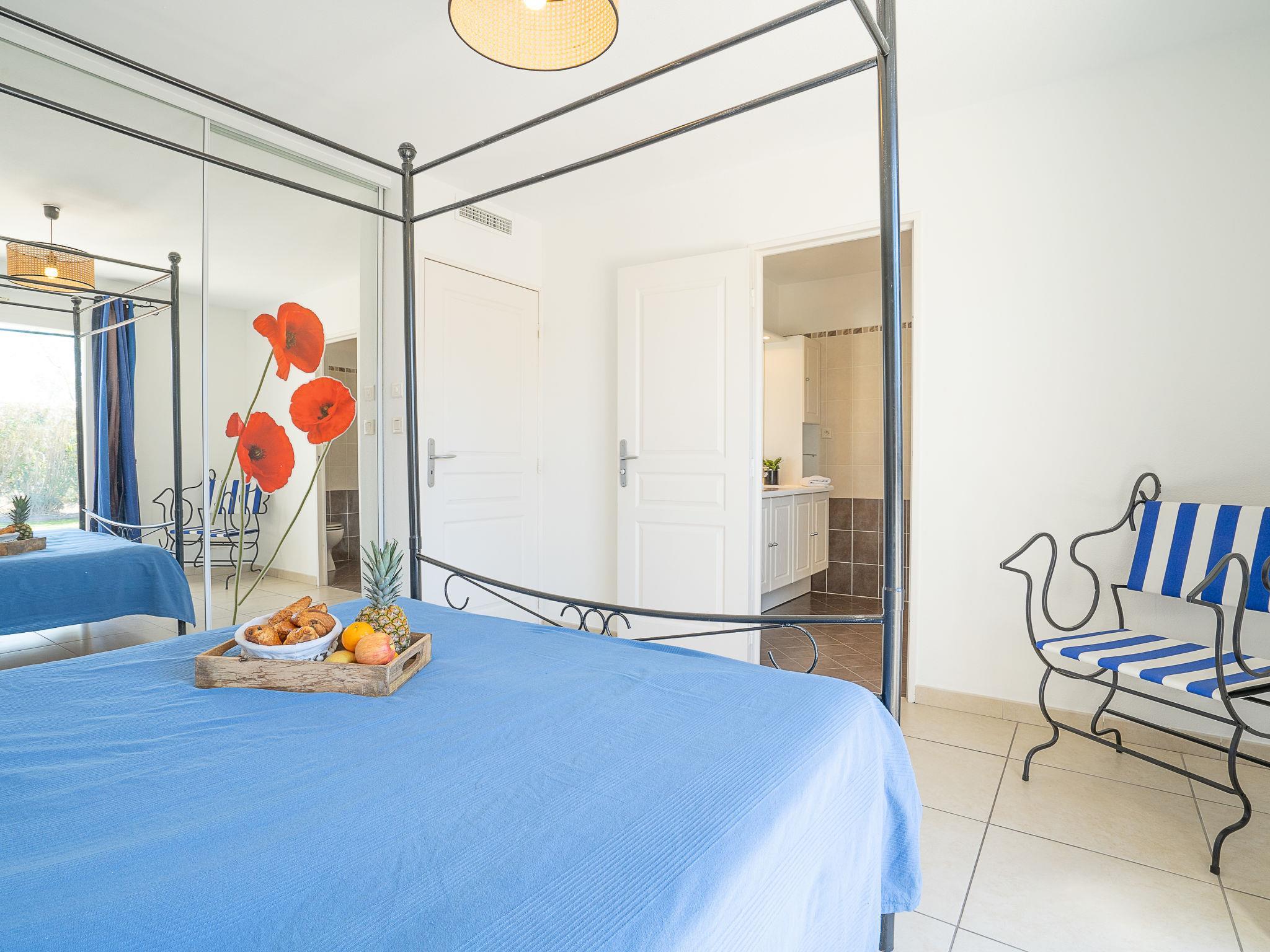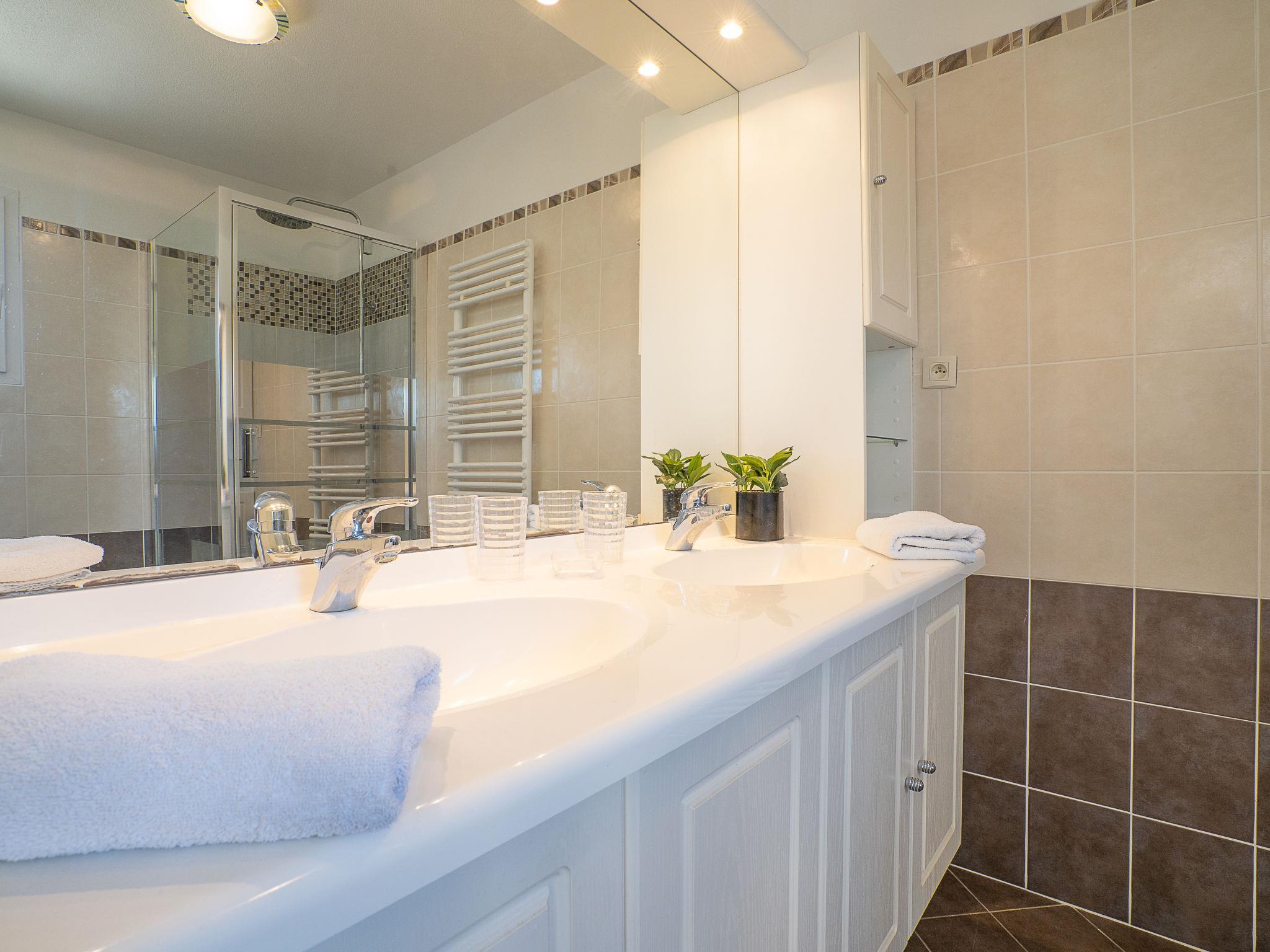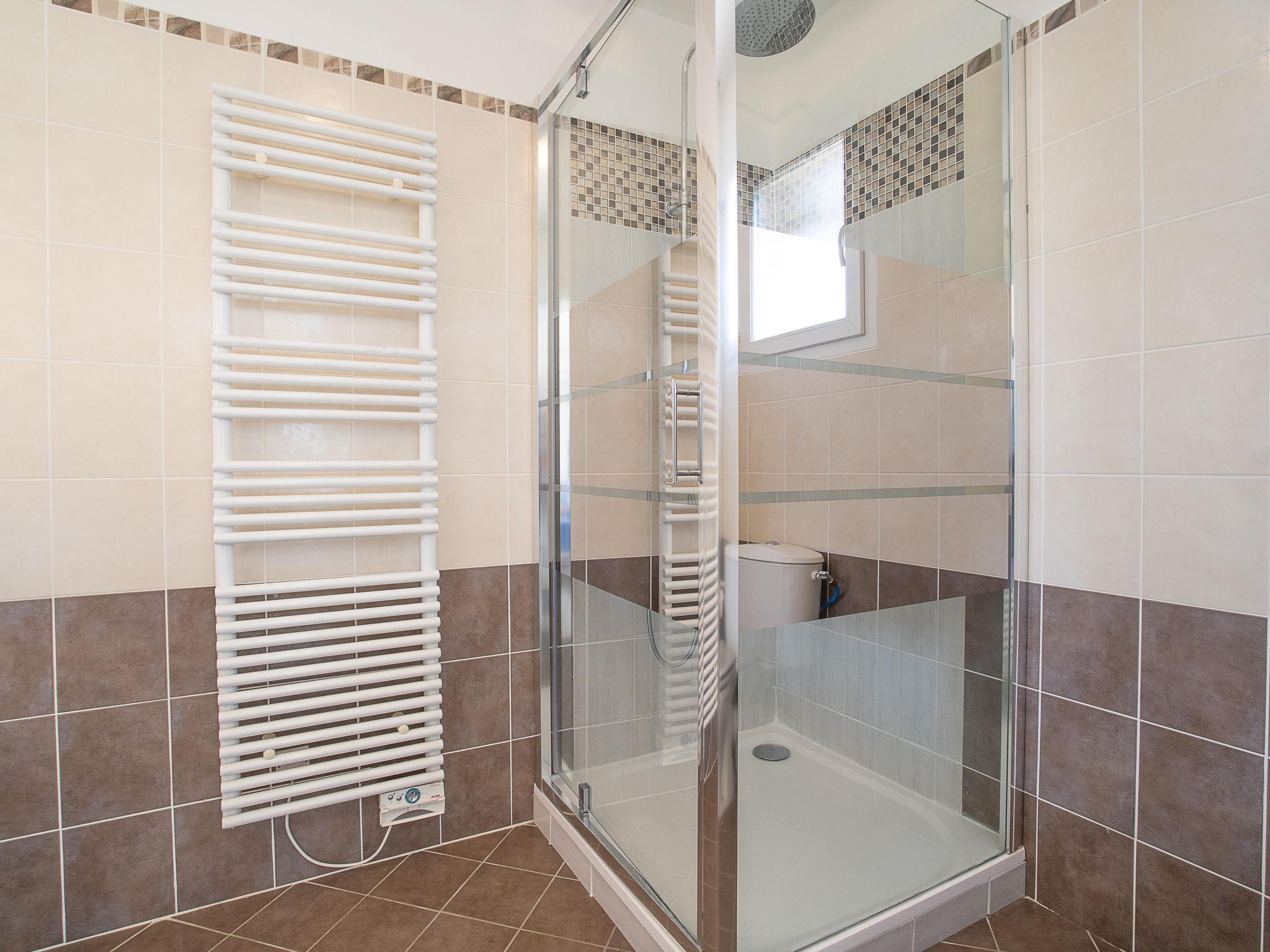 5-Zimmer-Villa 140 m2. Komfortabel eingerichtet: Wohn-/Esszimmer mit TV, Sat-TV und Internationale TV-Sender (Flachbildschirm), Radio und DVD. Ausgang zum Garten, zur Terrasse. 1 Zimmer mit 1 franz. Bett (160 cm, Länge 200 cm), Dusche/WC. Ausgang zum Garten. 1 Zimmer mit 1 franz. Bett (160 cm, Länge 200 cm). Ausgang zum Garten. 1 Zimmer mit 1 franz. Bett (160 cm, Länge 200 cm). 1 Zimmer mit 2 Betten (90 cm, Länge 190 cm). Offene Küche (4 Kochplatten, Backofen, Geschirrspüler, Toaster, Wasserkocher, Mikrowelle, Tiefkühler, elektrische Kaffeemaschine, Kapseln für die Kaffeemaschine (Nespresso)) mit Bar. Bad/WC, sep. WC. Klimaanlage, Warmluftheizung. Terrasse 47 m2, Südlage. Terrassenmöbel, Liegestühle. Zur Verfügung: Waschmaschine, Bügeleisen. Internet (Wireless LAN, gratis). Parkplatz (1 Auto), Garage (1 Auto). Bitte beachten: Rauchmelder.
