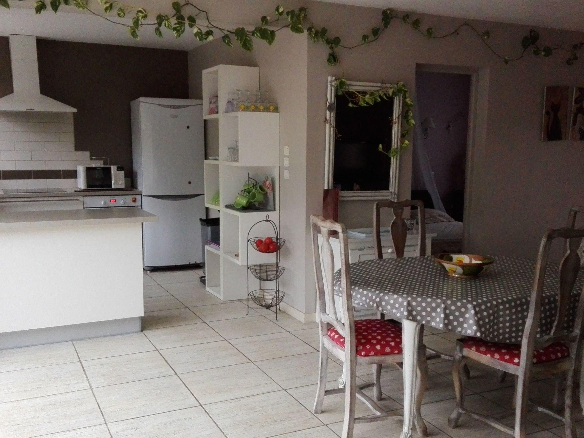 Das ca. 70 m² große Reihenhaus mit Erdgeschoss und einer Etage kann 4 Erwachsene und 1 Kind aufnehmen. Im Erdgeschoss gelangt man in das geräumige Wohnzimmer mit angrenzender, offener Küche. Im Wohnbereich kann man es sich auf dem Sofa vor dem Flachbildfernseher mit Kabel-TV gemütlich machen. Für die angenehme Raumtemperatur sorgen der Kaminofen in der kälteren Jahreszeit und eine Klimaanlage und ein Ventilator im Sommer. Der Esstisch steht genau vor der schönen großen und sonnendurchfluteten Fensterfront mit Blick auf den Garten. Die in angenehmem Weiß gehaltene, moderne Küche ist voll ausgestattet mit Induktionsherd, Backofen, Kühlschrank-Gefrierschrank-Kombination, Mikrowelle, Spülmaschine, Kaffeemaschine, Toaster und Wasserkocher. Vom Wohnzimmer aus gelangt man in das Schlafzimmer mit Doppelbett (180 x 200 cm). Auch das große Badezimmer mit ebenerdiger Dusche liegt im Erdgeschoss. Im ersten Stock befindet sich ein zweites Schlafzimmer mit Doppelbett (140 x 200 cm). Es sind ein Babybett sowie ein Zustellbett für größere Kinder verfügbar. Waschmaschine und schnurloses Internet sind ebenfalls vorhanden. Ein Hund kann, wenn in Buchung angegeben, mitgenommen werden.