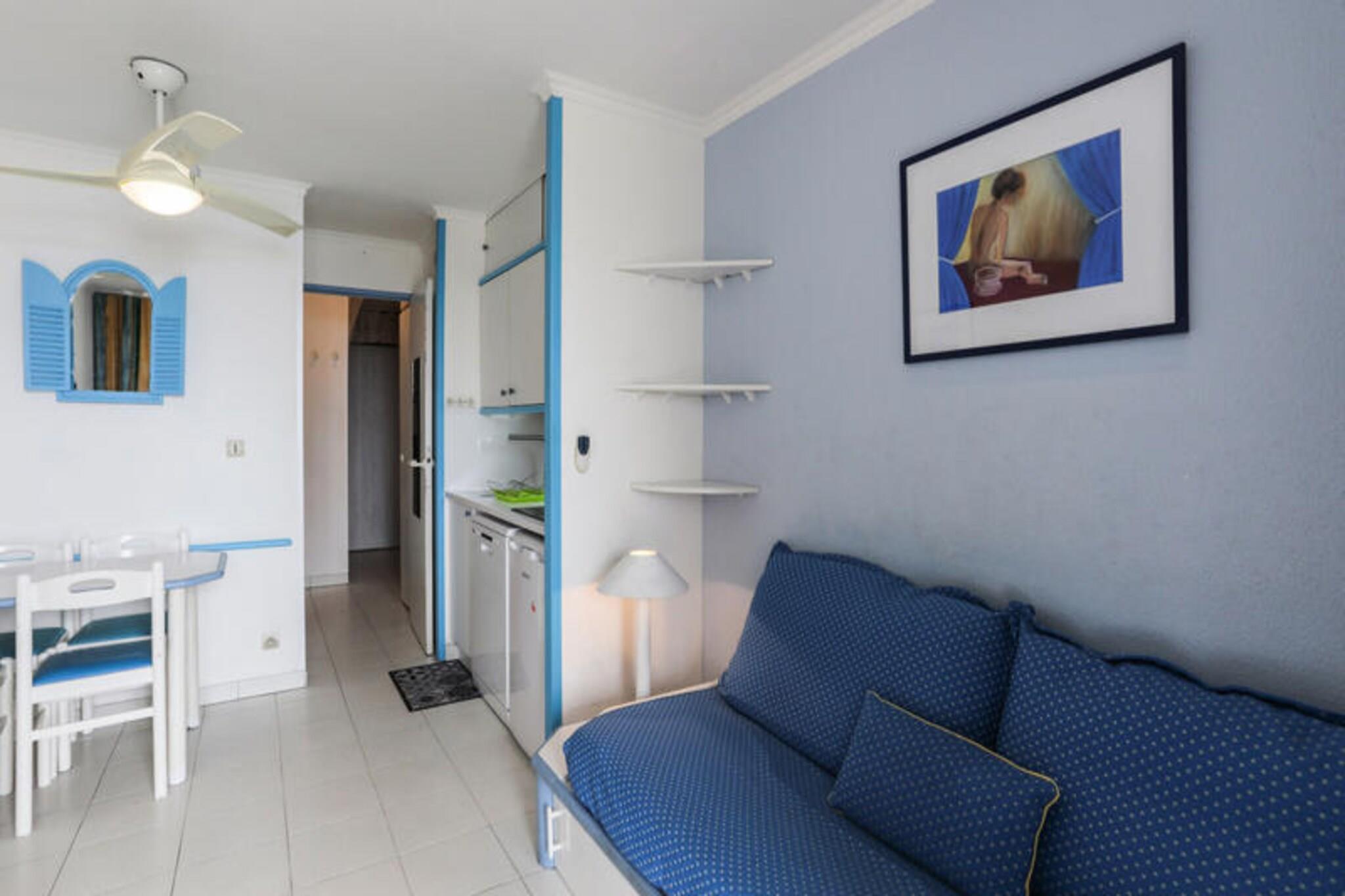 Das Anwesen bietet neben einer idealen Lage im Herzen des Viertels La Bocca einen einfachen Zugang zur Mittelmeerküste, die über einen Fußgängertunnel nur 100 Meter vom Strand entfernt liegt. Diese erstklassige Lage gewährleistet eine nahtlose Verbindung sowohl zum Strand als auch zu den umliegenden Geschäften. Die Residenz verfügt über einen geräumigen Wohnbereich mit bequemen Sitzgelegenheiten, ideal zum Entspannen nach einem Tag voller Besichtigungen. Die Küche ist komplett mit allen notwendigen Geräten ausgestattet und bietet Komfort für diejenigen, die während ihres Aufenthalts lieber kochen möchten. Für zusätzlichen Komfort verfügt das Anwesen über einen gut ausgestatteten Kabinenbereich mit einem Doppelbett, ideal für eine erholsame Nacht. Das Badezimmer ist funktional, mit Badewanne und Dusche ausgestattet und bietet alle notwendigen Annehmlichkeiten für einen komfortablen Aufenthalt. Der Balkon lädt mit einem Tisch, Stühlen und einem Liegestuhl zum Entspannen ein und bietet gleichzeitig eine malerische Aussicht auf die Umgebung. Die Residenz verfügt außerdem über einen großen Außenpool, der von Terrassen und Palmen umgeben ist und dafür sorgt, dass die Gäste das mediterrane Wetter genießen können. Die Unterkunft verfügt über eine Tiefgarage, die im Voraus reserviert werden kann und so einen einfachen Zugang zu lokalen Sehenswürdigkeiten ermöglicht. Darüber hinaus bietet die Residenz saisonale Unterhaltung und eine Reihe anderer Dienstleistungen, um das Gästeerlebnis zu verbessern. In günstiger Lage in der Nähe wichtiger Annehmlichkeiten und des Strandes bietet dieses Anwesen alles, was Sie für einen erholsamen und angenehmen Aufenthalt benötigen.