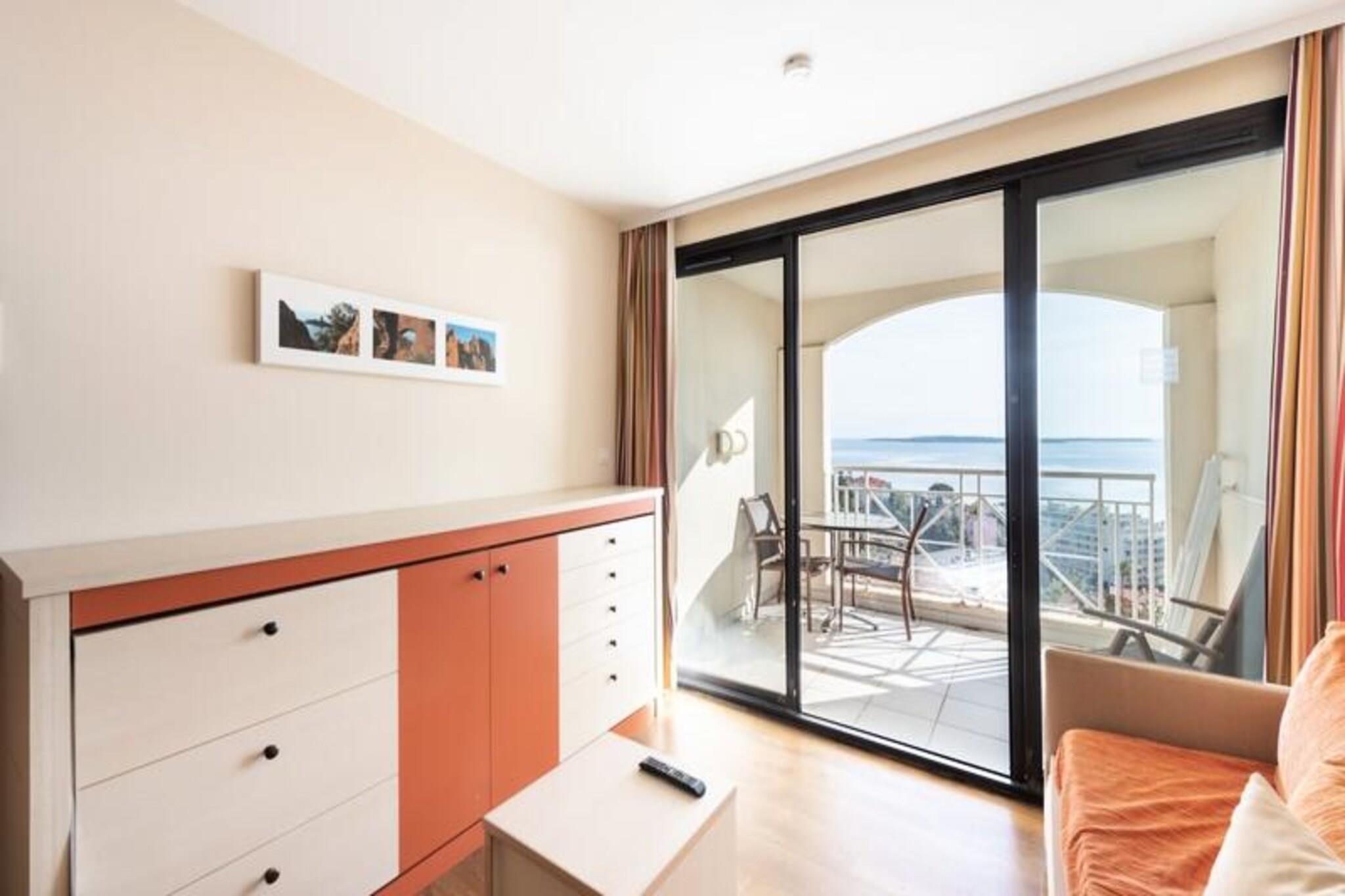 Im Stadtteil Cannes La Bocca gelegen, nur 2 km vom Zentrum und der Croisette entfernt, bietet diese Residenz eine charmante Umgebung, ideal für Familien. Eingebettet in einen 5 Hektar großen exotischen Park mit Palmen und jahrhundertealten Bäumen bietet die Residenz eine grüne Oase mit Panoramablick auf das Meer von der Poolterrasse aus. Sie können den schönen Infinity-Pool genießen, der vom 15. April 2024 bis zum 4. November 2024 geöffnet ist, und den nur 800 Meter entfernten Strand. Zu den Unterhaltungs- und Freizeitmöglichkeiten gehören Tischtennis innerhalb der Residenz, ein Tennisplatz neben dem Picasso-Gebäude und ein Kinderspielplatz. Der 18-Loch-Golfplatz und Wasserski stehen 20 Minuten bzw. 800 Meter von der Residenz entfernt zur Verfügung, beide gegen Aufpreis. Zu den nahegelegenen Sehenswürdigkeiten zählen die glamouröse Croisette, die für ihre Luxusgeschäfte, Restaurants und das Palais des Festivals bekannt ist. Die Altstadt von Le Suquet bietet malerische Straßen und atemberaubende Ausblicke, während der Marché Forville frische Produkte und lokale Köstlichkeiten bietet. Für Sportbegeisterte gibt es Möglichkeiten zum Wandern, Radfahren und Erkunden der wunderschönen Landschaften der französischen Riviera. Die Ferienwohnung umfasst ein Wohnzimmer mit Schlafsofa, eine Küche, ein Schlafzimmer mit Doppelbett, ein Badezimmer mit Badewanne, ein separates WC, eine Terrasse und einen Parkplatz. Die Wohnung befindet sich im 1. Stock des Delacroix-Gebäudes und erstreckt sich über eine Fläche von 30 m². Zusätzliche Dienstleistungen wie WLAN, Baby-Sets und Wäscheverleih sind gegen Aufpreis verfügbar.