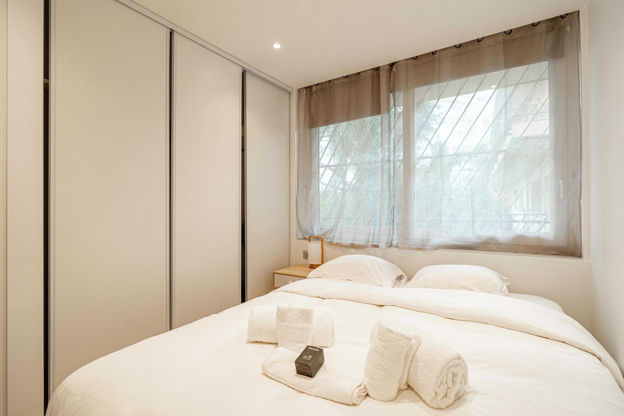 Checkmyguest bietet dieses helle, neu renovierte 30 m² große Apartment für vier Personen an. Es liegt ideal in der Nähe einer der berühmtesten Straßen von Cannes: La Croisette. Es verfügt über Klimaanlage, Privatparkplatz und eine möblierte Terrasse. Ein angenehmer Aufenthalt ist garantiert! Die Lage des Apartments ermöglicht einfaches und schnelles Reisen: - MIT DEM FLUGZEUG: Flughafen Nizza Côte d'Azur (25 km) - MIT DEM FLUGZEUG: Flughafen Cannes-Mandelieu (8 km) - MIT DEM ZUG: Bahnhof Cannes (2 km) - MIT DEM AUTO: Autobahn A8 - MIT DEM AUTO: Nationalstraße 85
