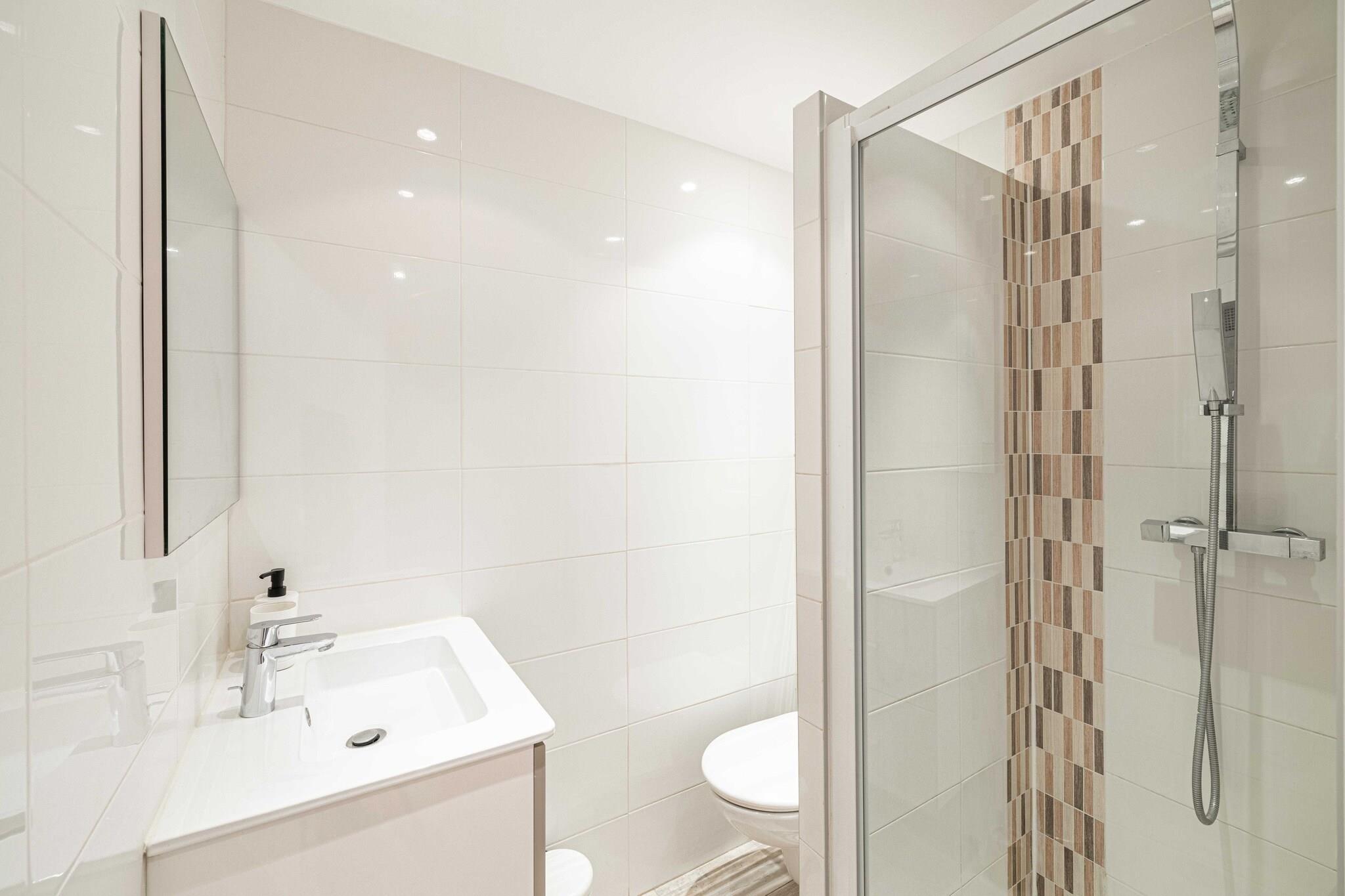 In der 1. Etage: (Wohnzimmer(Doppelschlafcouch, TV, Klimaanlage), offene Küche(Wasserkocher, Toaster, Dunstabzugshaube, Kaffeemaschine, Backofen, Mikrowelle, Spülmaschine, elektrische Kochplatten, , ), Schlafzimmer(, , Doppelbett, ), Badezimmer(, Dusche, Waschbecken, Toilette, Föhn, )) , Erste-Hilfe-Station, Strand, Spielplatz, Babybett, Balkon oder Terrasse, Heizung, Bügeleisen, Handtücher/Bettwäsche (inklusive), , Carbon monoxide detector, Cleaning Disinfection, Downtown, Enhanced cleaning practices, Extra pillows and blankets, High touch surfaces disinfected, Long term stays allowed, Room-darkening shades, Village