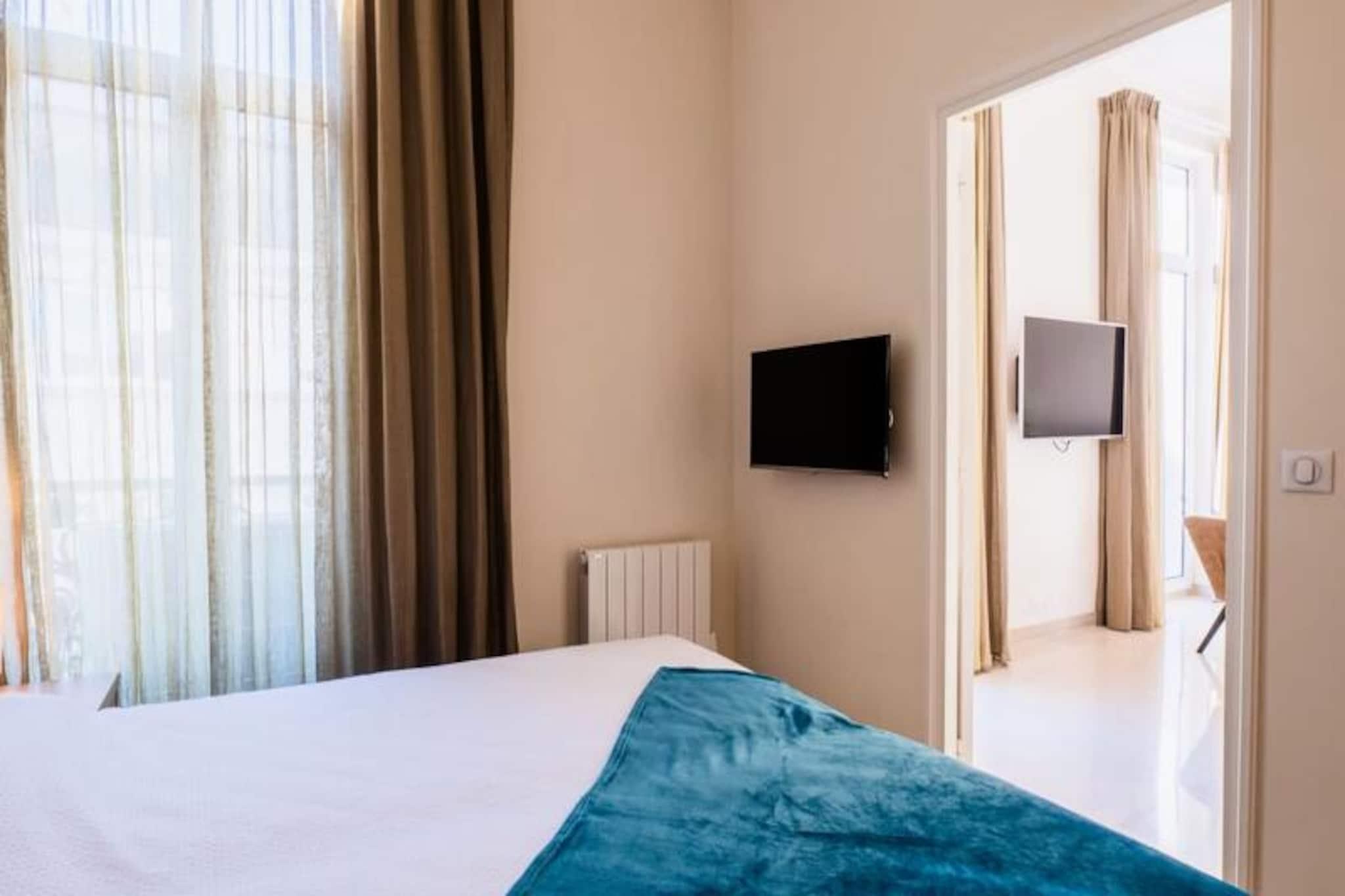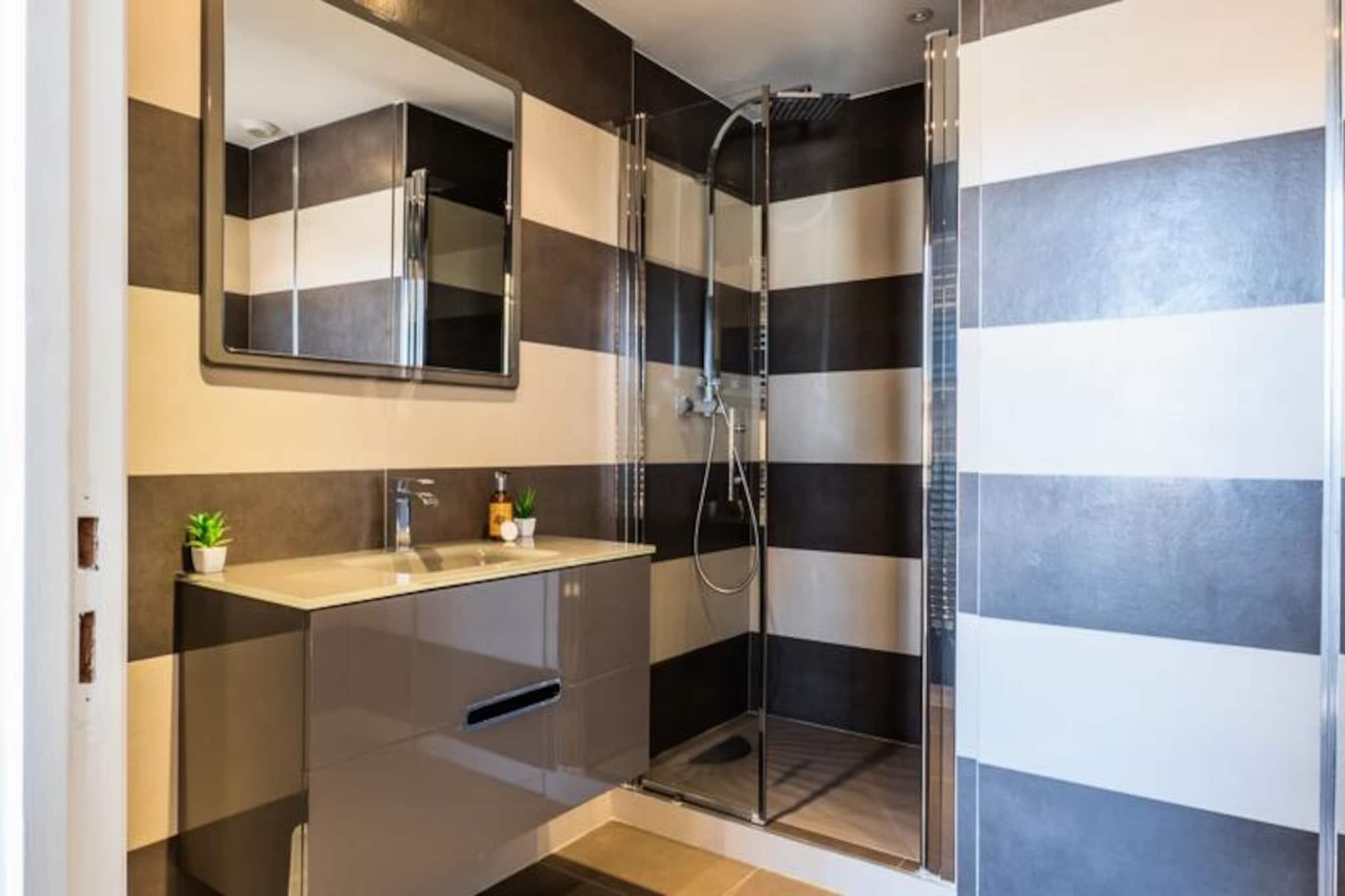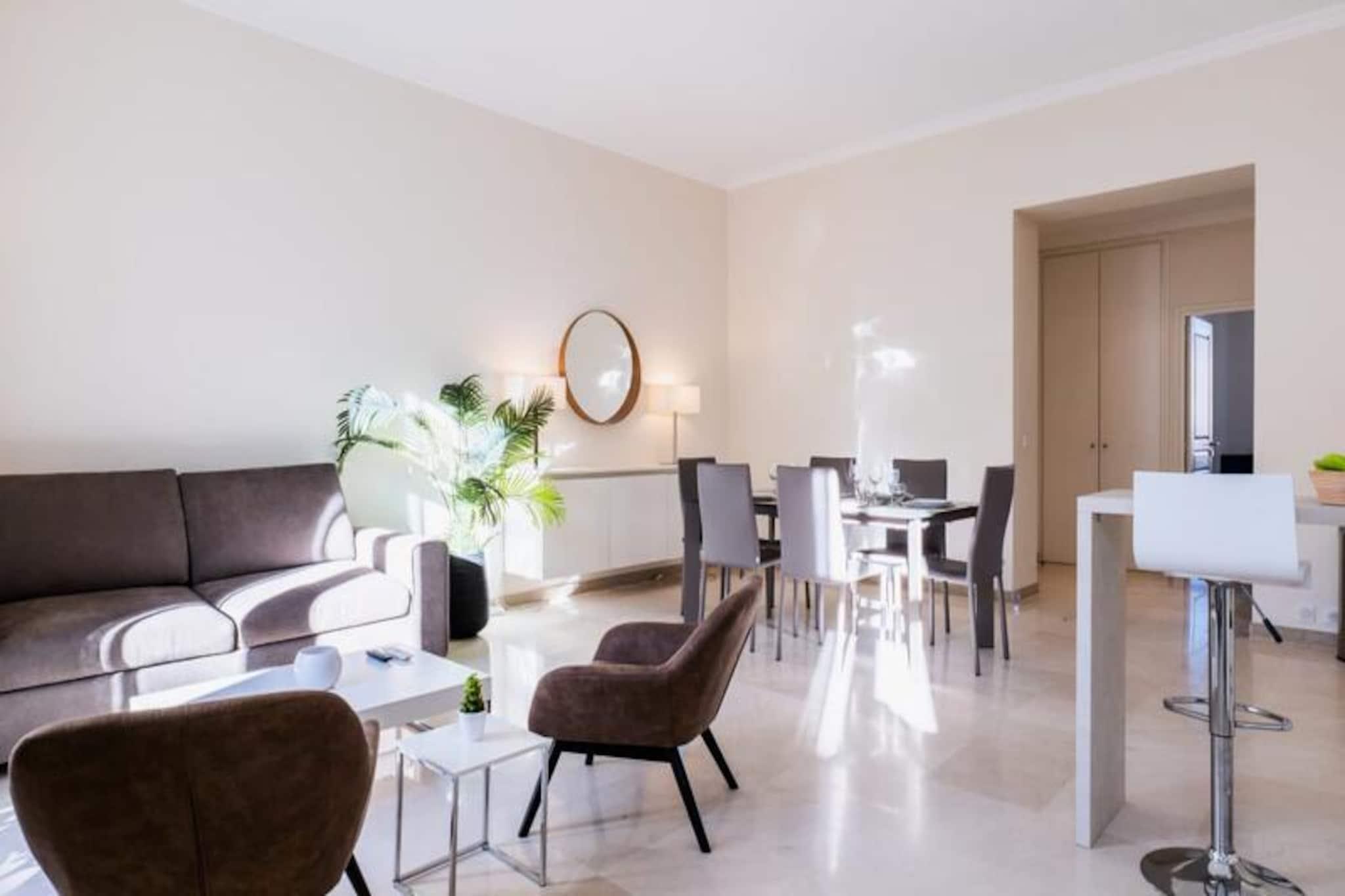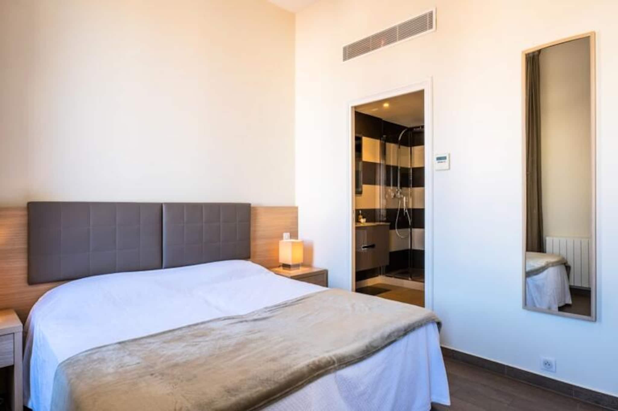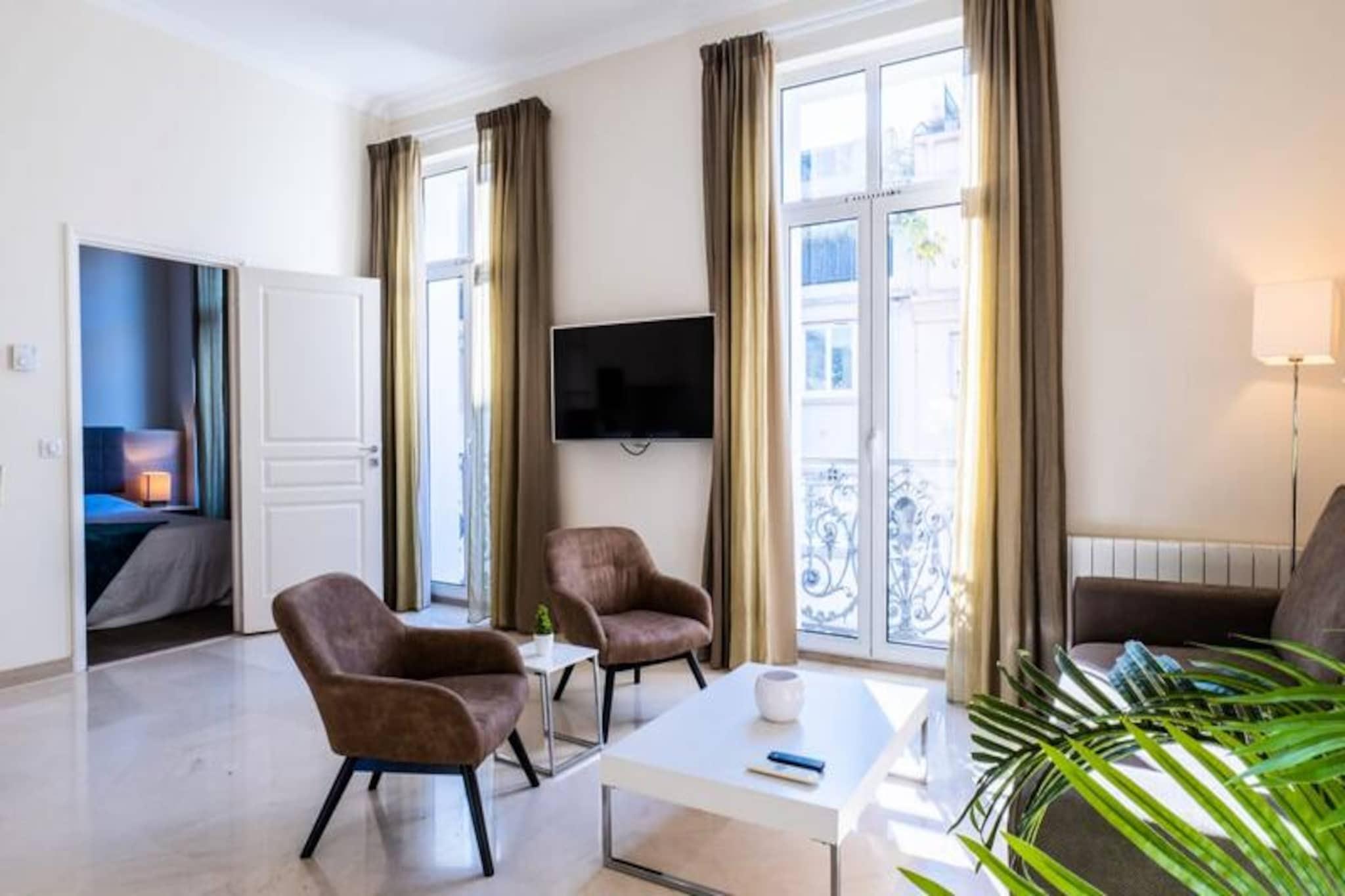 Tauchen Sie ein in die pulsierende Energie von Cannes und wohnen Sie in diesem eleganten 80 m² großen Apartment in perfekter Lage an einer der bekanntesten Straßen der Stadt. Nur wenige Schritte von der weltberühmten Croisette, dem Palais des Festivals und unzähligen schicken Bars und Restaurants entfernt, bietet diese Unterkunft eine unschlagbare Lage für alle, die das ultimative Côte d'Azur-Erlebnis suchen. Ob Sie den Glamour des Filmfestivals genießen oder einfach nur einen entspannten Urlaub am Meer verbringen möchten – dieses Apartment bringt Sie mitten ins Geschehen. Im Inneren erwartet Sie ein geräumiger und stilvoll gestalteter Wohnbereich mit einem bequemen Sofa, einem Sessel und einem Esstisch für sechs Personen. Die offene Küche ist mit allem Notwendigen zur Zubereitung von Mahlzeiten ausgestattet, allerdings gibt es keinen Backofen. Zwei Schlafzimmer mit eigenem Bad bieten ruhige Rückzugsorte und verfügen jeweils über Kingsize-Betten, ausreichend Stauraum im Kleiderschrank und moderne Duschbäder. Eine Klimaanlage sorgt ganzjährig für angenehme Temperaturen, während doppelt verglaste Fenster trotz der lebhaften Umgebung für ruhige Nächte garantieren. Zwei kleine Balkone am Wohnzimmer laden dazu ein, die lebhafte Atmosphäre der Rue d'Antibes bei einem Morgenkaffee oder einem abendlichen Aperitif zu genießen. Nur wenige Minuten entfernt befinden sich die Top-Attraktionen von Cannes. Schlendern Sie die Croisette entlang, erkunden Sie das charmante Viertel Suquet oder gönnen Sie sich ein exklusives Shopping-Erlebnis auf der Rue d'Antibes. Der Bahnhof von Cannes ist nur 5 Gehminuten entfernt und bietet bequemen Zugang zu weiteren Highlights der Region, von Nizza bis Monaco. Für Autofahrer stehen gebührenpflichtige Parkplätze an der Straße und eine nahegelegene Garage zur Verfügung. Mit seiner erstklassigen Lage, modernen Ausstattung und durchdachten Details wie Bettwäsche und Concierge-Service ist dieses Apartment der perfekte Ausgangspunkt, um den Zauber von Cannes zu entdecken. Ob Sie geschäftlich oder privat reisen – diese Unterkunft verspricht einen unvergesslichen Aufenthalt an der Côte d'Azur.