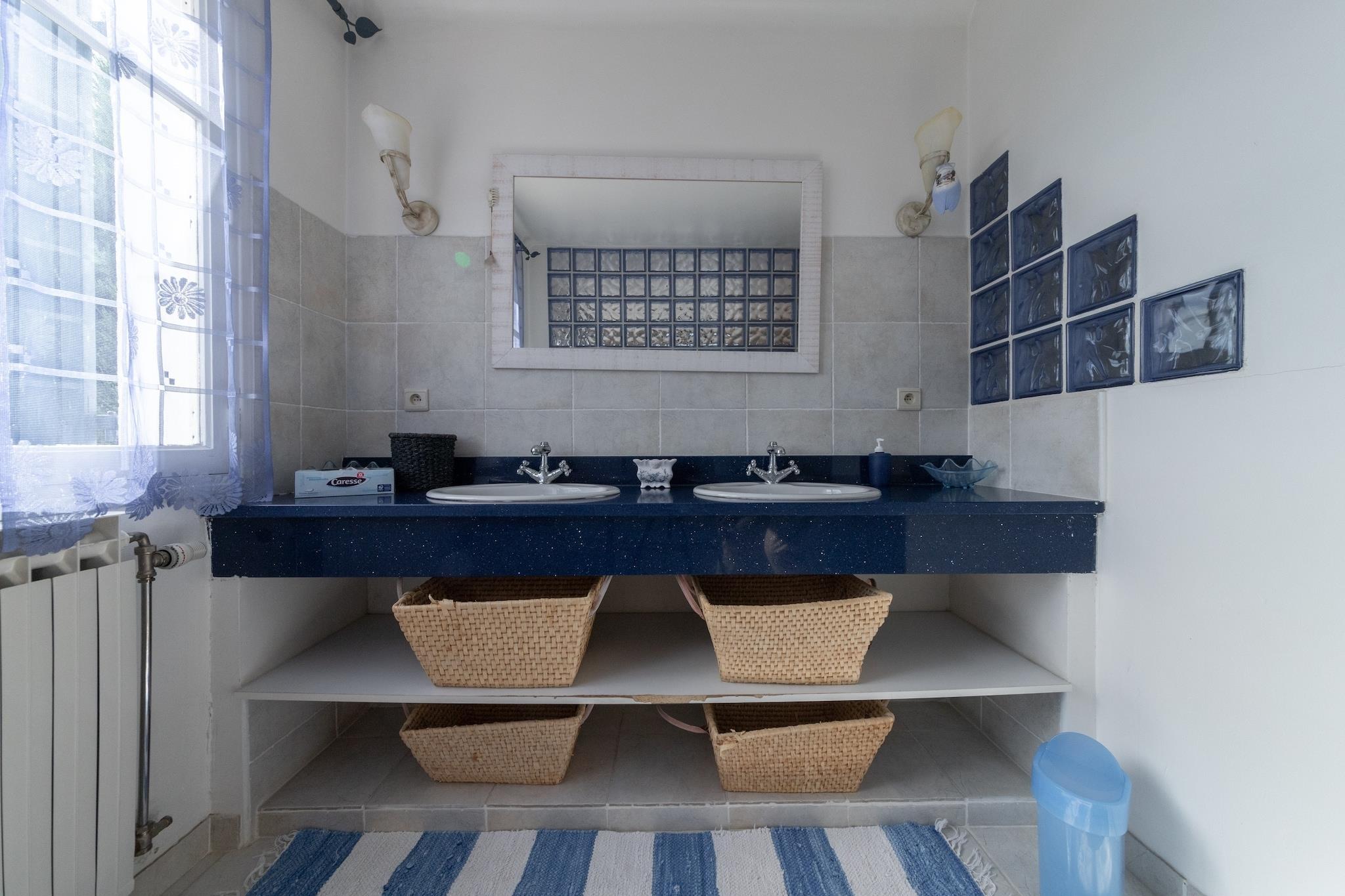 Parterre: (Wohnzimmer(TV, Sitzecke, Klimaanlage), Esszimmer(Esstisch), Küche(Esstisch, Wasserkocher, Espressomaschine, Backofen, Mikrowelle, Spülmaschine, Kühlschrank, Kühlschrank, Tiefkühlschrank, Trockner), Toilette) In der 1. Etage: (Schlafzimmer(Doppelbett(160 x 200 cm), Klimaanlage), Schlafzimmer(Doppelbett(160 x 200 cm), Klimaanlage), Schlafzimmer(Doppelbett(160 x 200 cm), Balkon, Klimaanlage), Schlafzimmer mit Badezimmer(Doppelbett(160 x 200 cm), Dusche, Klimaanlage), Badezimmer(Dusche), Toilette) Terrasse(alleinige Nutzung, 40 m2), Terrasse, Garten(alleinige Nutzung), Grill, Pool(alleinige Nutzung, 12 x 6 m., geöffnet von 1/2 Apr bis einschließlich Okt), Boulebahn, Tischtennisplatte