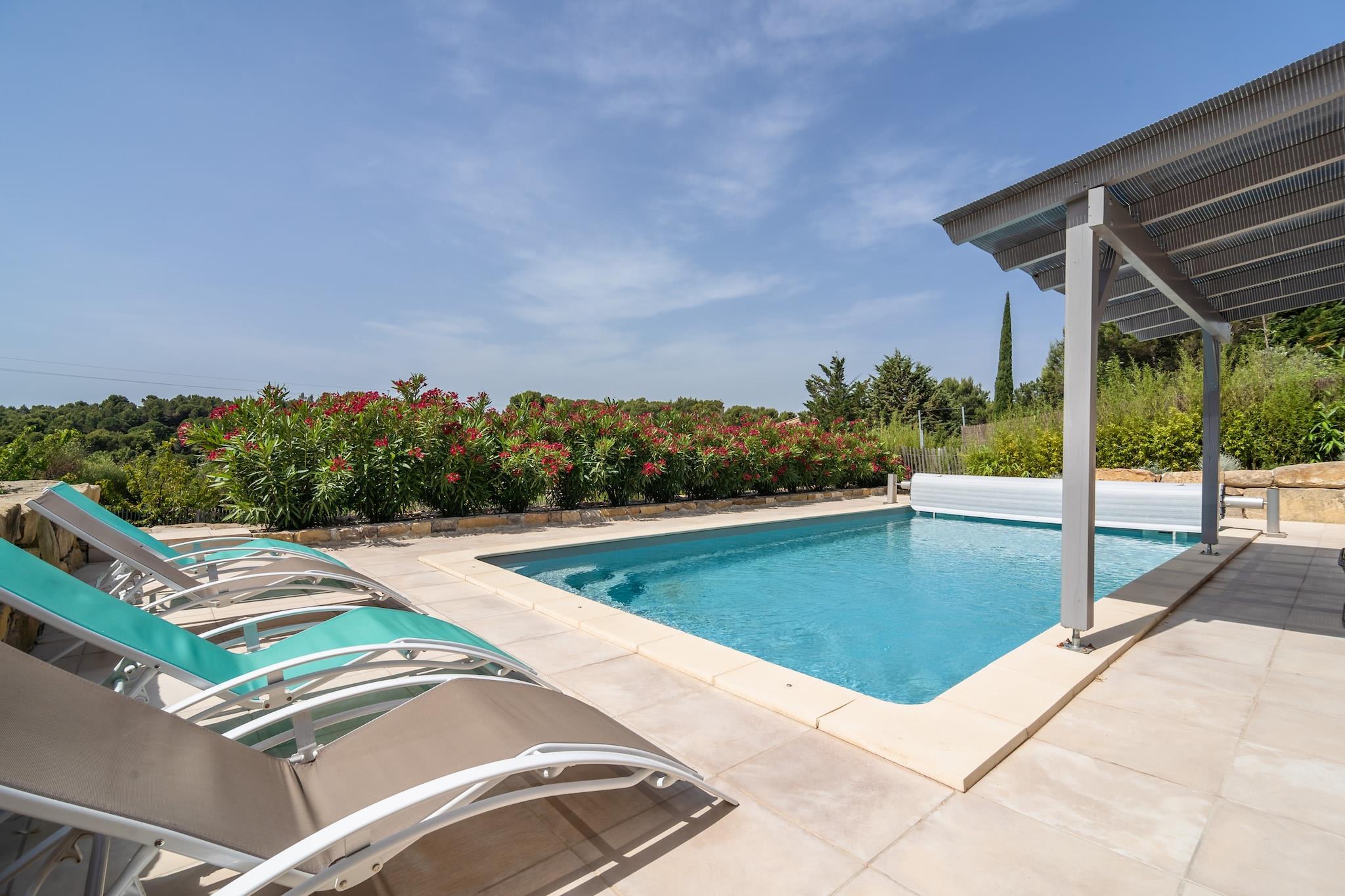 Diese wunderschön gestaltete Villa mit 3 Schlafzimmern liegt auf einem eingezäunten 1.800 m² großen Grundstück und bietet absolute Privatsphäre, einen privaten Pool und großzügige Terrassen zum Entspannen in der mediterranen Sonne. Die geschmackvolle Inneneinrichtung eines Innenarchitekten verbindet modernen Komfort mit elegantem Stil. Im Innenbereich erwarten Sie ein geräumiges Wohnzimmer, eine voll ausgestattete Küche und klimatisierte Schlafzimmer für erholsame Nächte. Draußen können Sie im Pool schwimmen, in der Außenküche speisen oder bei einem Glas Wein im schattigen Loungebereich entspannen. Eingebettet im charmanten Dorf Cesseras ist die Villa ein Tor zu den Natur- und Kulturschätzen Südfrankreichs. Das atemberaubende Dorf Minerve, das zu den schönsten Dörfern Frankreichs zählt, ist nur 8,5 km entfernt. Erkunden Sie die Katharerburgen, wandern Sie durch die dramatischen Gorges de la Cesse oder radeln Sie auf malerischen Routen im Regionalpark Haut Languedoc. Die Sandstrände von Gruissan sind nur 45 Minuten entfernt, während Narbonne, Béziers und die mittelalterliche Stadt Carcassonne in weniger als einer Stunde erreichbar sind. Eine kurze Fahrt nach Olonzac (5 km) bringt Sie zu Wochenmärkten, Kunsthandwerksläden und einladenden Restaurants mit lokalen Weinen und regionalen Spezialitäten. Genießen Sie in Minerve ein Mittagessen mit Panoramablick über das Tal oder ein Essen am Flussufer in Homps nach einem Spaziergang entlang des Canal du Midi. Zurück in der Villa können Sie frische Produkte auf dem Plancha-Grill zubereiten und im Freien unter den Sternen speisen - ein wahrhaft französisches Landerlebnis.