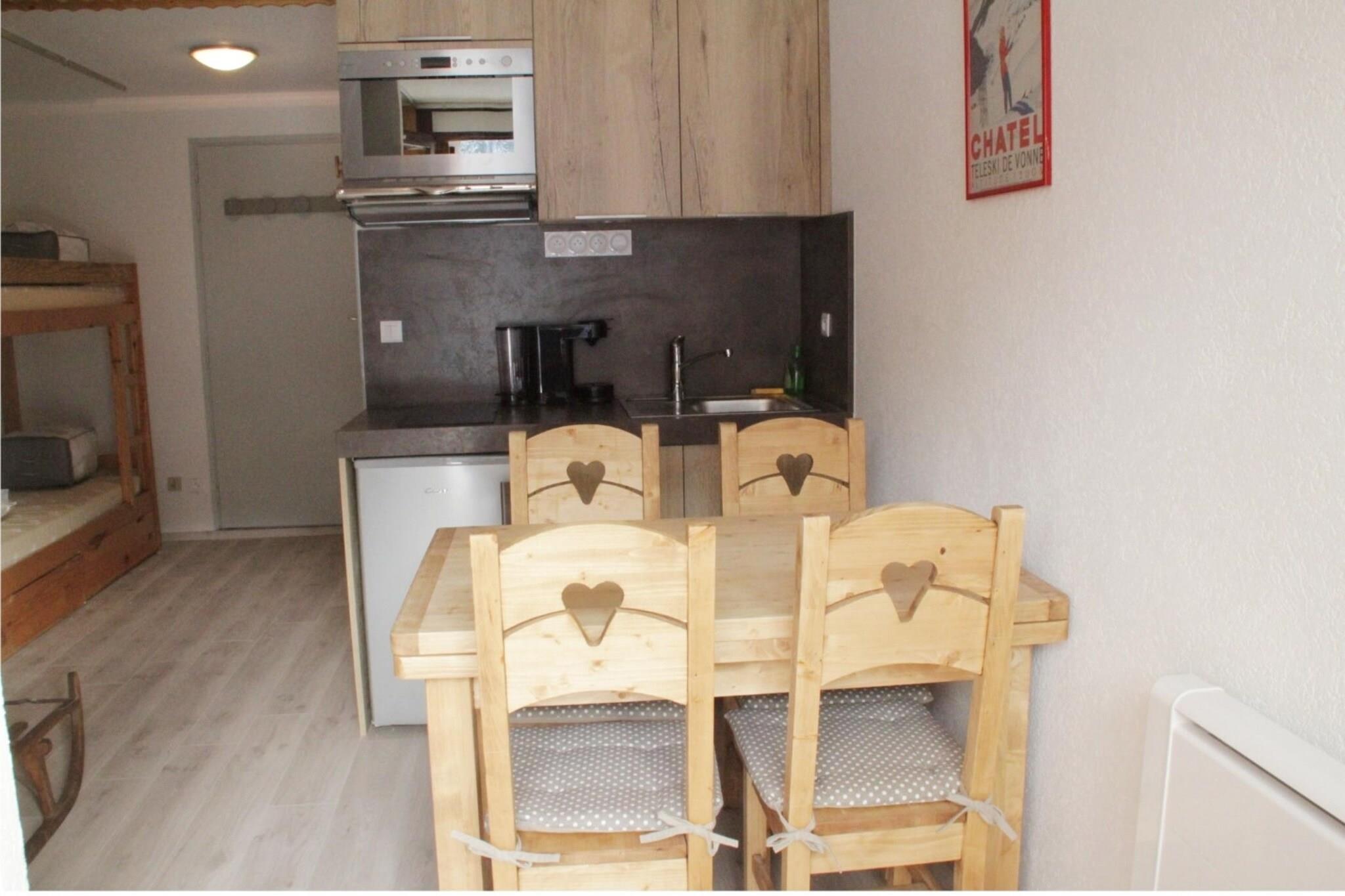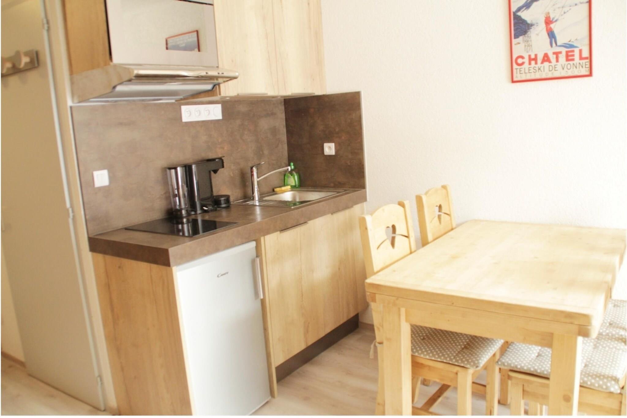 Dieses Anwesen mit seiner einladenden Atmosphäre bietet bequem Platz für bis zu vier Personen und ist somit ein idealer Rückzugsort für kleine Familien oder Paare. Es verfügt über ein gemütliches Alkoven-Schlafzimmer mit Doppelbett und einen Wohnbereich mit Etagenbetten für zusätzlichen Schlafplatz. Das Apartment ist haustierfreundlich und garantiert Reisenden mit Haustieren einen angenehmen Aufenthalt. Genießen Sie die Außenterrasse mit atemberaubendem Bergblick – ideal zum Entspannen nach einem erlebnisreichen Tag. Zusätzliche Dienstleistungen wie Bettwäsche, Handtücher und eine WLAN-Minibox können für zusätzlichen Komfort gemietet werden. Es gibt einen Skiraum mit einem Schließfach für Ihre Ausrüstung. Dieses Apartment im Herzen von Châtel bietet eine ruhige Lage in der Nähe zahlreicher lokaler Sehenswürdigkeiten. Die nur 1,2 Kilometer entfernte Seilbahn bietet einfachen Zugang zu den Skipisten, während Geschäfte und Restaurants nur 1 Kilometer vom Apartment entfernt sind. Für Outdoor-Fans ist die wunderschöne Berglandschaft rund um die Residenz ideal zum Wandern und Skifahren. Die Wohnung ist gut ausgestattet und verfügt über eine voll ausgestattete Küche mit Cerankochfeld, Kühlschrank, Mikrowelle, Geschirrspüler und weiteren wichtigen Geräten, sodass Sie während Ihres Aufenthalts Ihre Mahlzeiten zubereiten können. Ein Flachbild-Kabel-TV im Wohnzimmer sorgt für Unterhaltung. Ein Außenparkplatz sorgt für eine bequeme Anbindung. Diese 24 m² große Erdgeschosswohnung ist Teil einer ruhigen Residenz und bietet eine ruhige Umgebung zum Entspannen und Genießen. Hinweis: Die Kurtaxe wird vor Ort erhoben und ist nicht im Mietpreis enthalten.