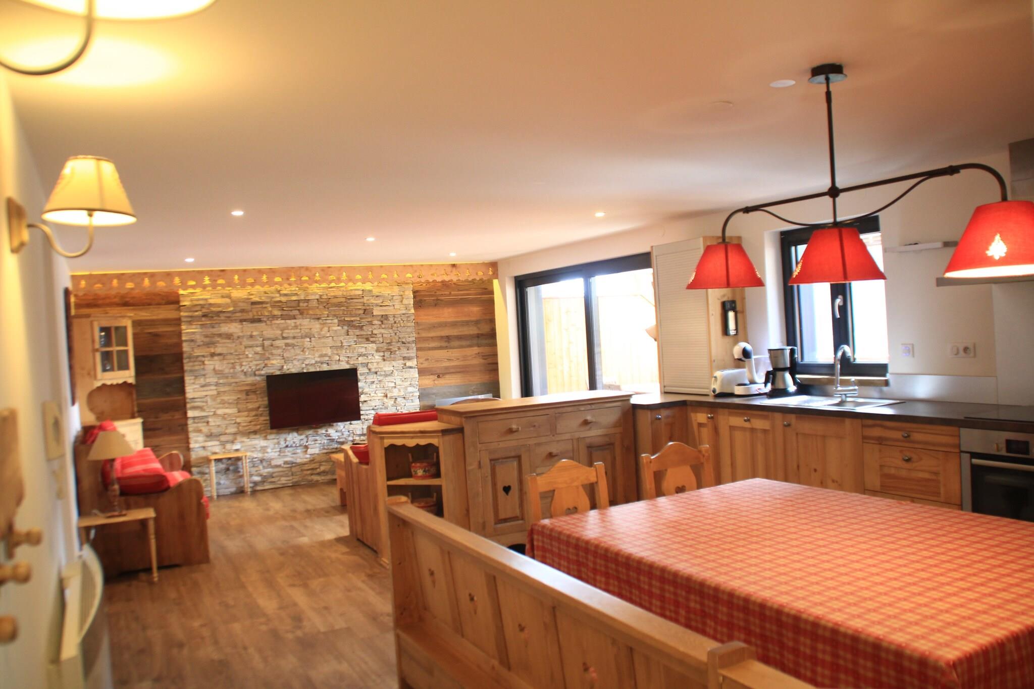 Dieses geräumige Apartment bietet einen einladenden Rückzugsort für bis zu acht Gäste und ist somit ideal für größere Familien oder Gruppen. Die 105 m² große Unterkunft verfügt über drei Schlafzimmer, zwei davon mit Doppelbetten (140 x 190 cm) und ein Durchgangsschlafzimmer mit zwei Einzelbetten (90 x 190 cm). Der Wohnbereich bietet zwei weitere Einzelbetten (80 x 190 cm). Das Apartment bietet zwei Badezimmer: eines mit Dusche und WC, das andere mit Badewanne und separatem WC. Freuen Sie sich auf ein sonniges Wohnzimmer mit Flachbildfernseher und einen Balkon mit atemberaubendem Bergblick. Diese Residenz liegt günstig im Herzen von Châtel, nur 400 Meter von den Gondeln entfernt und bietet so einfachen Zugang zu den Pisten. Geschäfte und Restaurants sind nur 100 Meter entfernt. Eine kostenlose Shuttlebushaltestelle befindet sich in der Nähe und bietet bequemen Transport zu verschiedenen Sehenswürdigkeiten in der Region Portes du Soleil. Dank der zentralen Lage ist die Unterkunft ideal, um das Dorf und seine malerische Umgebung zu erkunden. Die moderne Küche des Apartments ist komplett ausgestattet mit Cerankochfeld, Kühlschrank, Gefrierschrank, Geschirrspüler, Waschmaschine, Backofen, Mikrowelle, Toaster, Wasserkocher und Filterkaffeemaschine und eignet sich ideal für die Zubereitung Ihrer Mahlzeiten während Ihres Aufenthalts. Optionale Leistungen wie Bettwäsche, Handtücher und Endreinigung sorgen für zusätzlichen Komfort. Gäste können an der Rezeption auch eine Mini-WLAN-Box mieten. Zu den inbegriffenen Leistungen gehören der Zugang zu einem kostenlosen saisonalen Shuttlebus sowie Ermäßigungen auf Aktivitäten und lokale Attraktionen für einen komfortablen und unvergesslichen Alpenurlaub. Hinweis: Die Kurtaxe wird vor Ort erhoben und ist nicht im Mietpreis enthalten.